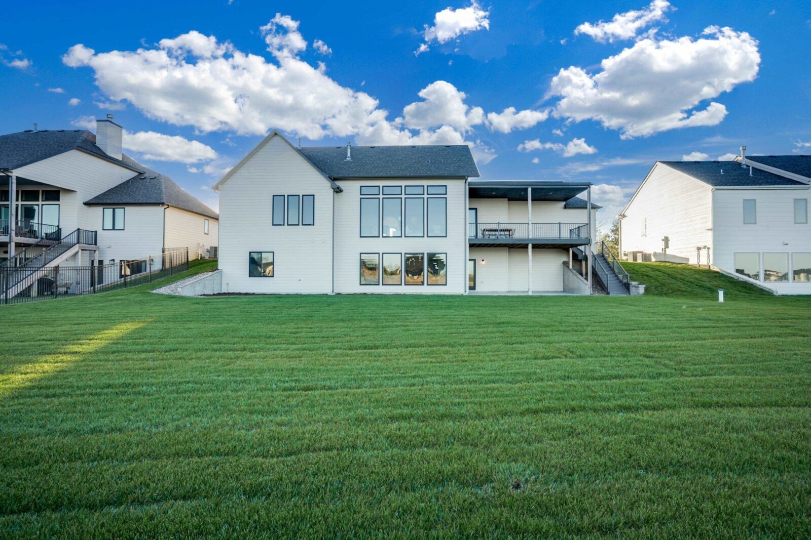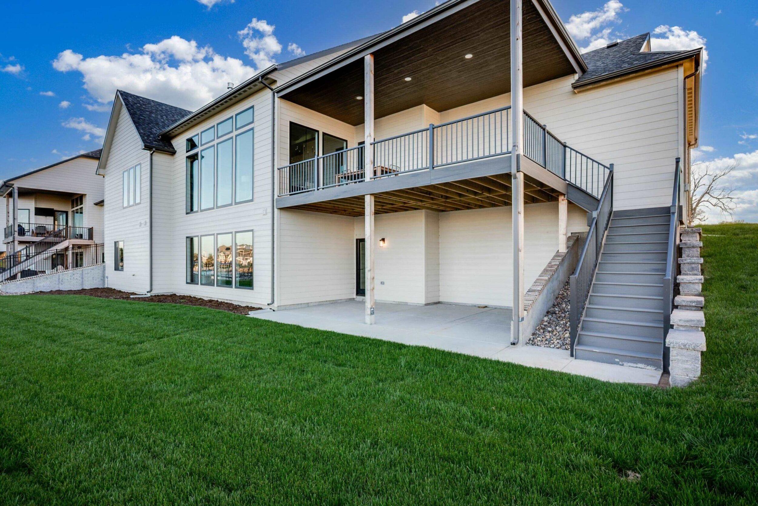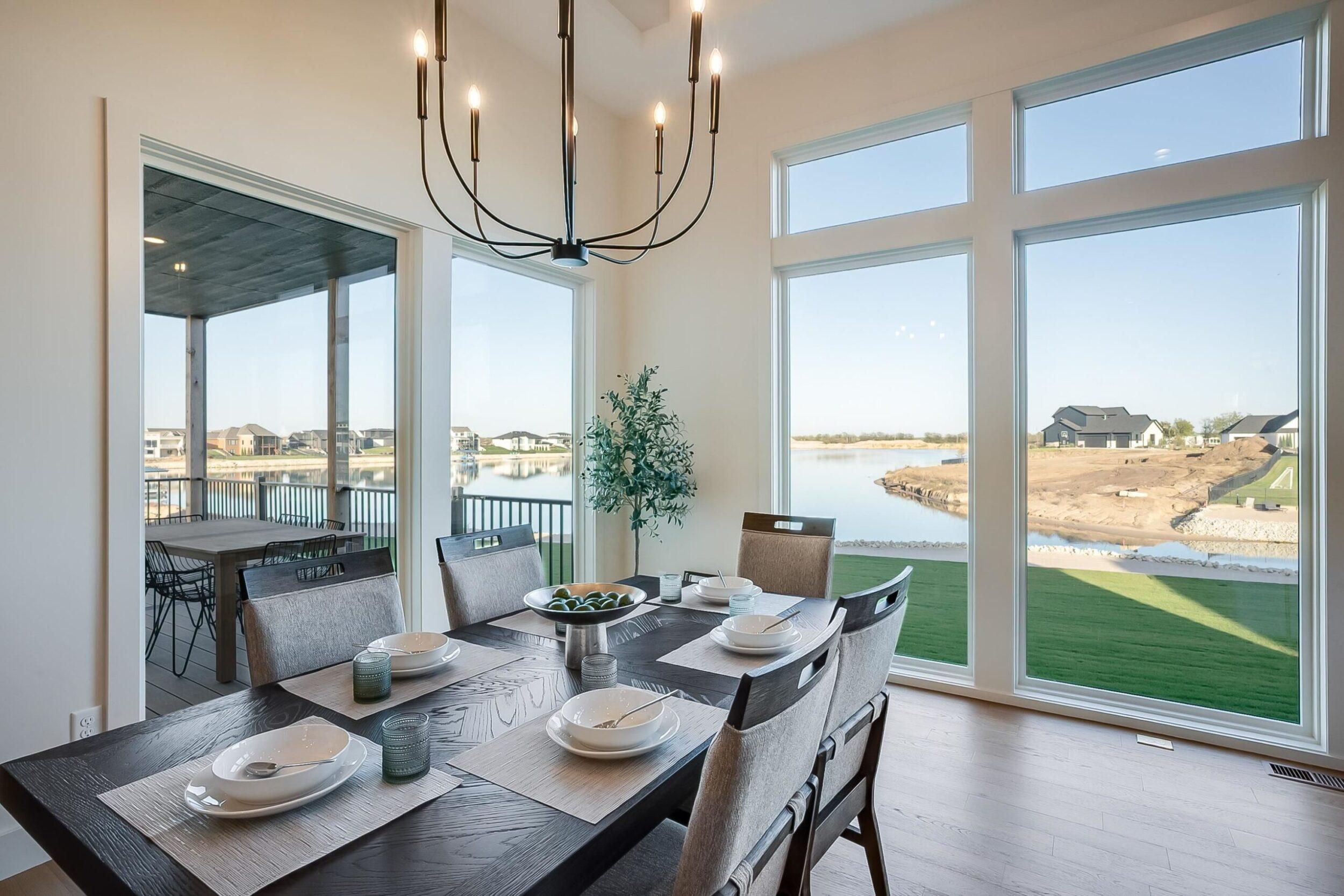 Welcome to The Linden Plan by Nies Homes—where luxury meets lake life in the exclusive Castaway community. Situated on a premium lakefront lot, this home boasts a timeless elevation with rich brick, wood accents, dormer windows, and an elegant arched entryway. Inside, you're greeted by soaring ceilings, a grand living room with floor-to-ceiling windows showcasing breathtaking water views, and a stunning fireplace flanked by custom built-ins. The gourmet kitchen features a 10’ island, gas range, double ovens, walk-in pantry, and endless cabinetry. The luxurious Master Suite includes a spacious bedroom, dual vanities, custom tile shower with dual heads, and a private dressing room. Main floor also offers two additional bedrooms with walk-in closets accompanied by a stylish hall bath, a private office, a convenient half bath for guests, and access to the covered deck. The walk-out basement impresses with 9' ceilings, expansive living space, game room with wet bar, two more large bedrooms, and two baths—one perfectly placed for easy access from your private beach. Step outside to your covered patio and enjoy direct access to the 140-acre spring-fed boating lake. Castaway offers unmatched amenities including a lakeside clubhouse, pool, playground, basketball court, and public beach areas. Live every day like a vacation—right here at Castaway. Some information may be estimated and is not guaranteed. Please verify schools with USD 266.