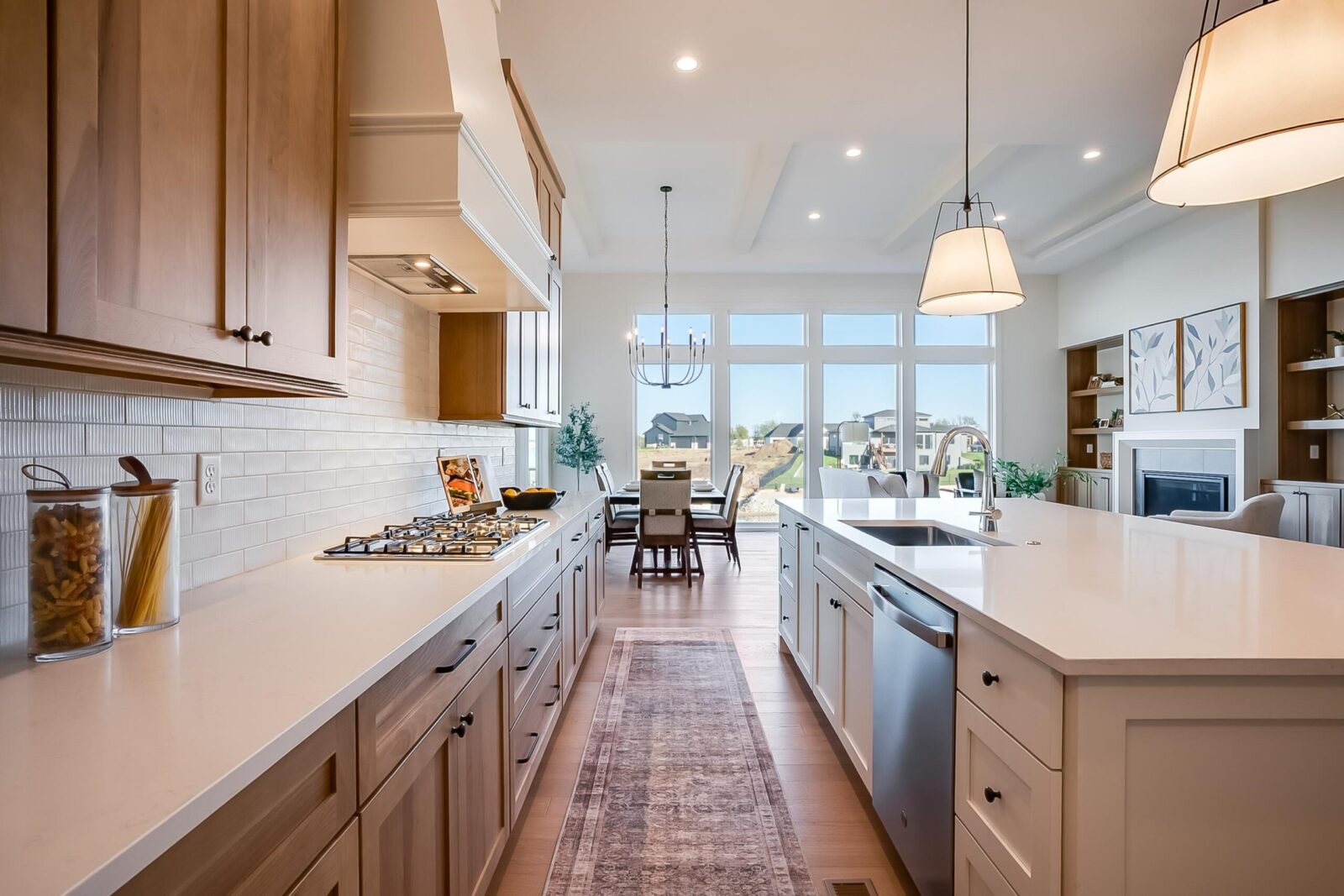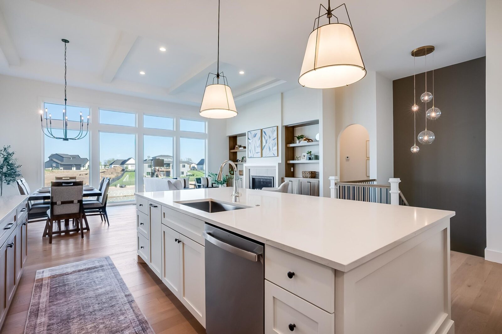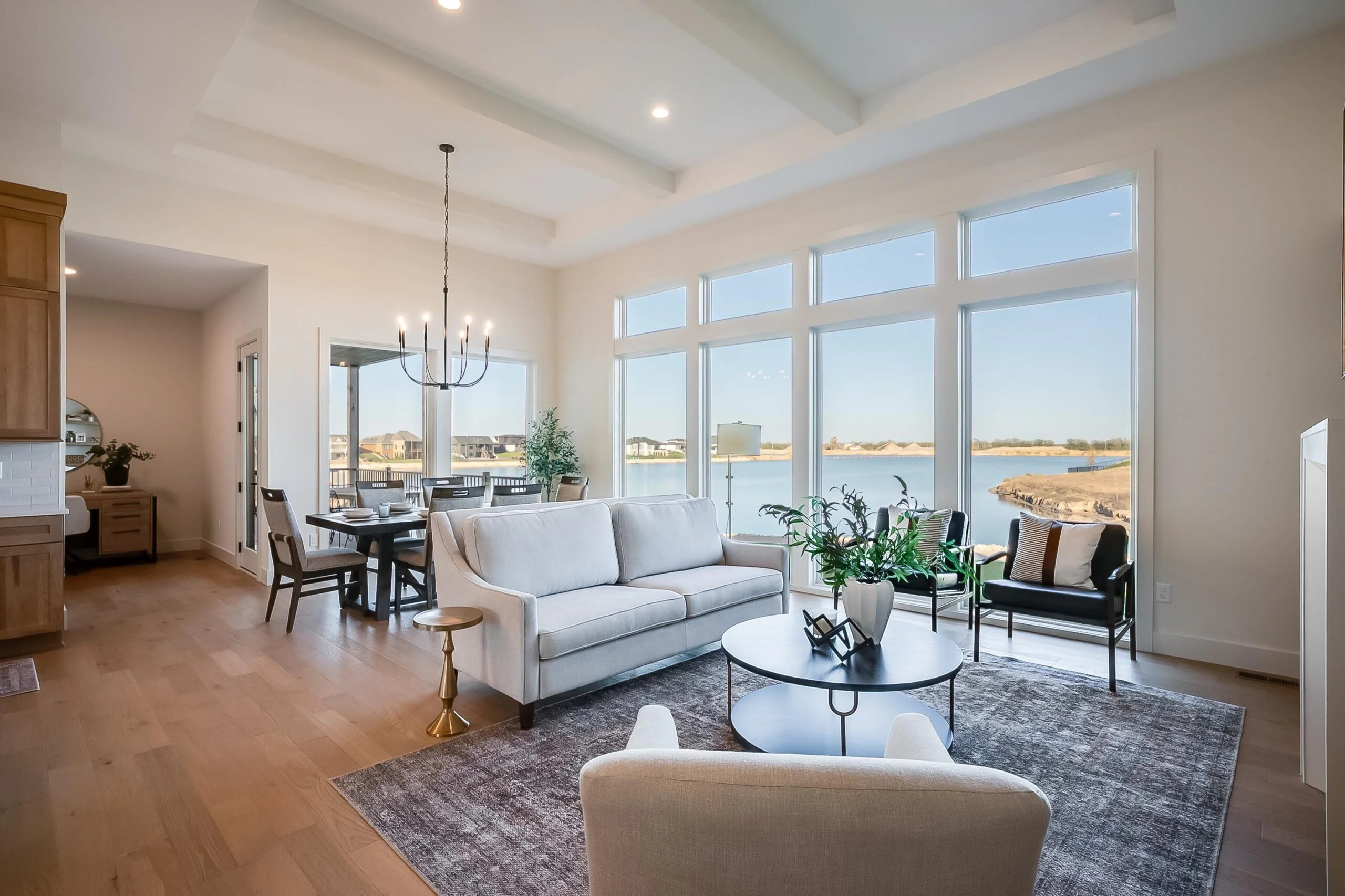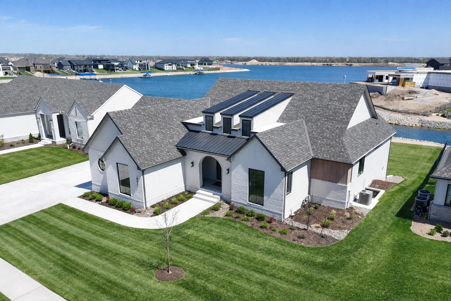 Welcome to The Linden Plan by Nies Homes—where luxury meets lake life in the exclusive Castaway community. Situated on a premium lakefront lot, this home boasts a timeless elevation with rich brick, wood accents, dormer windows, and an elegant arched entryway. Inside, you're greeted by soaring ceilings, a grand living room with floor-to-ceiling windows showcasing breathtaking water views, and a stunning fireplace flanked by custom built-ins. The gourmet kitchen features a 10’ island, gas range, double ovens, walk-in pantry, and endless cabinetry. The luxurious Master Suite includes a spacious bedroom, dual vanities, custom tile shower with dual heads, and a private dressing room. Main floor also offers two additional bedrooms with walk-in closets accompanied by a stylish hall bath, a private office, a convenient half bath for guests, and access to the covered deck. The walk-out basement impresses with 9' ceilings, expansive living space, game room with wet bar, two more large bedrooms, and two baths—one perfectly placed for easy access from your private beach. Step outside to your covered patio and enjoy direct access to the 140-acre spring-fed boating lake. Castaway offers unmatched amenities including a lakeside clubhouse, pool, playground, basketball court, and public beach areas. Live every day like a vacation—right here at Castaway. Some information may be estimated and is not guaranteed. Please verify schools with USD 266.