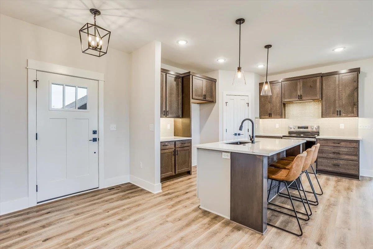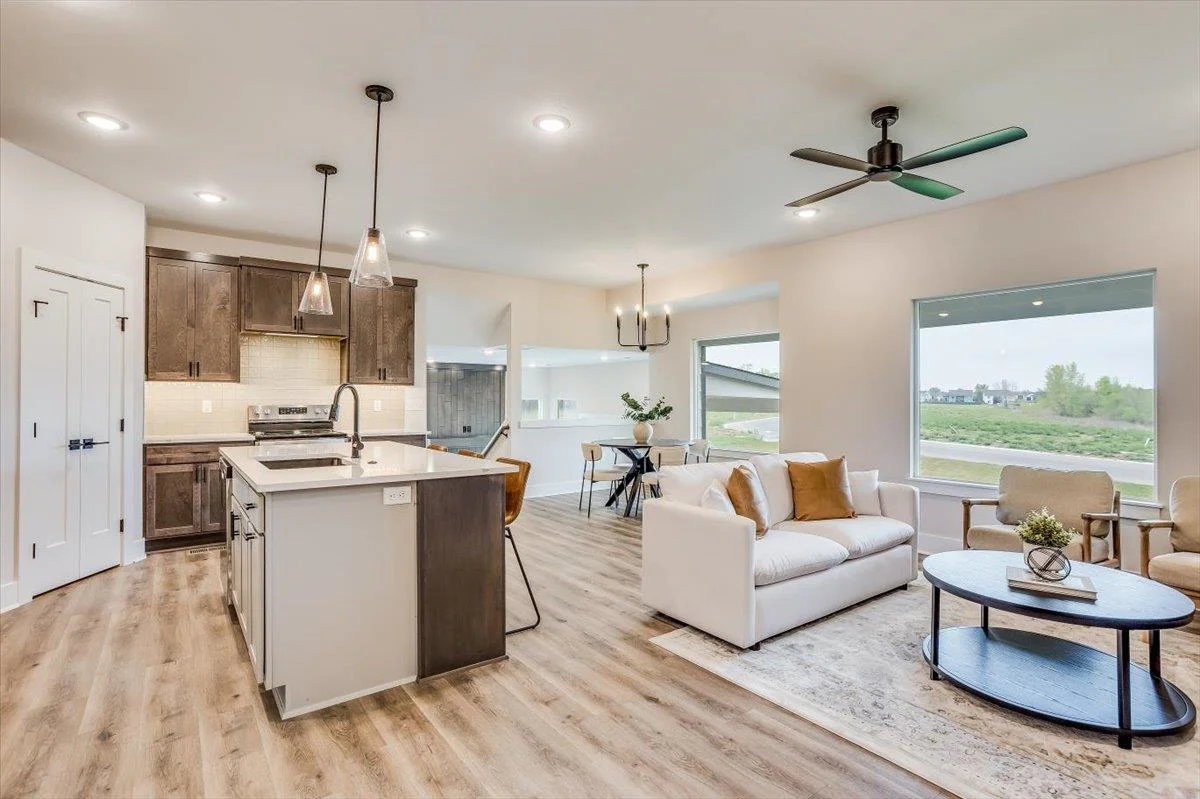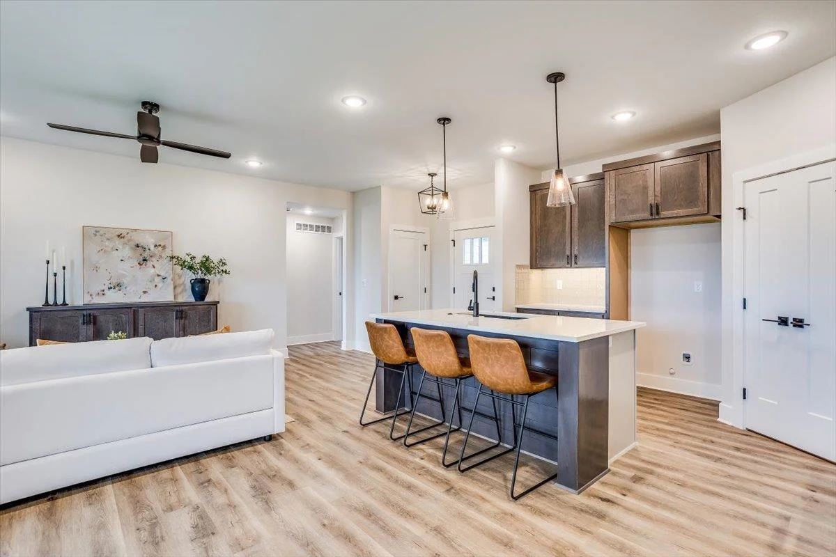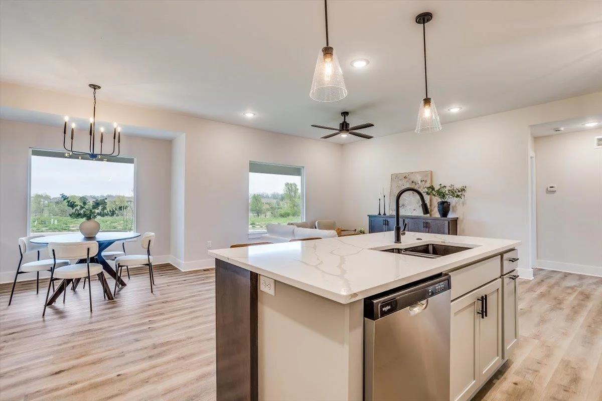 We have taken a larger flex plan built by Blue Custom Homes and redesigned to provide a smaller version of this delightful flex plan home offering a total fo 4 bedrooms, 3 baths, open design, with sun/hearth room. The home offers LVP flooring in the great room, dining and kitchen. The builder has included some upgrades on this home. The sun/hearth room has an electric fireplace and the lower level is finished with rec room, bath and 2 bedrooms. There is also a 3 car garage with zero entry from the garage to the flex area. The home is landscaped with sprinkler system