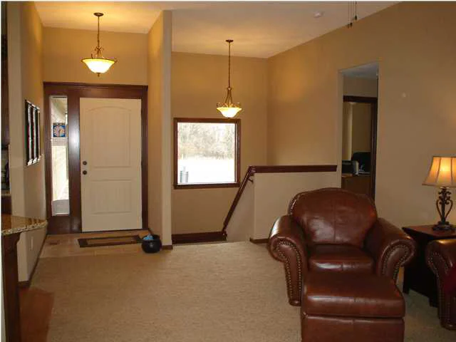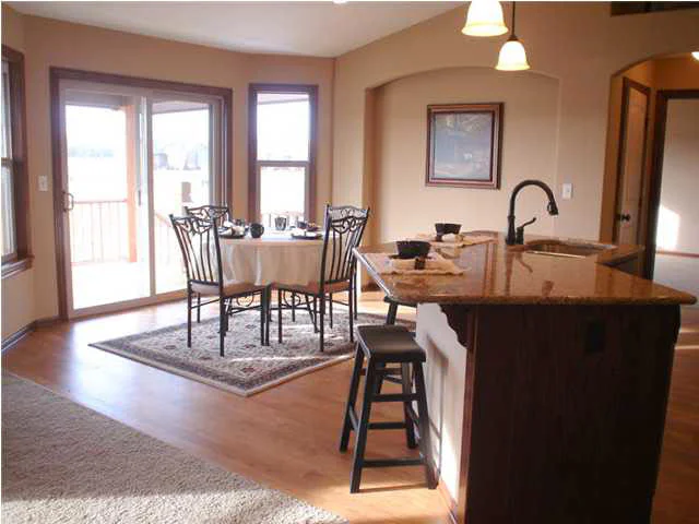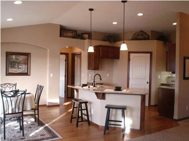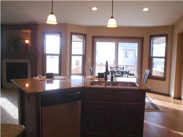 Beautiful new plan by Blue Custom Homes. Open floor plan with a great layout for entertaining around the kitchen. Wood floor throughout the dining and kitchen area, corner walk-in pantry and island eating bar are just some of the amenities this home offers. Master Suite Bedroom is secluded with arched alcove entry. In the master bedroom arched alcove could be used for possible computer desk or dressing area. Walk-in closet features seasonal hanging and walk thru to Mud room. Luxurious Master Bath has separate water closet for privacy. Rounded sheetrock corners, tiered plant shelves, gas fireplace with TV/display niche above make this home a "Don't miss!!!!!" Unfinished view-out basement has ample space for family room, 2 bedrooms, bath. Area pool, playground, lakes, wooded walking trail. All taxes/specials/dimension are estimated. All information deemed reliable but not guaranteed. All prices subject to change without notice. Verify schools with USD 259. $8,700 CREDIT is available for Special Assessments Rebate or Buyer's choice of other items.