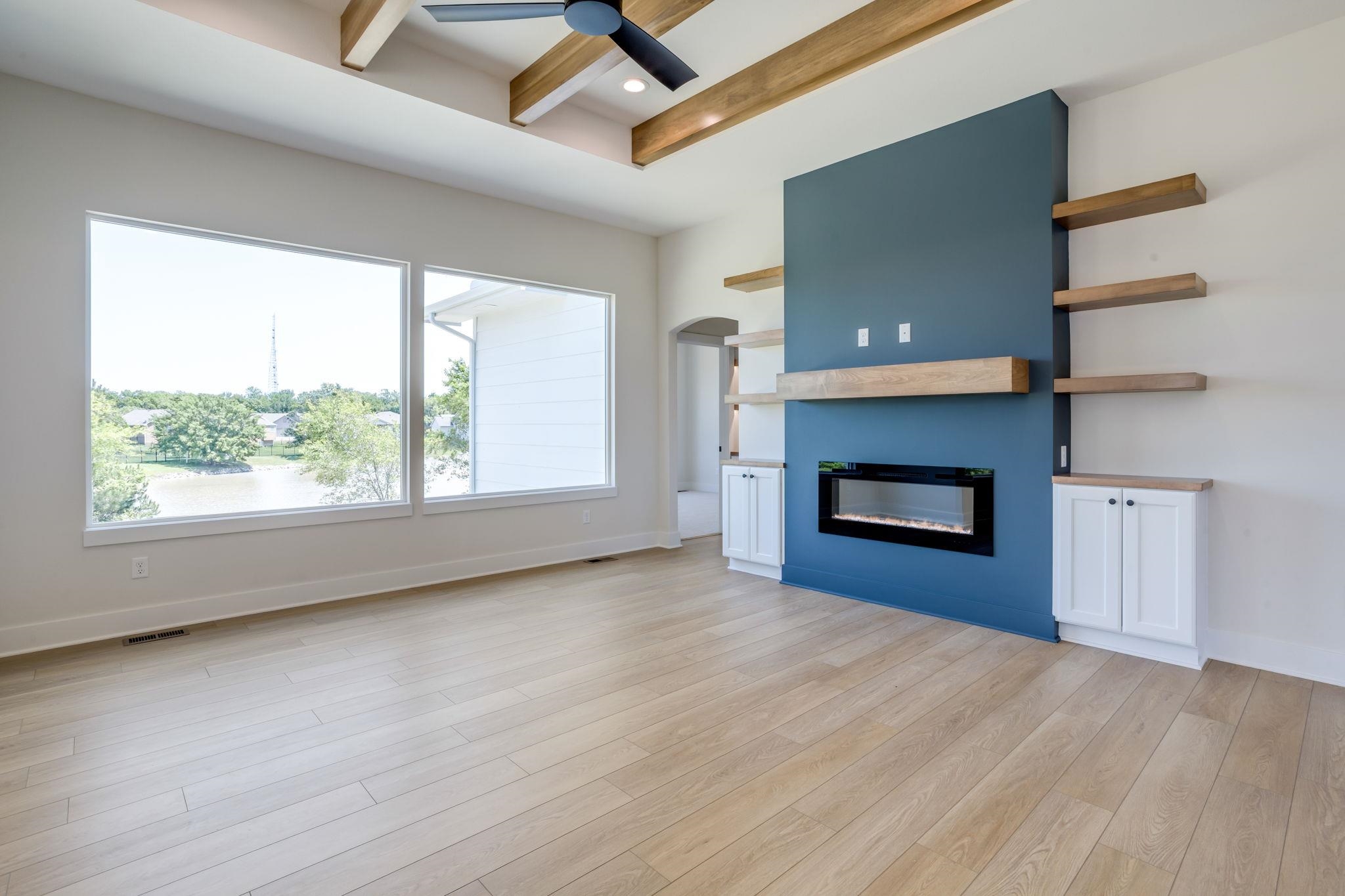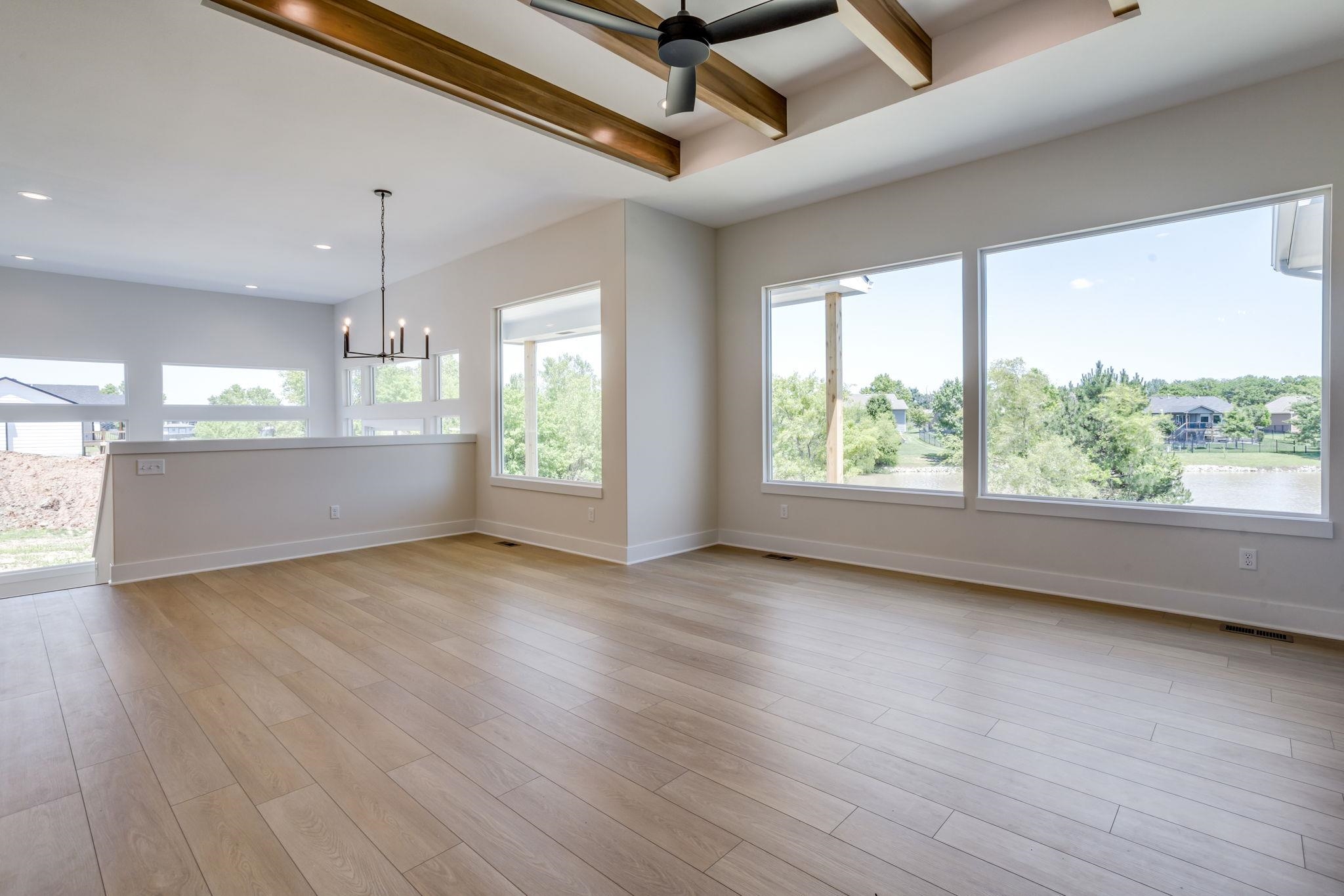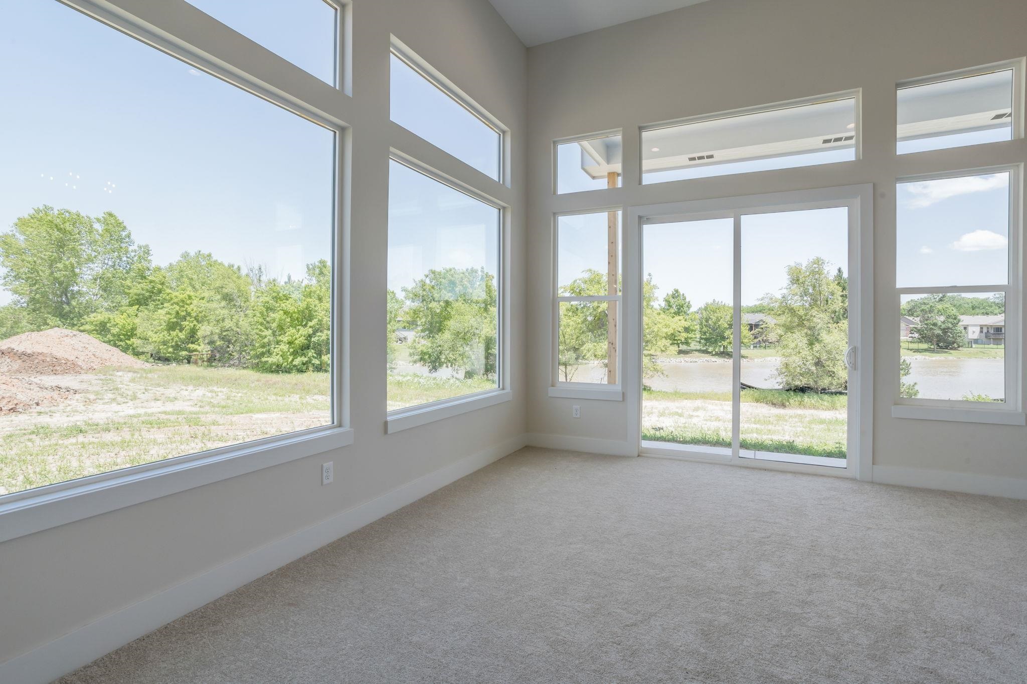 - Description: Pictures are in and look as this incredible Jojo Flex Plan by M&M Construction located on a water lot offering a total of 4 bedrooms, 3 baths, full finished lower level and 3rd car garage. Features include decorative electric fireplace, LVP kitchen, dining and great room, quartz counter tops. ample windows and the sun room area that conveniently opens to a covered patio area to enjoy the outdoor living with the gorgeous water view. The viewout lower level finish includes rec room with wet bar, 2 bedrooms and a bath. The home is ready for immediate occupancy. This price also includes landscaping, sod and sprinkler system.