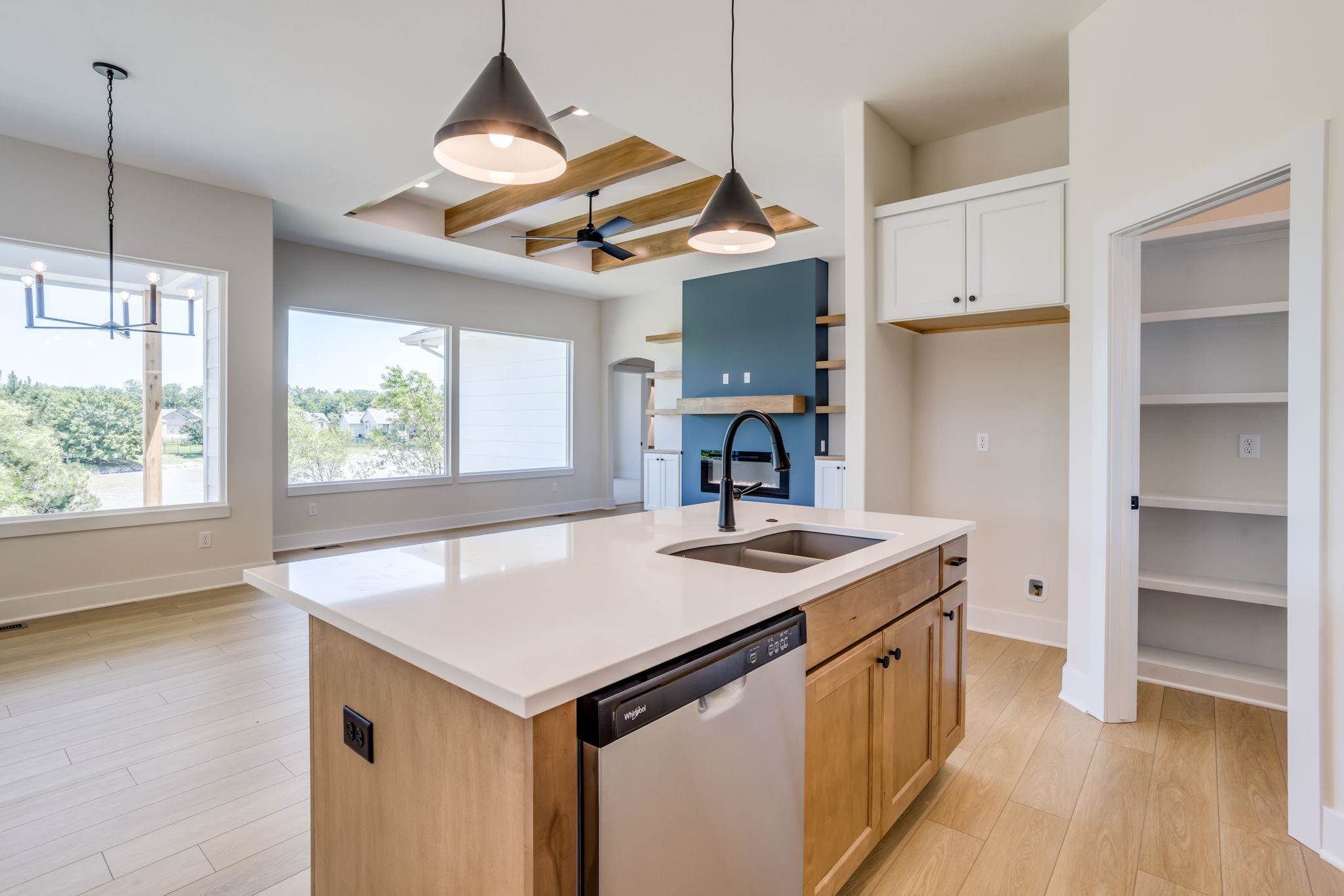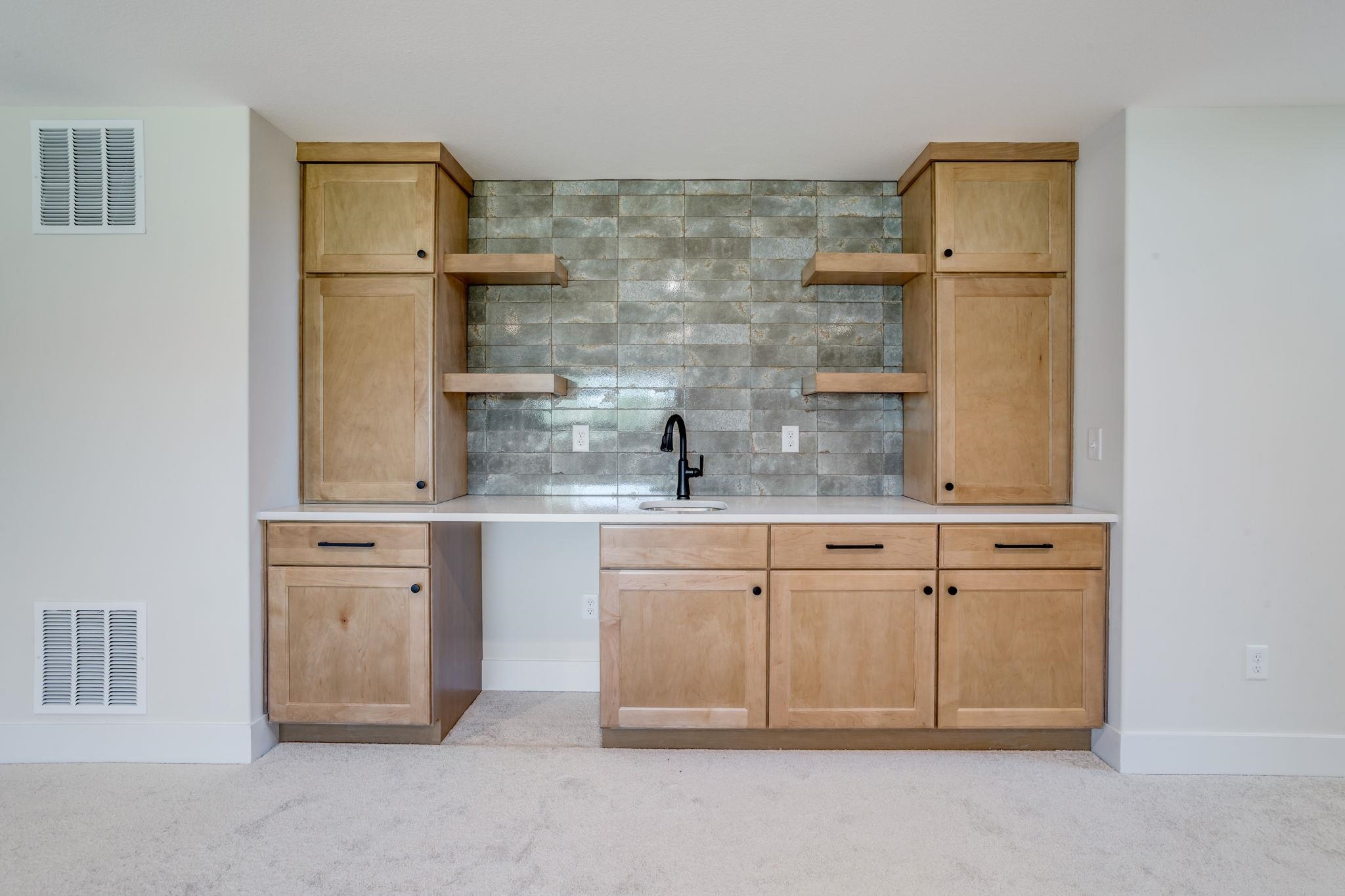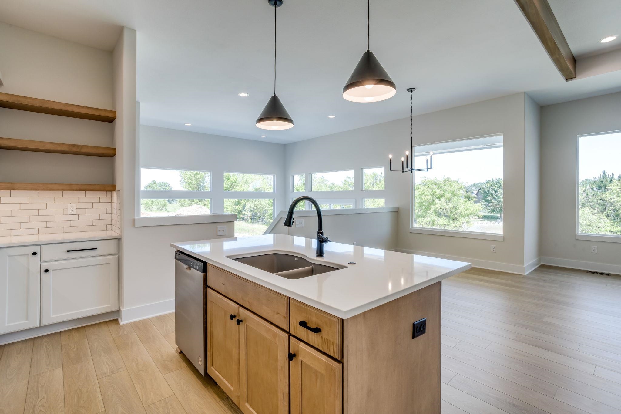 - Description: Pictures are in and look as this incredible Jojo Flex Plan by M&M Construction located on a water lot offering a total of 4 bedrooms, 3 baths, full finished lower level and 3rd car garage. Features include decorative electric fireplace, LVP kitchen, dining and great room, quartz counter tops. ample windows and the sun room area that conveniently opens to a covered patio area to enjoy the outdoor living with the gorgeous water view. The viewout lower level finish includes rec room with wet bar, 2 bedrooms and a bath. The home is ready for immediate occupancy. This price also includes landscaping, sod and sprinkler system.