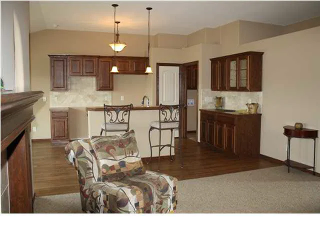 $8,700 discount already taken off MLS price and alot of home for the money! Wonderfully open floor plan that looks larger than its sq. ft. Kitchen island with tiled eating bar, pantry. Large area in kitchen for those circling guests. Living room features gas fireplace with beautiful arched flanking windows. Private master suite. Laundry room off kitchen and garage has built-in bench with "cubbies" to help keep things neat and tidy. Partially covered deck, 3 car garage, large corner lot. Area has 5 lakes, wooded walking trail, pool and playground. All taxes/dimensions/specials are estimated. All prices are subject to change without notice. Verify schools with USD 259.