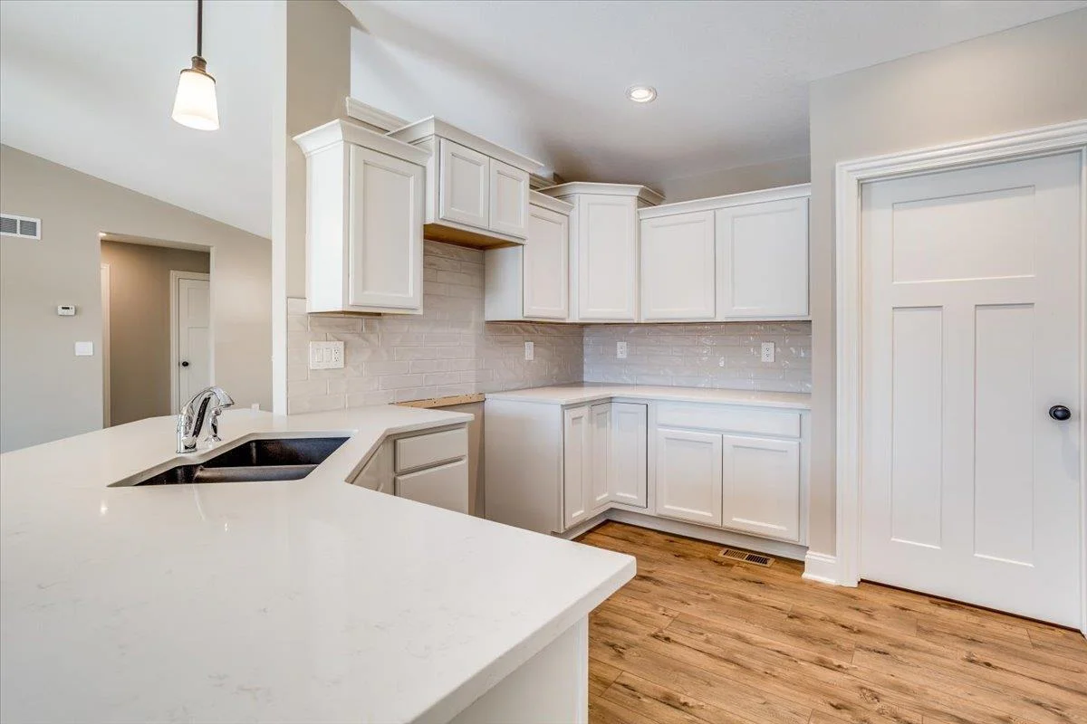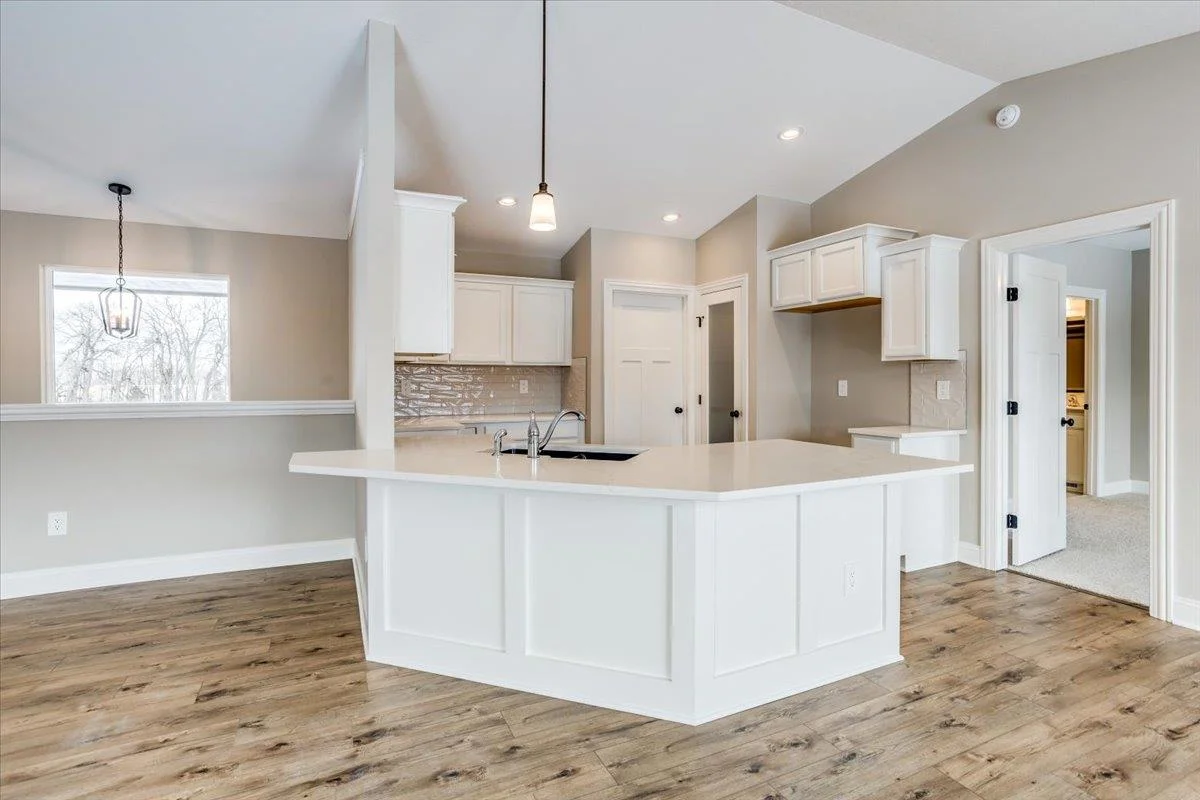 Klausmeyer Construction presents the Delainey floor plan featuring a total of 4 bedrooms, 3 baths and 3 car garge with area for workshop or larger trucks, trailers or boats, The main floor includes LVP flooring great room, dining, kitchen, entry, 3 bedrooms, 2 baths, main floor laundry. The lower level includes rec room, bath and 4th bedroom. The home is located on a lot with an east back yard to enjoy the deck for evening use. This a split bedroom design and a great tucked in Kitchen with wrap around bar.