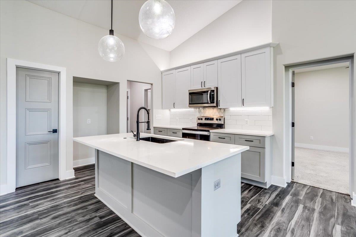 - Description: The Delaware Plan by Relph Construction offers a split 3 bedroom, 2 bath, open great room design with decorative electric fireplace quartz counter tops in kitchen and LVP flooring everywhere except bedrooms and baths on the main floor. There are an additional 2 bedrooms, rec room with wet bar, and bath lower level. This home has bee placed on a gorgeous treed lot. There is also a covered deck to enjoy the view as well as an ovesized 3rd car garage great for large vehicles or shop area. This home is currently being sold below price to duplicate the home with full landscaping.