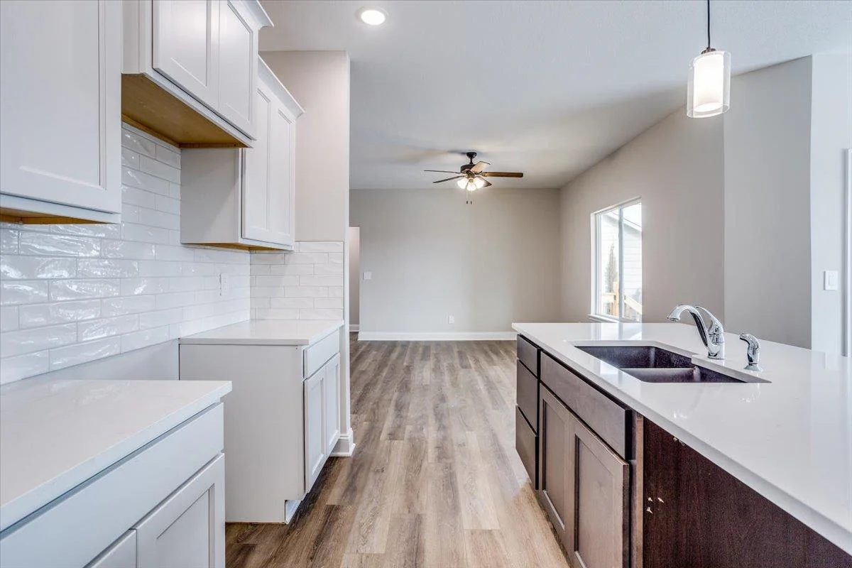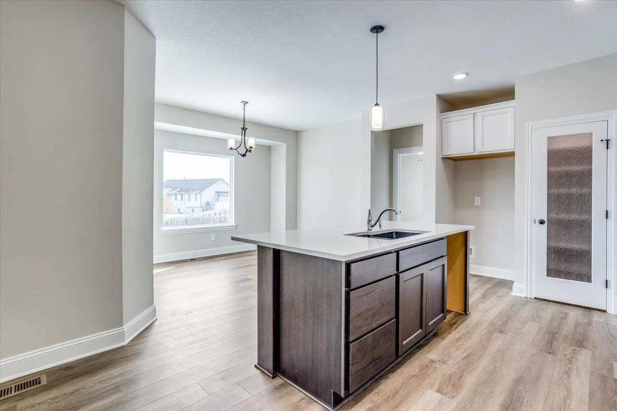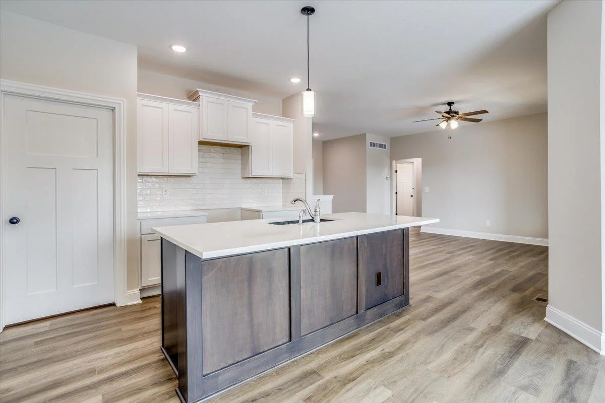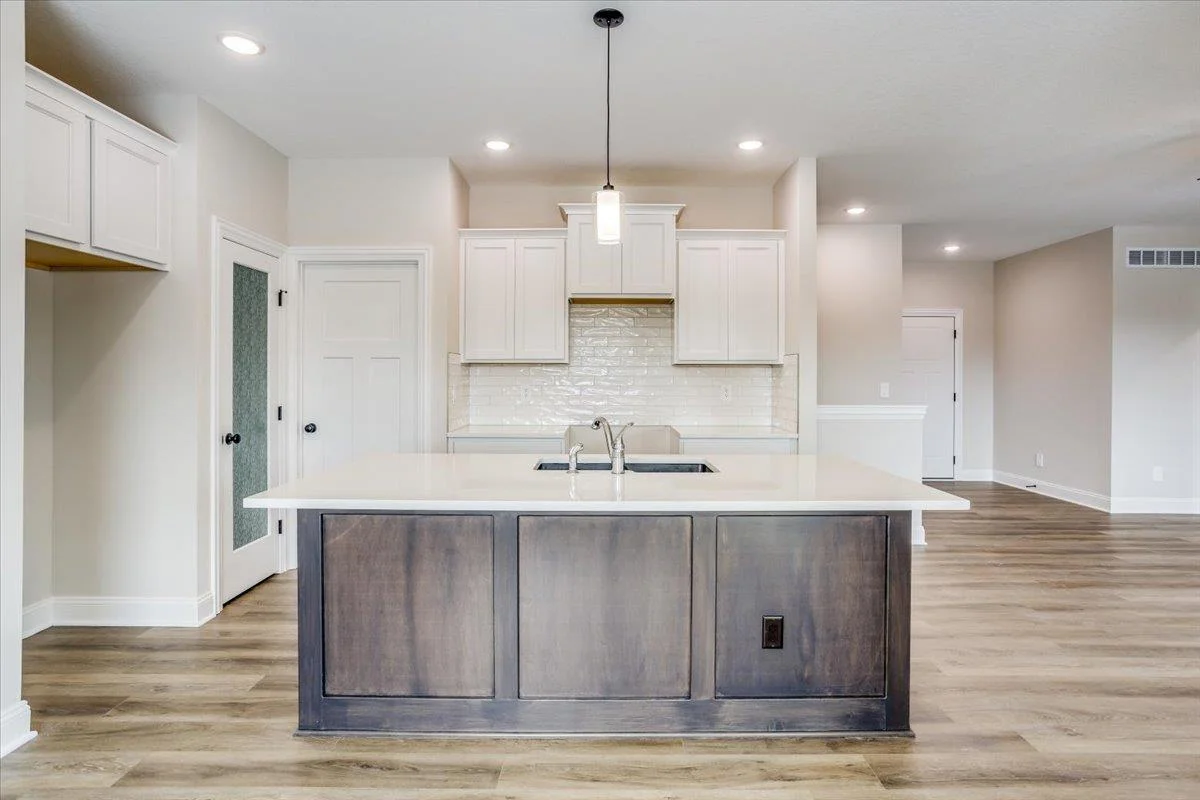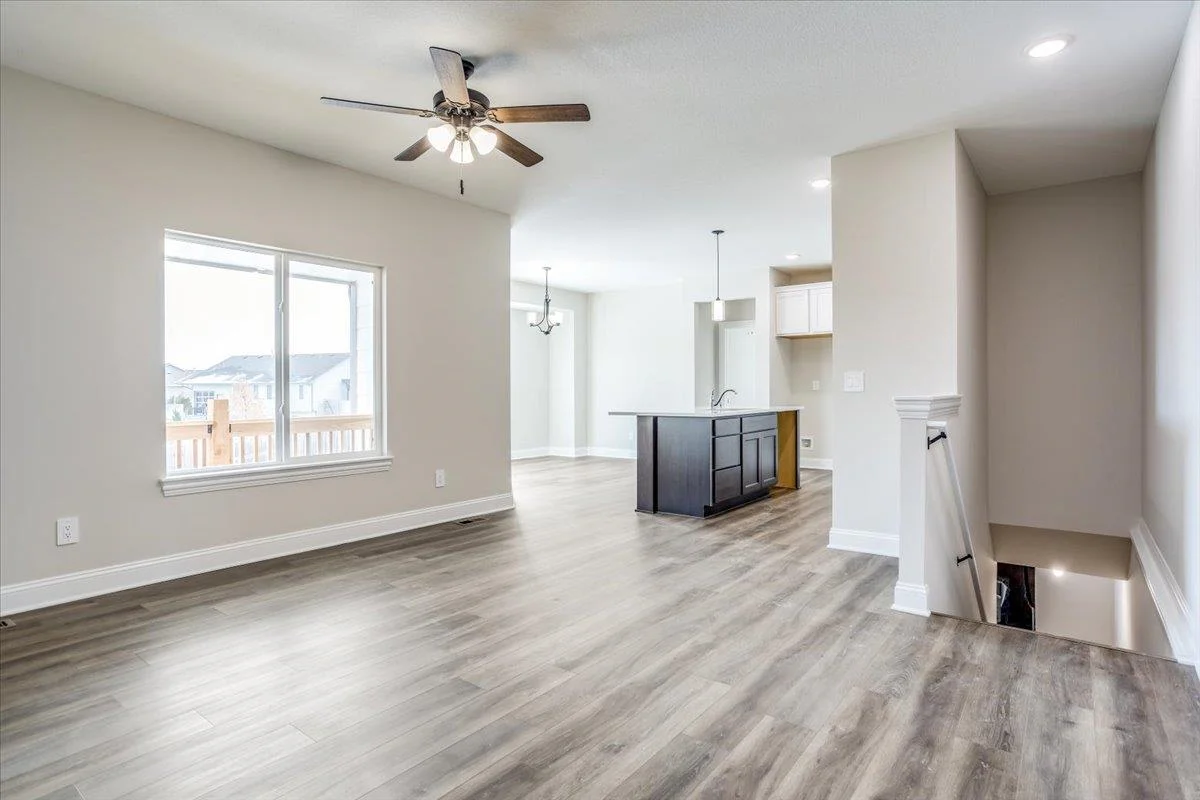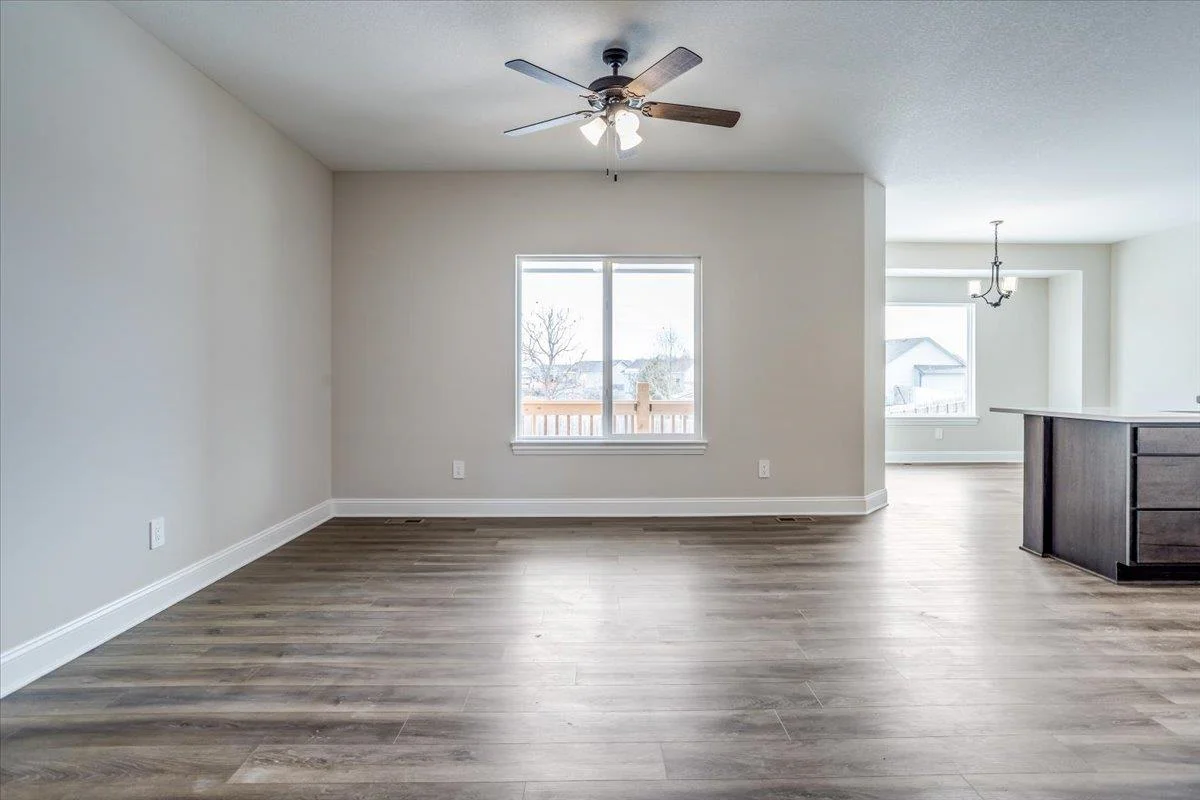 Klausmeyer Construction currently has the Morgan B home under construction featuring a great room design with a total of 3 bedrooms and 2 baths. This homes has a front to back kitchen that overlooks dining and great room with a deck. The home has upgraded LVP flooring in the main living area a well as solid surface countertops in the kitchen. There is room to grow in this unfinished viewout lower level that could add an additional rec room, bath and 2 bedrooms. There is also a 3 car garage.