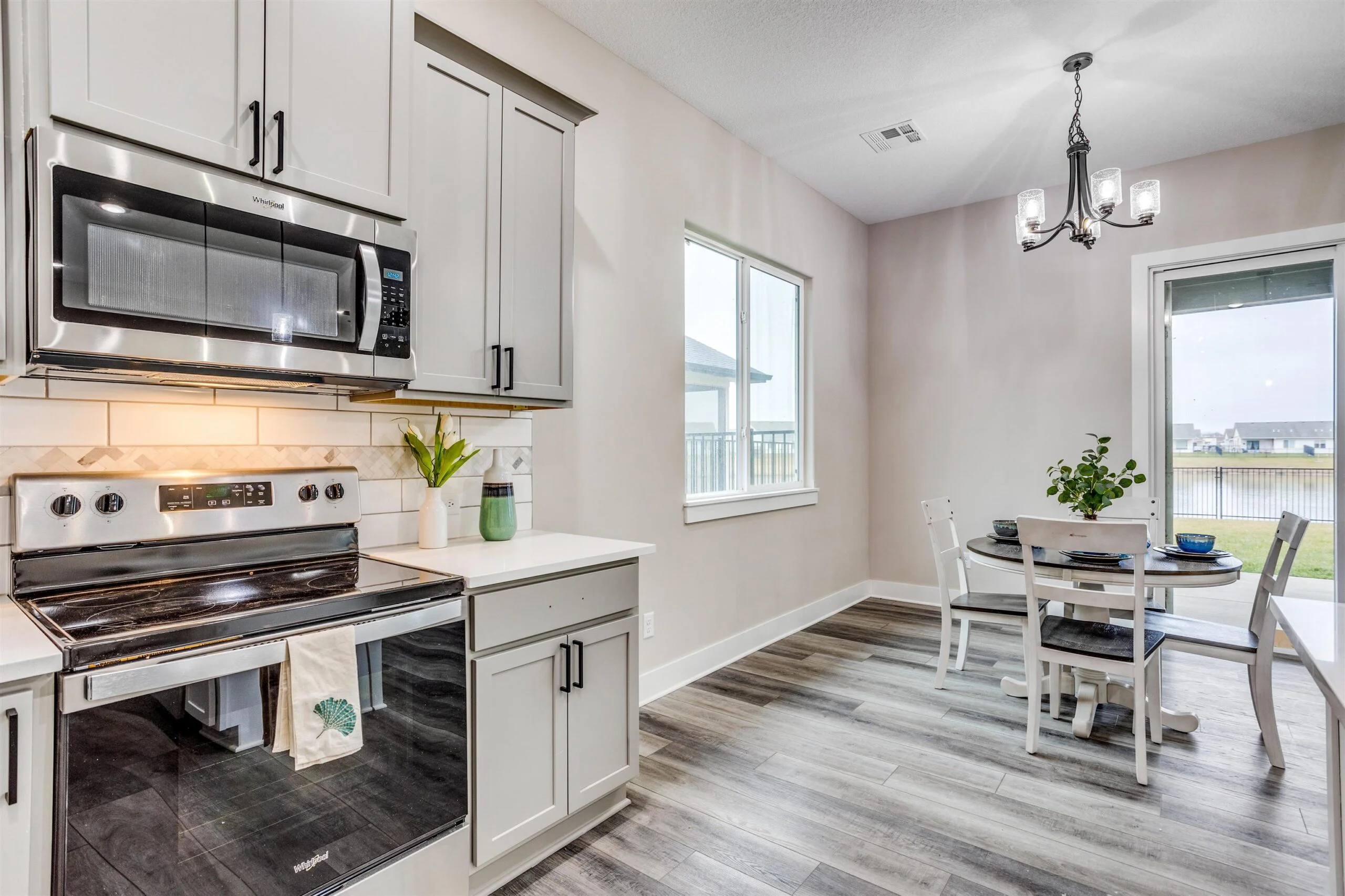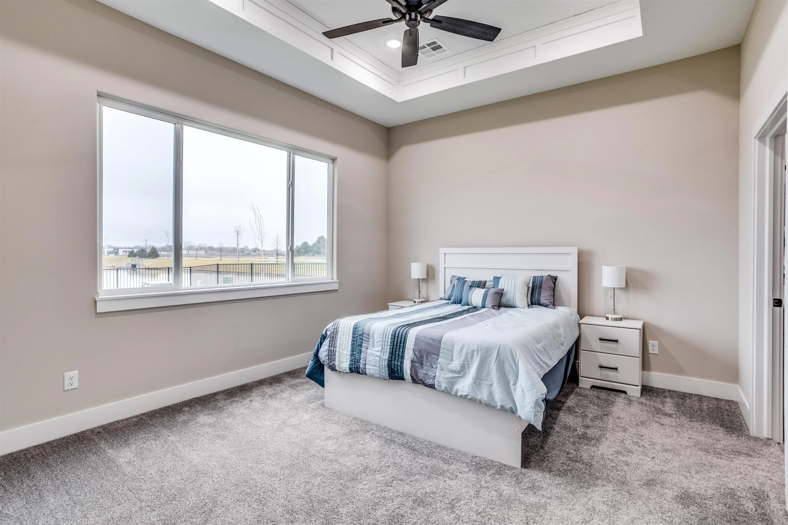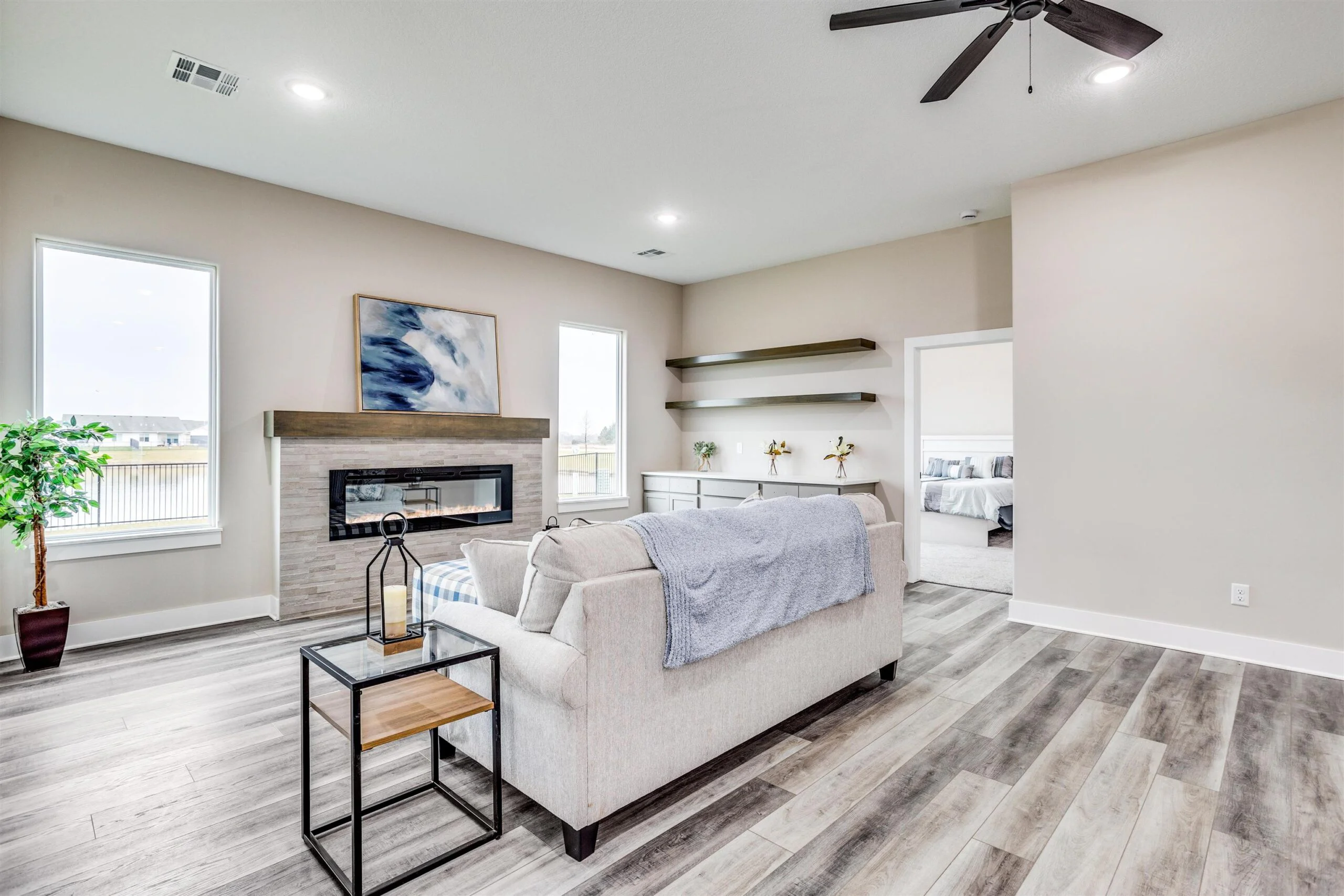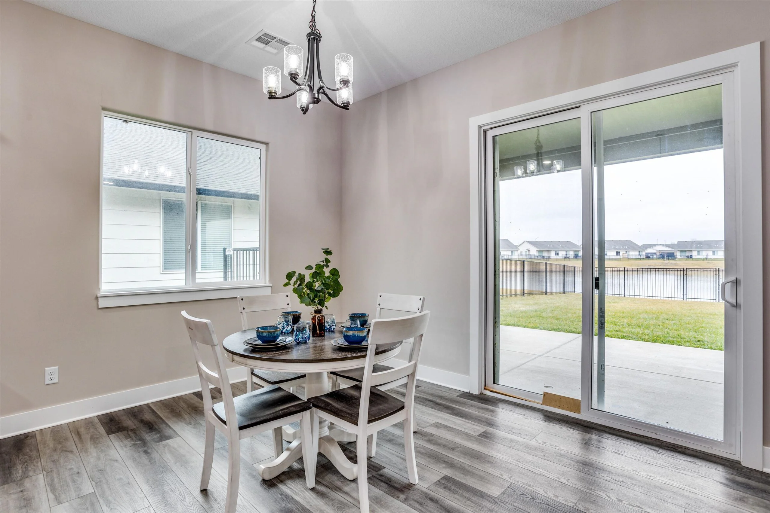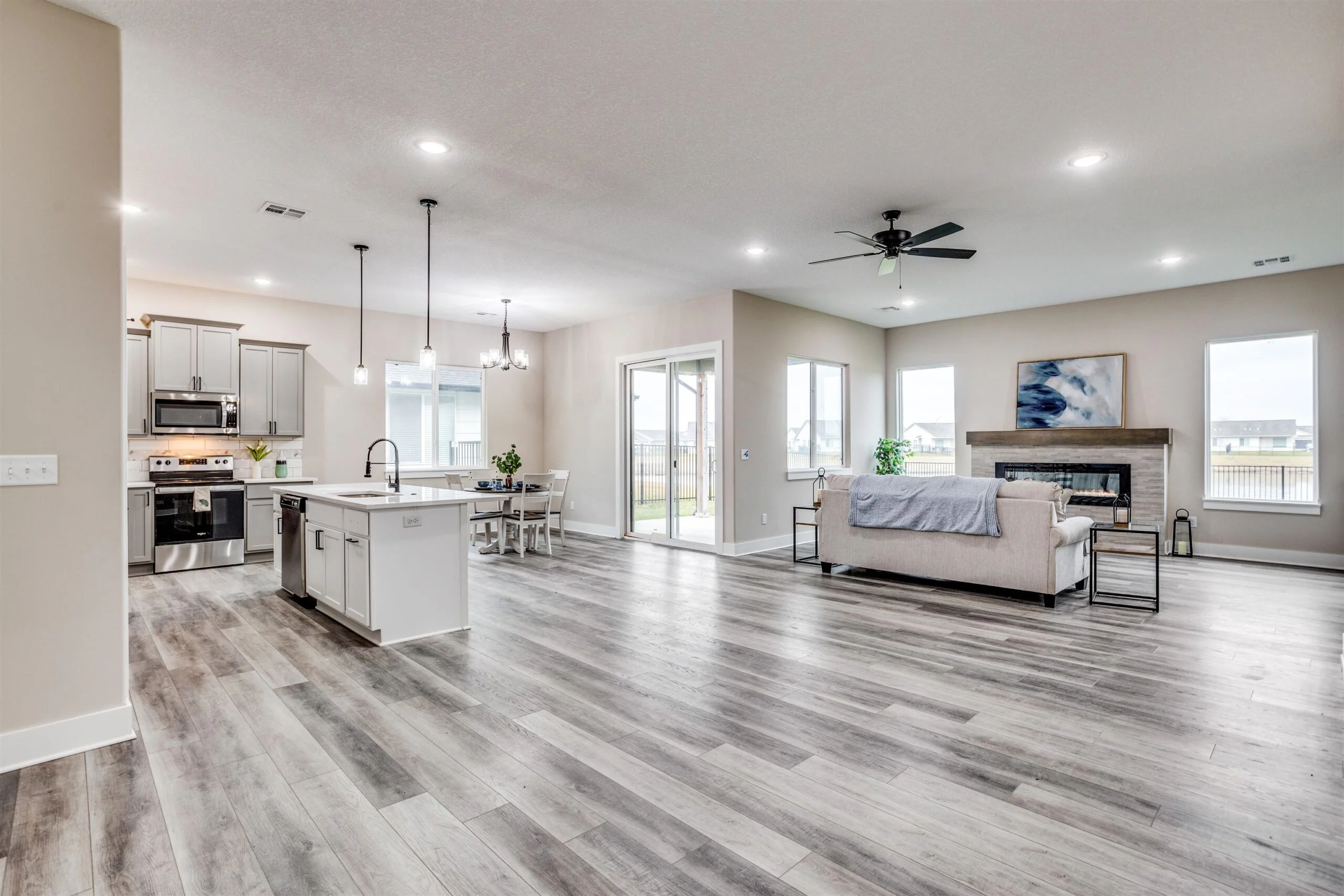 Introducing the Montana Plan by Relph Construction—where luxury meets convenience in a stunning lakefront setting. This thoughtfully designed zero-step home features 3 spacious bedrooms and 2 well-appointed bathrooms, perfect for comfortable living. The large kitchen is a chef’s dream, boasting quartz countertops, an abundance of cabinetry, a walk-in pantry, and a separate dining area for effortless entertaining. Step outside to the covered patio and enjoy serene lake views and a fenced backyard, creating an ideal space to relax or entertain guests. Inside, the open-concept living area is highlighted by an elegant electric fireplace and ample space for hosting family and friends. The luxurious Master Suite is a true retreat, offering a spacious bedroom, a private bath with a low-curb, tile-walled shower, and an expansive walk-in closet. Two additional bedrooms provide generous space and feature two closets each, ensuring plenty of storage for all your needs. For added peace of mind, a concrete storm shelter is conveniently located within the garage, enhancing safety and security. This remarkable home combines modern design, comfort, and functionality, offering a perfect blend of everyday luxury and lakeside living! Some information may be estimated and is not guaranteed. Please verify schools with USD 262.
