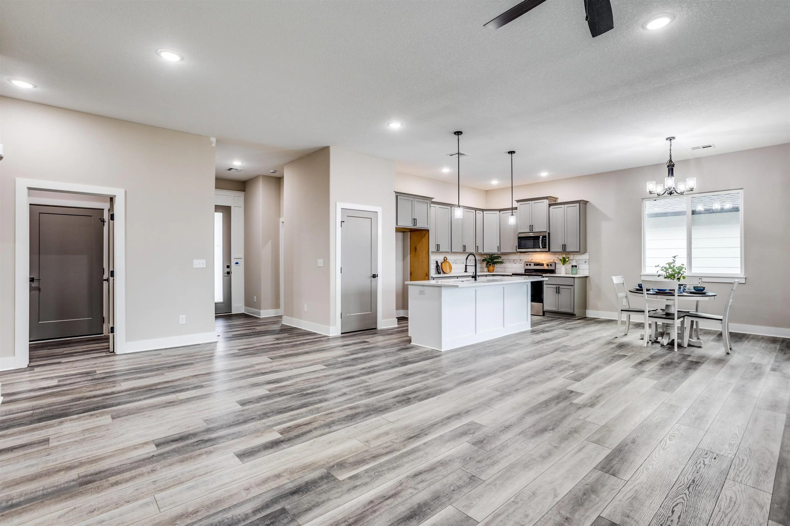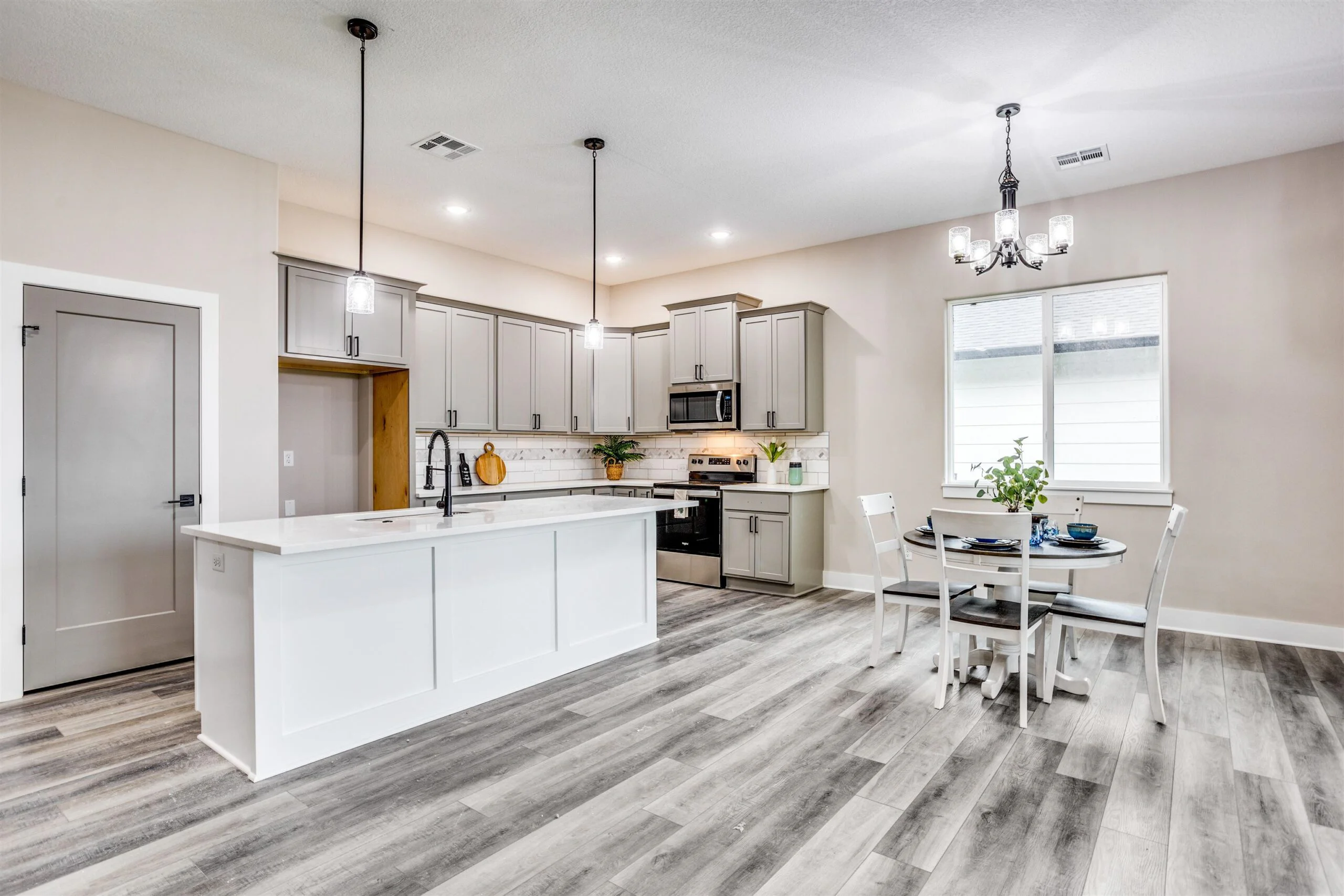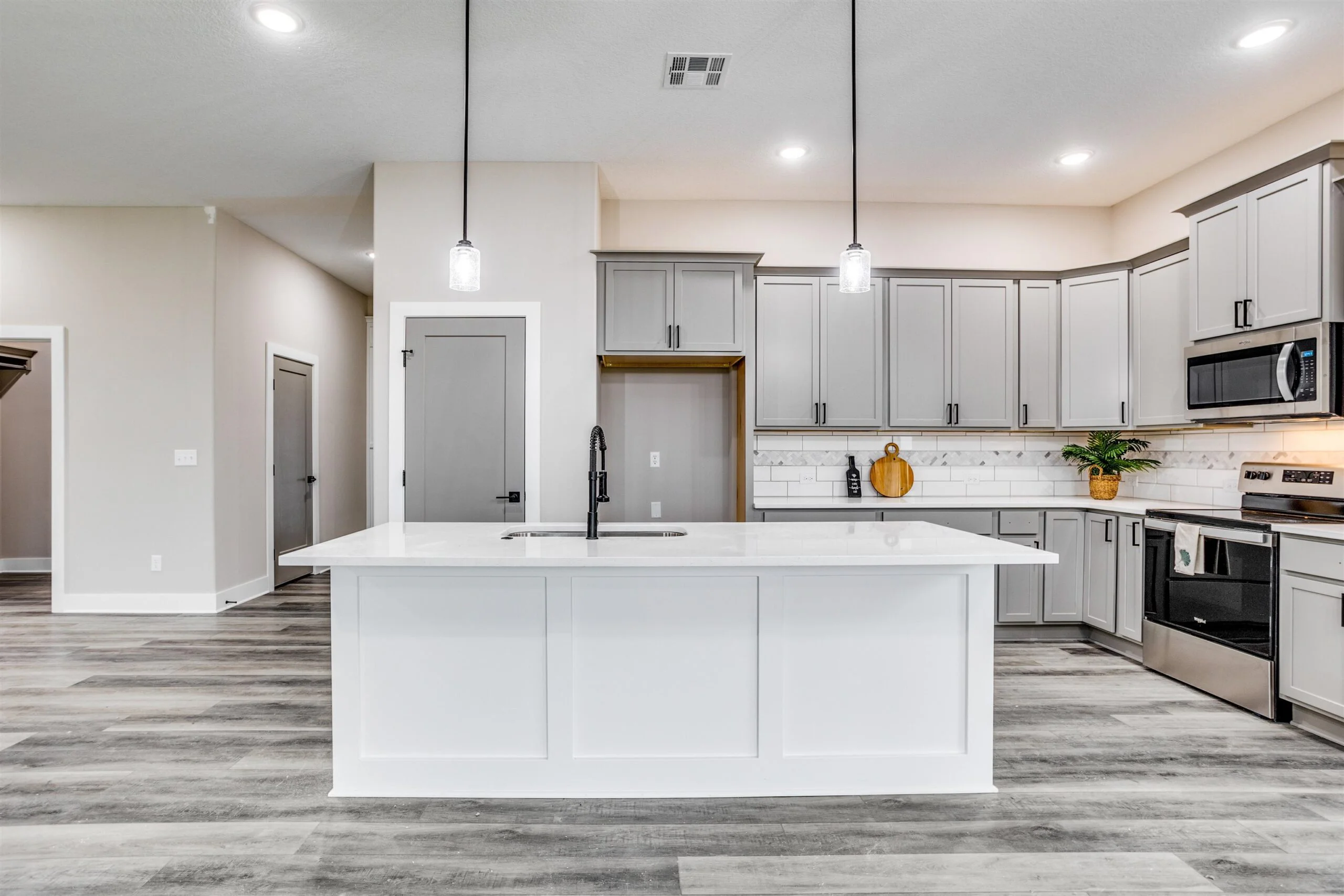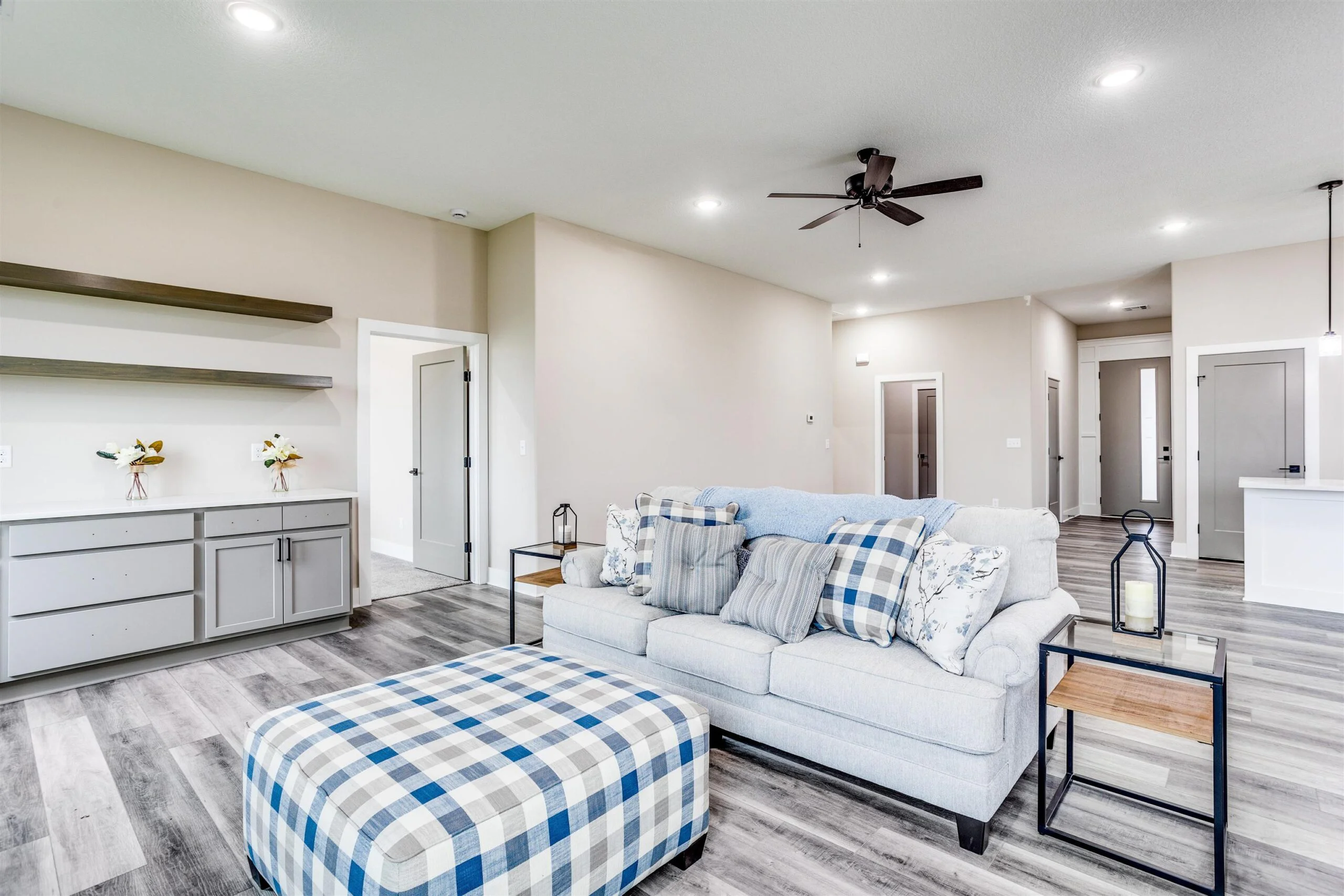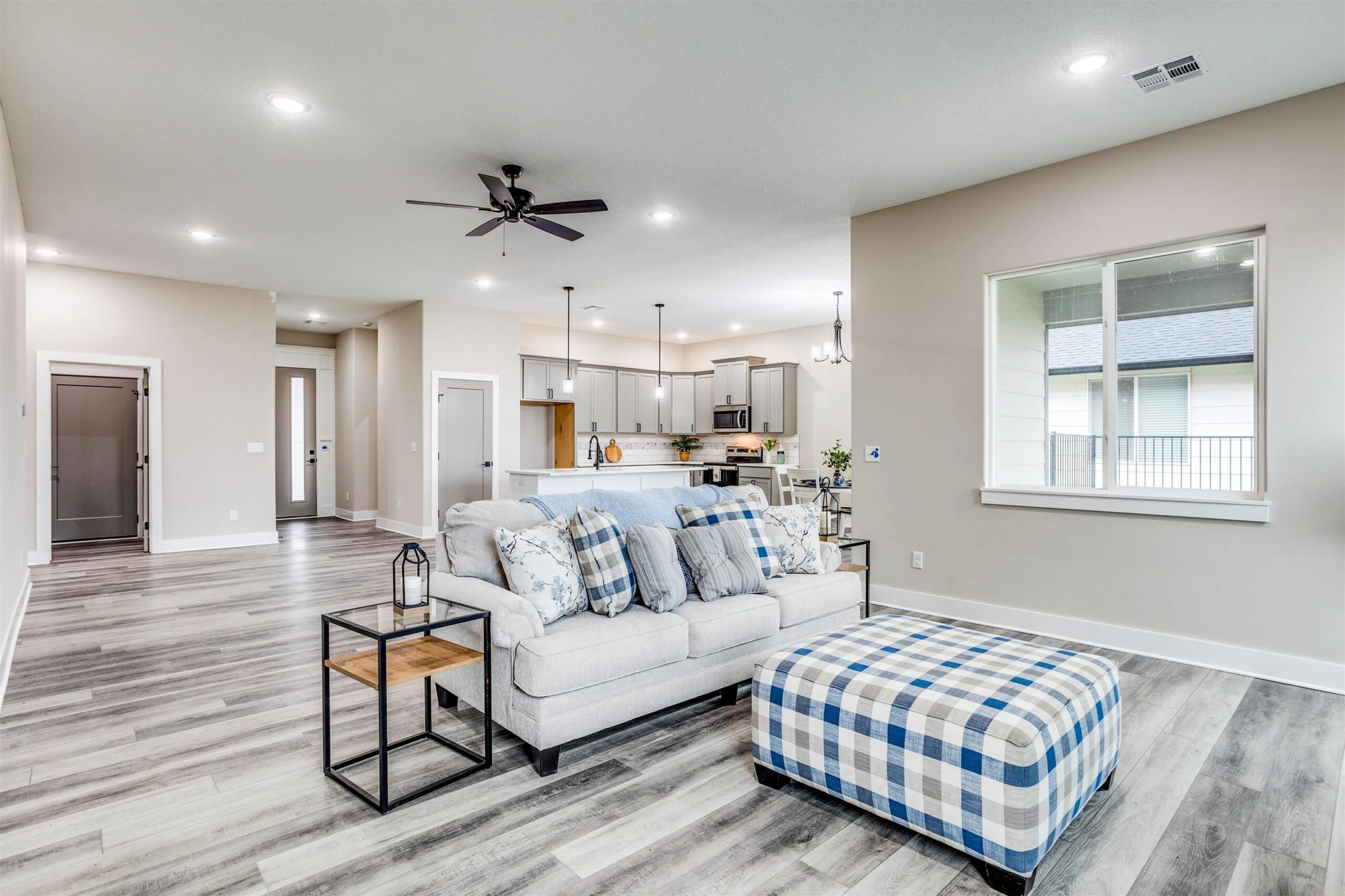 Introducing the Montana Plan by Relph Construction—where luxury meets convenience in a stunning lakefront setting. This thoughtfully designed zero-step home features 3 spacious bedrooms and 2 well-appointed bathrooms, perfect for comfortable living. The large kitchen is a chef’s dream, boasting quartz countertops, an abundance of cabinetry, a walk-in pantry, and a separate dining area for effortless entertaining. Step outside to the covered patio and enjoy serene lake views and a fenced backyard, creating an ideal space to relax or entertain guests. Inside, the open-concept living area is highlighted by an elegant electric fireplace and ample space for hosting family and friends. The luxurious Master Suite is a true retreat, offering a spacious bedroom, a private bath with a low-curb, tile-walled shower, and an expansive walk-in closet. Two additional bedrooms provide generous space and feature two closets each, ensuring plenty of storage for all your needs. For added peace of mind, a concrete storm shelter is conveniently located within the garage, enhancing safety and security. This remarkable home combines modern design, comfort, and functionality, offering a perfect blend of everyday luxury and lakeside living! Some information may be estimated and is not guaranteed. Please verify schools with USD 262.