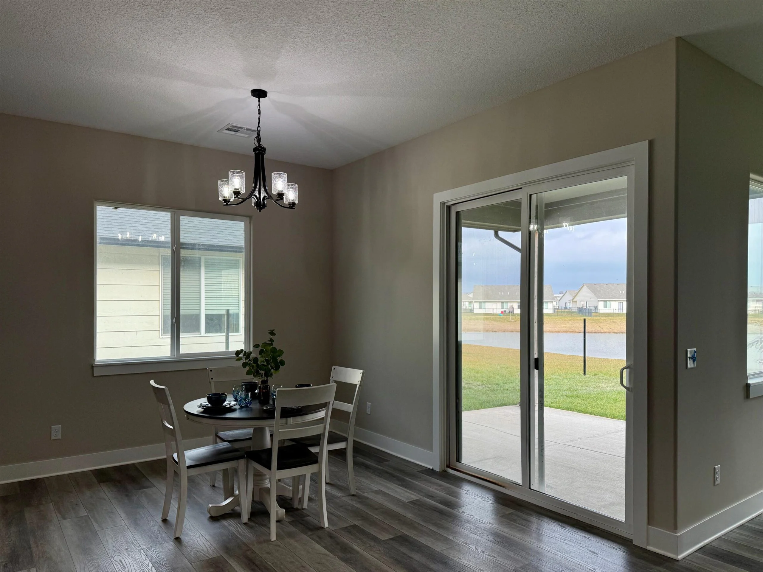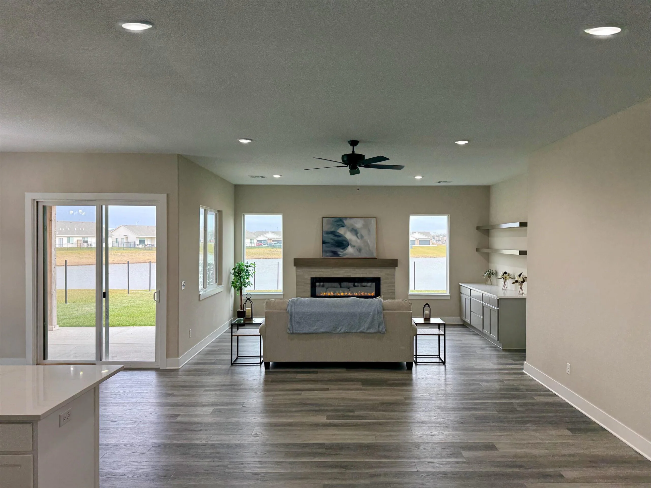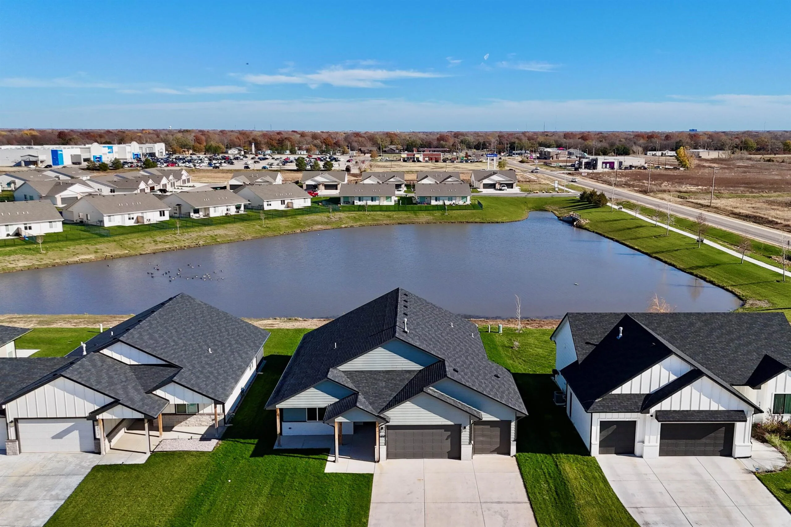 Ask the listing agent about current incentives on this home! Relph Construction has done it again with this phenomenal zero-step home on an outstanding lakefront lot here in beautiful Watermarke! This breathtaking Montana Plan welcomes you in with its classic yet bold front elevation and its oversized covered front porch. Upon entering the home, you are greeted by a designated entryway that leads into the expansive main living space. With the ten-foot ceilings that continue throughout the home and the abundance of natural light, you will never want to leave! The well-appointed, rear facing kitchen includes soft closing drawers and cabinets, quartz and granite countertops, a spacious island with eating bar, and a walk-in pantry with tons of storage! The main living area is designed with some additional space to accommodate having the family over for the holidays or even setting up 2 separate seating areas. The luxurious owner’s retreat features a beamed tray ceiling and is complete with a private bath with granite countertops and a tile walled shower, and a massive walk-in closet. The Montana Plan also includes 2 additional bedrooms, both equipped with 2 closets with built in shelves and hanging rods, that are perfect for a craft room, office, or even extra storage! The hall bath is conveniently located just off of the main living space and is also equipped with granite countertops. Perhaps the best feature of this stunning home is the glass doors out to the fully covered lakefront patio! This home is also outfitted with a concrete storm shelter with steel door accessible from the 3-car garage. Zero-step homes offer tons of unique benefits and if you are considering one for your next home, the Montana plan is a hard one to beat! Come out to Watermarke and check out this beautiful Montana Plan for yourself and say goodbye to steps, today! Some information may be estimated and is not guaranteed. The list price includes sod, sprinklers, and an irrigation well. The sod is scheduled to be installed as soon as possible (weather permitting). Please verify schools with USD 262.