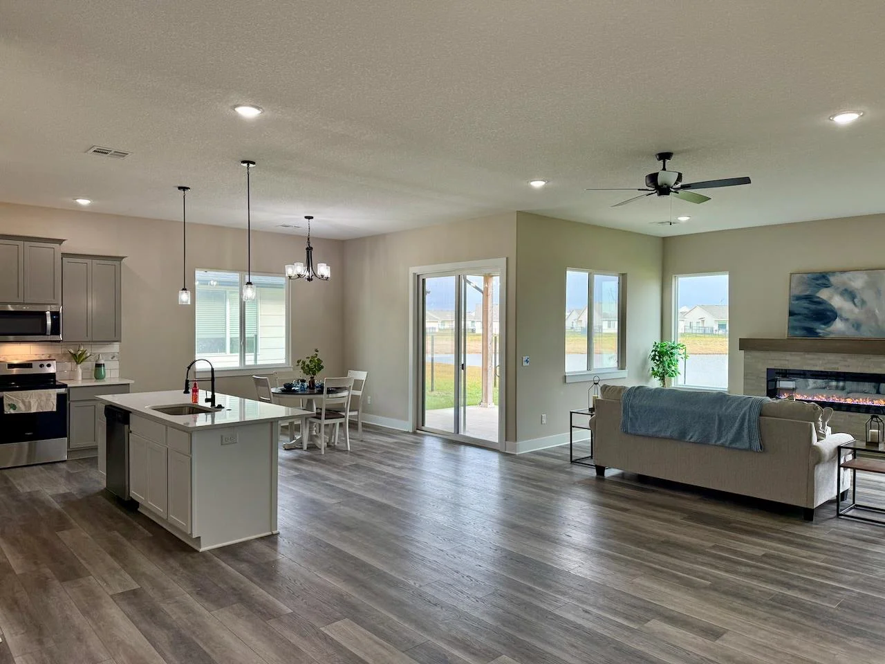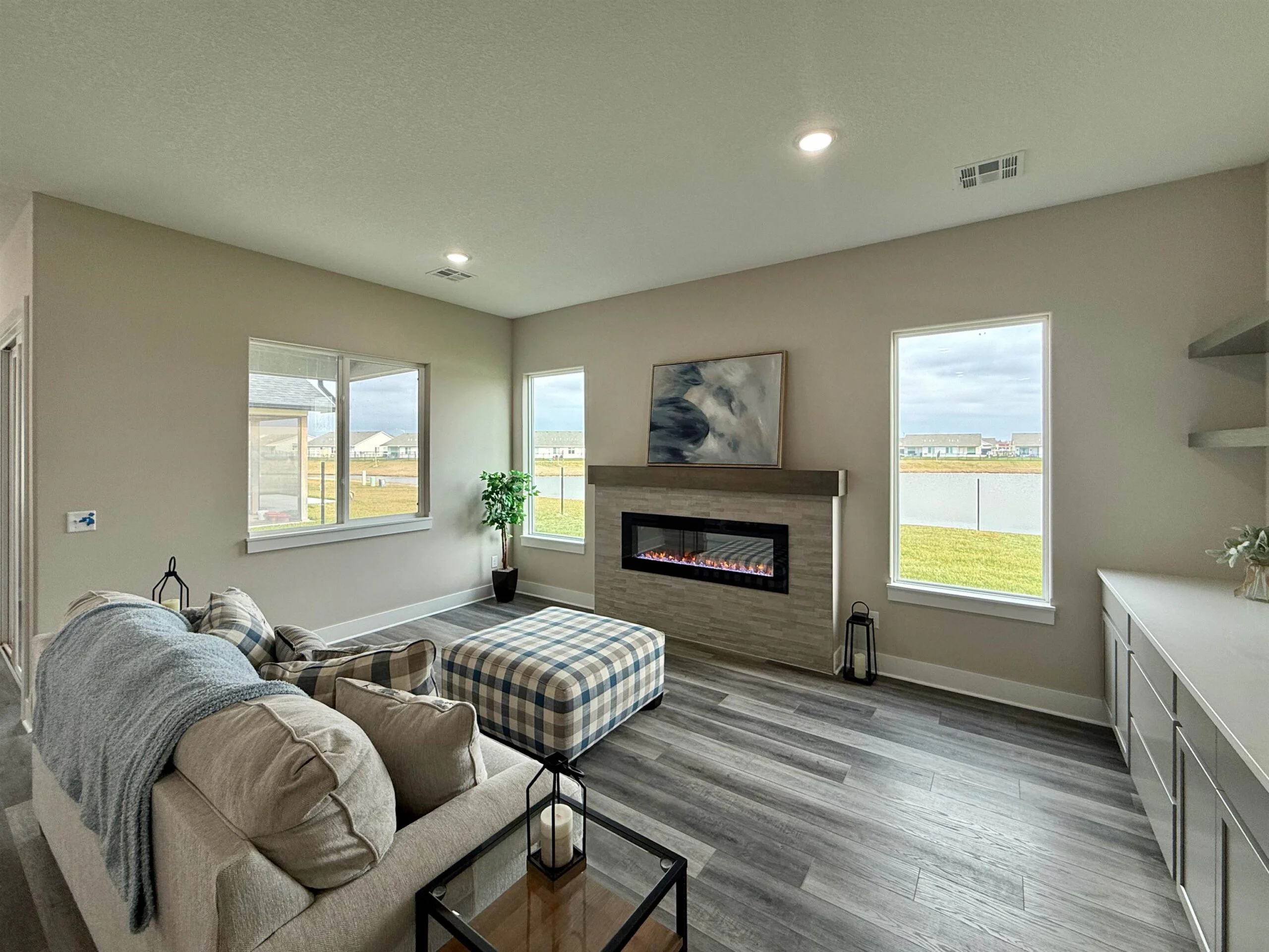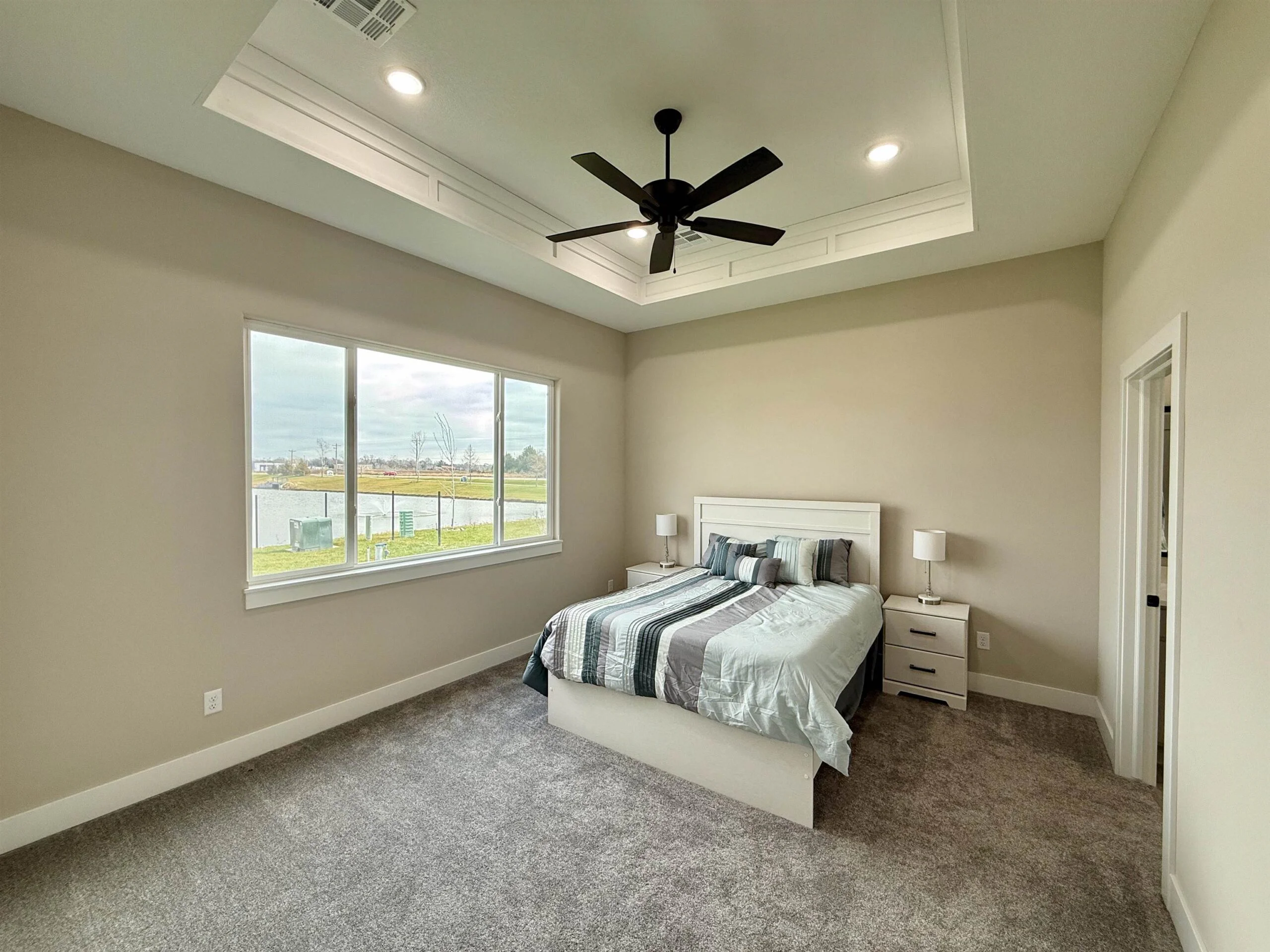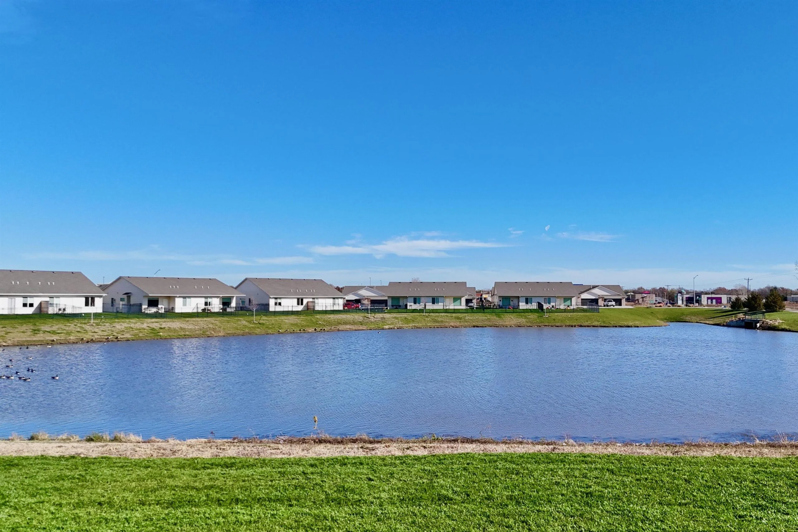 Ask the listing agent about current incentives on this home! Relph Construction has done it again with this phenomenal zero-step home on an outstanding lakefront lot here in beautiful Watermarke! This breathtaking Montana Plan welcomes you in with its classic yet bold front elevation and its oversized covered front porch. Upon entering the home, you are greeted by a designated entryway that leads into the expansive main living space. With the ten-foot ceilings that continue throughout the home and the abundance of natural light, you will never want to leave! The well-appointed, rear facing kitchen includes soft closing drawers and cabinets, quartz and granite countertops, a spacious island with eating bar, and a walk-in pantry with tons of storage! The main living area is designed with some additional space to accommodate having the family over for the holidays or even setting up 2 separate seating areas. The luxurious owner’s retreat features a beamed tray ceiling and is complete with a private bath with granite countertops and a tile walled shower, and a massive walk-in closet. The Montana Plan also includes 2 additional bedrooms, both equipped with 2 closets with built in shelves and hanging rods, that are perfect for a craft room, office, or even extra storage! The hall bath is conveniently located just off of the main living space and is also equipped with granite countertops. Perhaps the best feature of this stunning home is the glass doors out to the fully covered lakefront patio! This home is also outfitted with a concrete storm shelter with steel door accessible from the 3-car garage. Zero-step homes offer tons of unique benefits and if you are considering one for your next home, the Montana plan is a hard one to beat! Come out to Watermarke and check out this beautiful Montana Plan for yourself and say goodbye to steps, today! Some information may be estimated and is not guaranteed. The list price includes sod, sprinklers, and an irrigation well. The sod is scheduled to be installed as soon as possible (weather permitting). Please verify schools with USD 262.