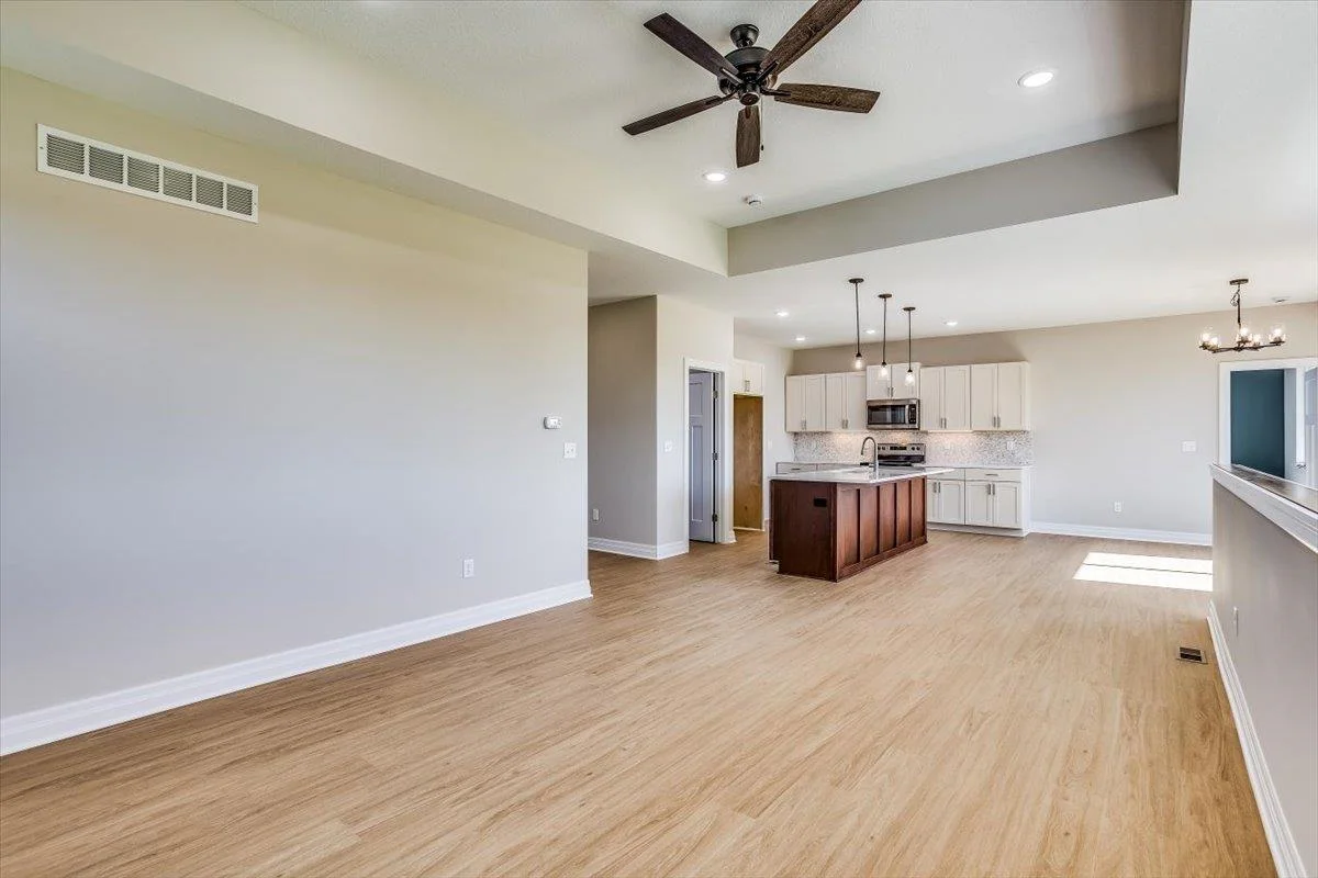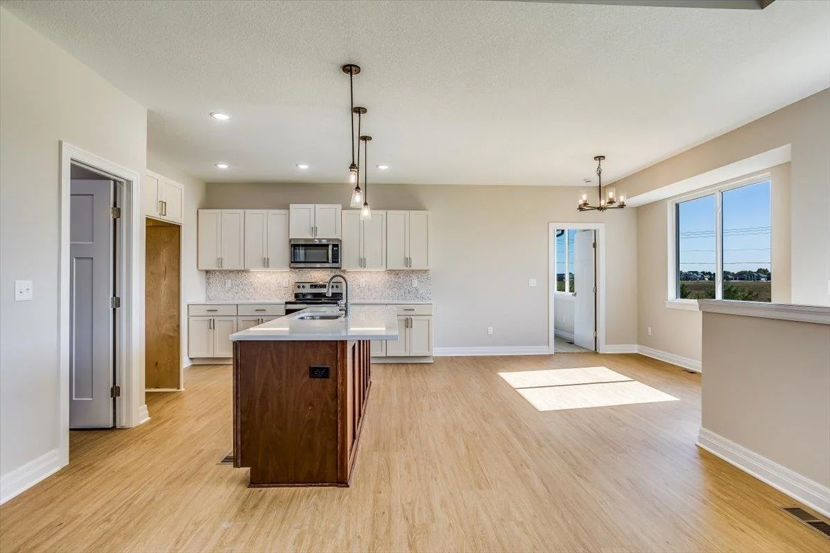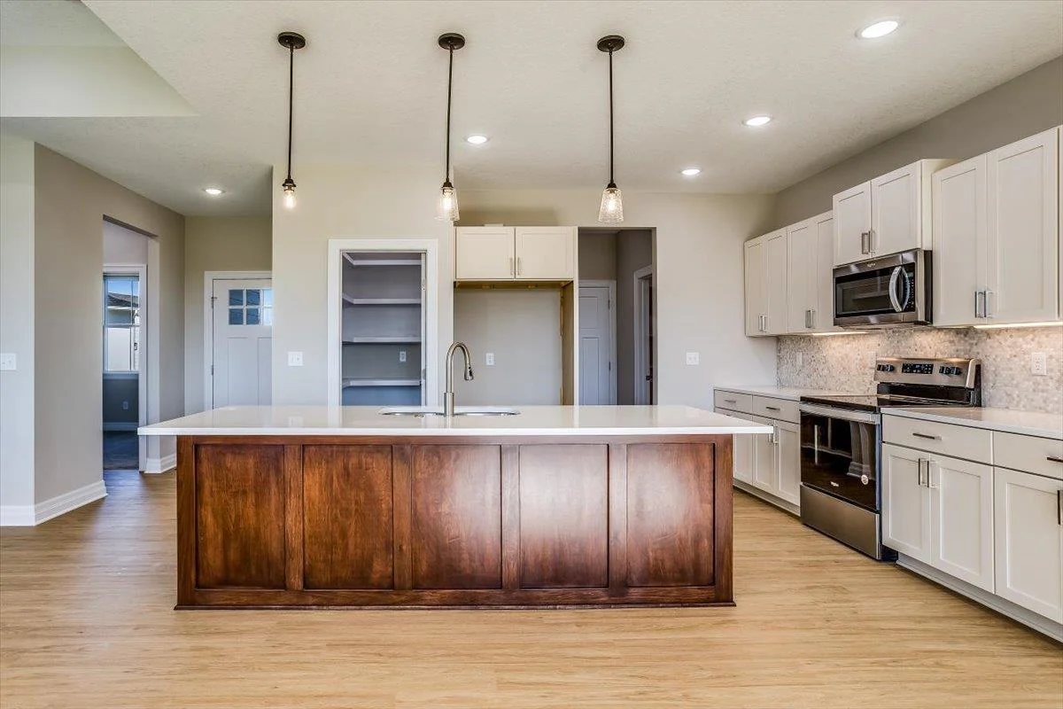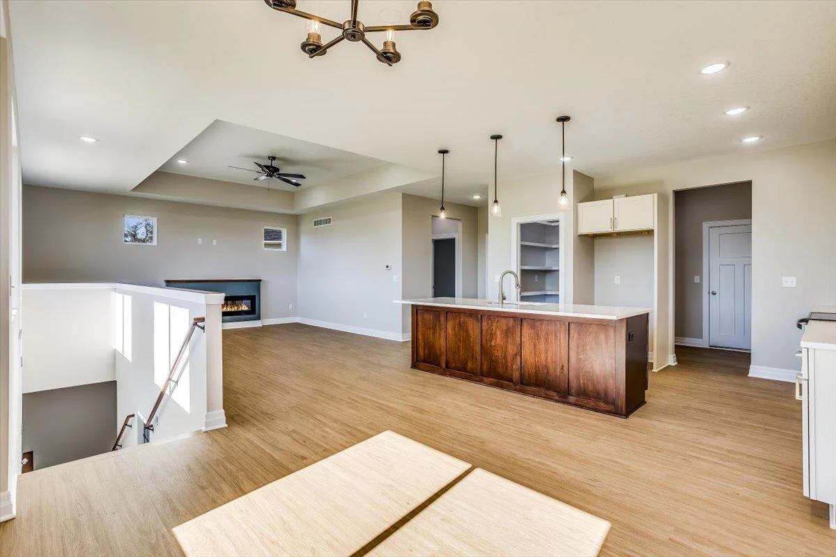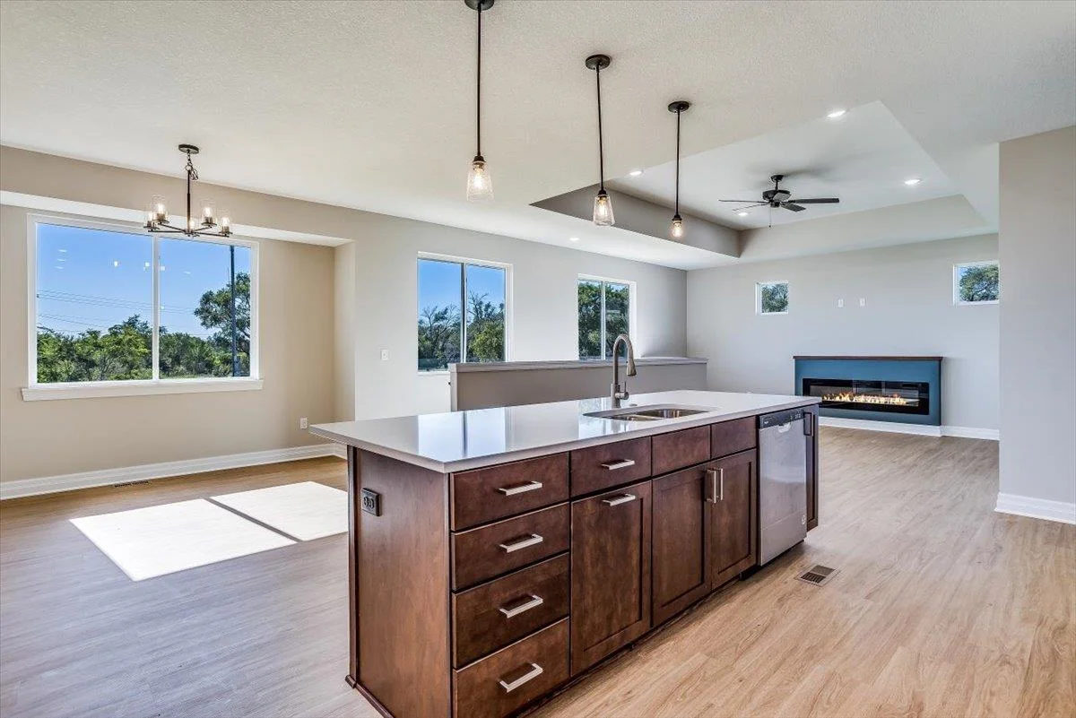 The Builder is currently offering a temporary price reduction on this home for the next 60 days! (Listed price reflects promotional price reduction). RJ Castle Custom Homes brings luxury and unparalleled value together with this brand new plan! The main floor features an open, livable layout, and large windows across the back of the home offering an abundance of natural light. The main floor features include a spacious living room with trey ceilings and electric fireplace, a well appointed kitchen with quartz countertops and walk-in pantry, a lavish owner’s suit with private bath equipped with a full tile shower and a walk-in closet, separate laundry room with direct access the the master closet, and an additional main floor bedroom accompanied by a hall bath. The fully finished lower level includes a generously sized family, walk-up wet bar with quartz counter tops, 2 additional bedrooms, a full bath, and plenty of room for storage! Come see this incredible quick-possession home and start building new memories in beautiful Watermarke. Some information may be estimated, and is not guaranteed, please verify schools with USD262.