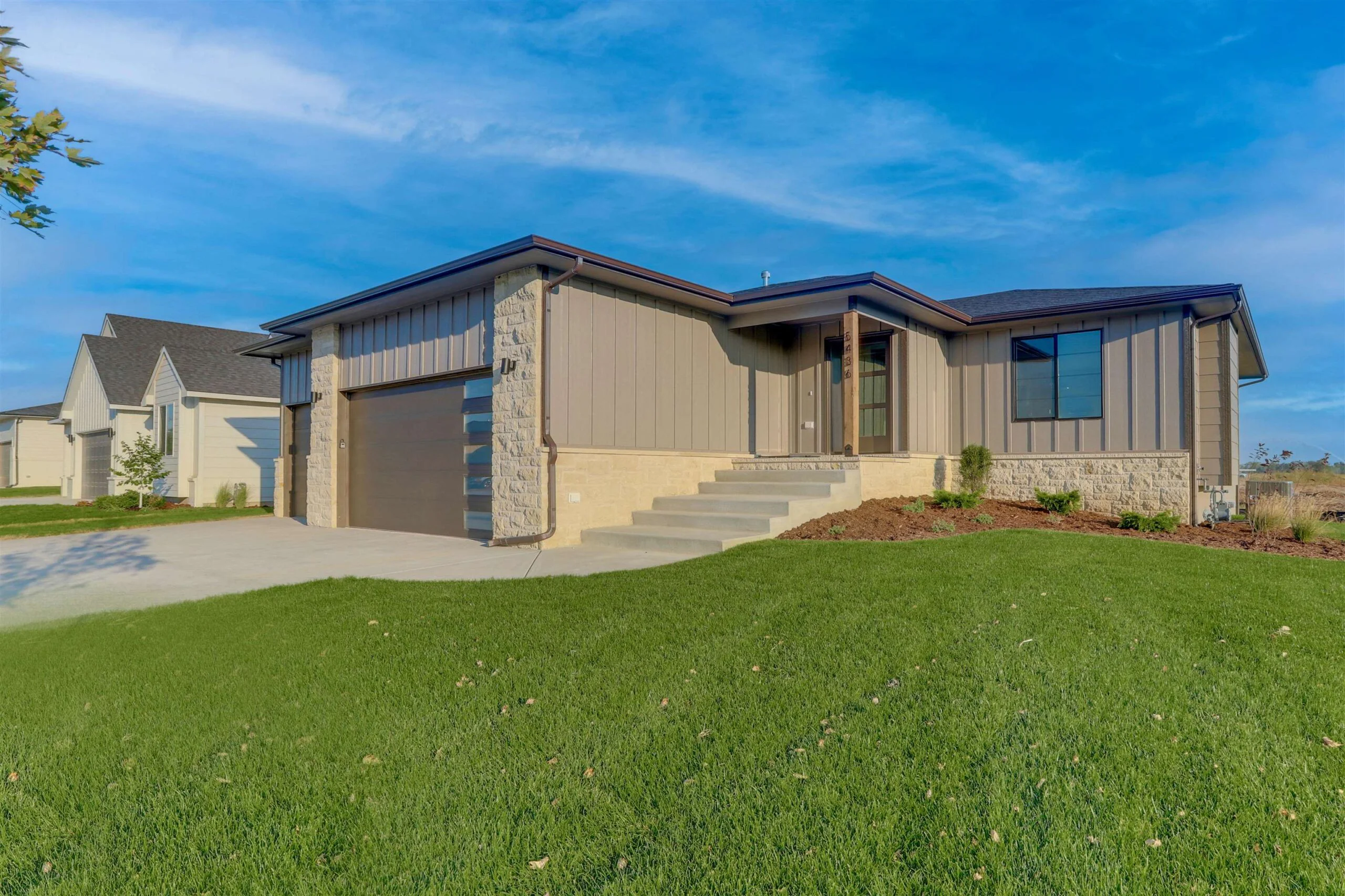 This distinctive new design TW Custom Homes combines the character and charm you would see in the classic homes of yesterday with the modern luxury features and finishes you expect to see today. This captivating new plan, with its unique features and striking finishes, is an absolute must see! Upon entering the home, the foyer with entry closet leads you into the spacious living room with electric fireplace. The well-appointed kitchen includes quartz countertops and a walk-in pantry as well as a separate dining space. The lavish owner’s suite includes a spacious bedroom, a private bath with quartz countertops and a tile shower, and two separate walk-in closets!The main floor features also include two additional bedrooms, a full hall bath, and laundry room conveniently located by the garage entrance. The stairs down to the lower-level feature spectacular 2 story windows and a walk-out door from the landing takes you out to the back patio. The fully finished lower level includes an expansive family room with walk-up wet bar, as well as two additional bedrooms, a full hall bath, and plenty of room for storage! Come see this incredible model home and everything Watermarke has to offer, today!Some information may be estimated, and is not guaranteed, please verify schools with USD262.