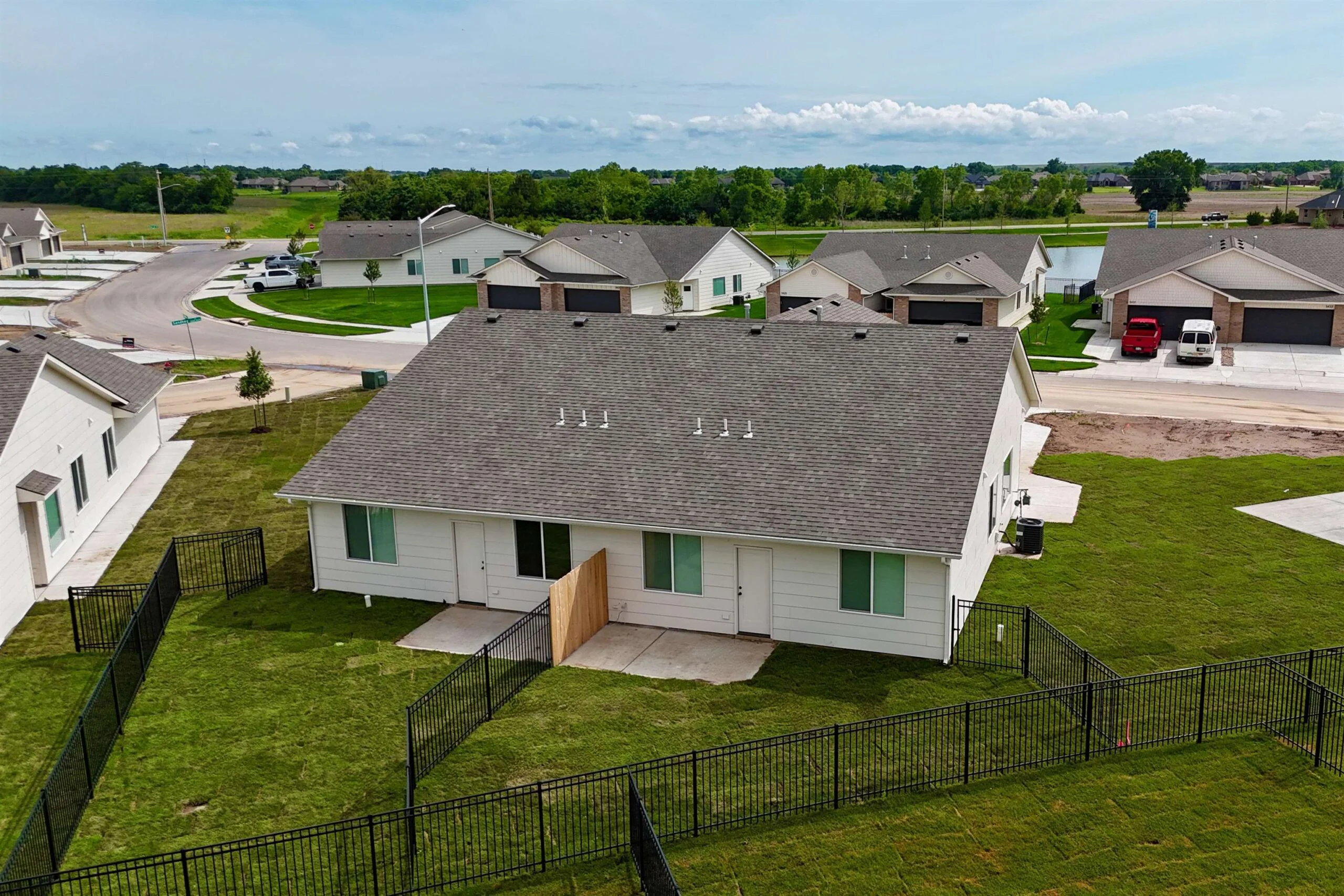 This newly built, junior-executive twin home located in the Valley Center School District is conveniently located near shopping, dining, entertainment opportunities, is move in ready and available now! This zero-step unit is equipped with 3 bedrooms, 2 bathrooms, 2 car garage with opener, 10-foot ceilings, and a walk-in closet. Finished with low maintenance in mind, this home features luxury vinyl flooring throughout, quarts countertops in the kitchen and baths, and access to a partially covered patio. The yard is landscaped to include sod, sprinkler systems, and wrought iron fencing. All lawn maintenance and mowing is managed by the HOA. Community features include neighborhood ponds, playground and basketball court. Ask the listing agent about other available units. Some information may be estimated and is not guaranteed. Please verify schools with USD 262.