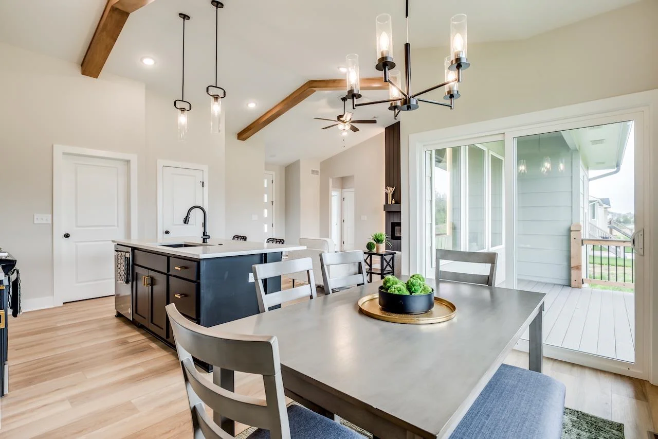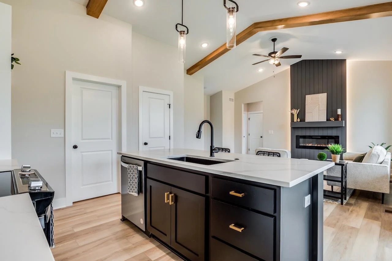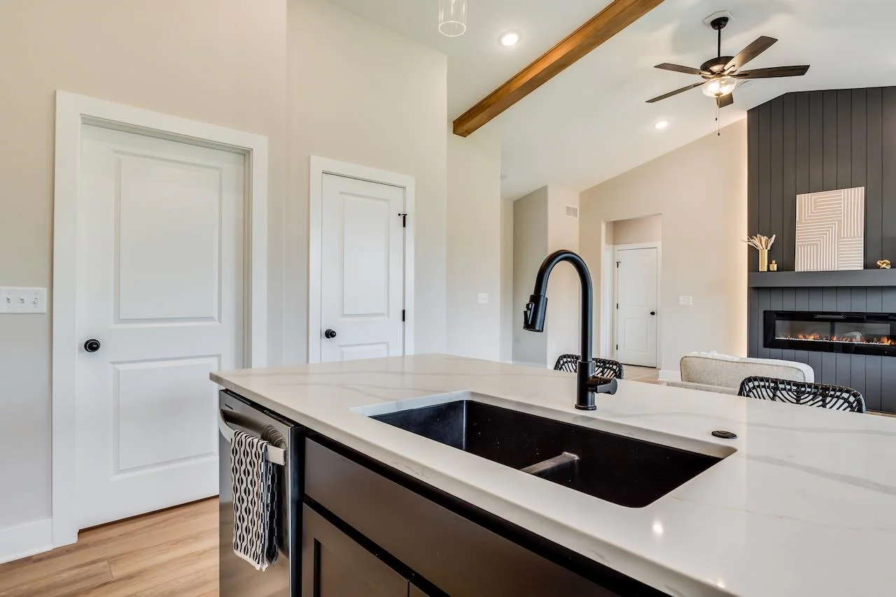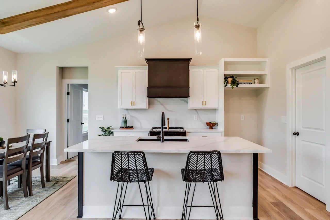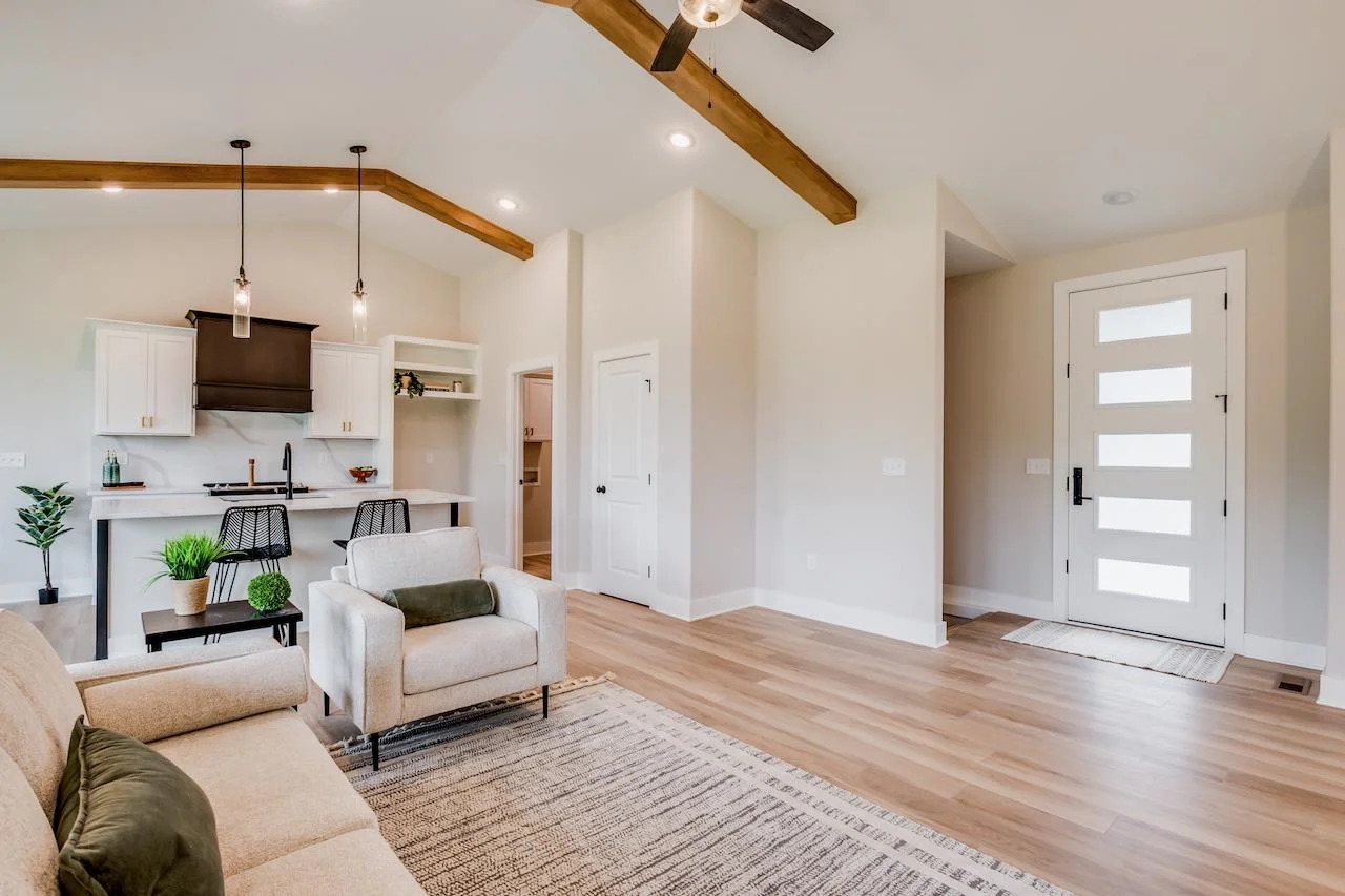 Back by Popular Demand – The Bunker Plan by C&A Homes! A masterclass in smart design, the Bunker Plan is all about making every square foot count without sacrificing style. From the moment you step inside, you'll be wowed by the vaulted, beamed ceilings, oversized picture windows, and a striking floor-to-ceiling backlit fireplace that anchors the main living space with warmth and modern flair. The kitchen is a showstopper—featuring quartz countertops and backsplash, a generous island perfect for casual meals or entertaining, and spacious pantry to keep everything organized. The open-concept dining area easily fits a large table, making it ideal for hosting everything from holiday dinners to weekend brunches. Step outside to a large, covered composite deck—perfect for morning coffee or evening gatherings—with steps leading down to your backyard retreat. The luxurious Master Suite offers a peaceful escape with a private bath boasting a tiled shower, quartz double vanity, and a spacious walk-in closet. Two additional large bedrooms and a full bath round out the main floor. Downstairs, the unfinished lower level is framed and roughed in for a family room, two more bedrooms, a full bath, and generous storage. Finish it now with the builder or create future equity on your own timeline. Don’t miss your chance to own this incredibly popular plan—designed for the way you live today! Some information may be estimated and is not guaranteed. Please verify schools with USD 262.
