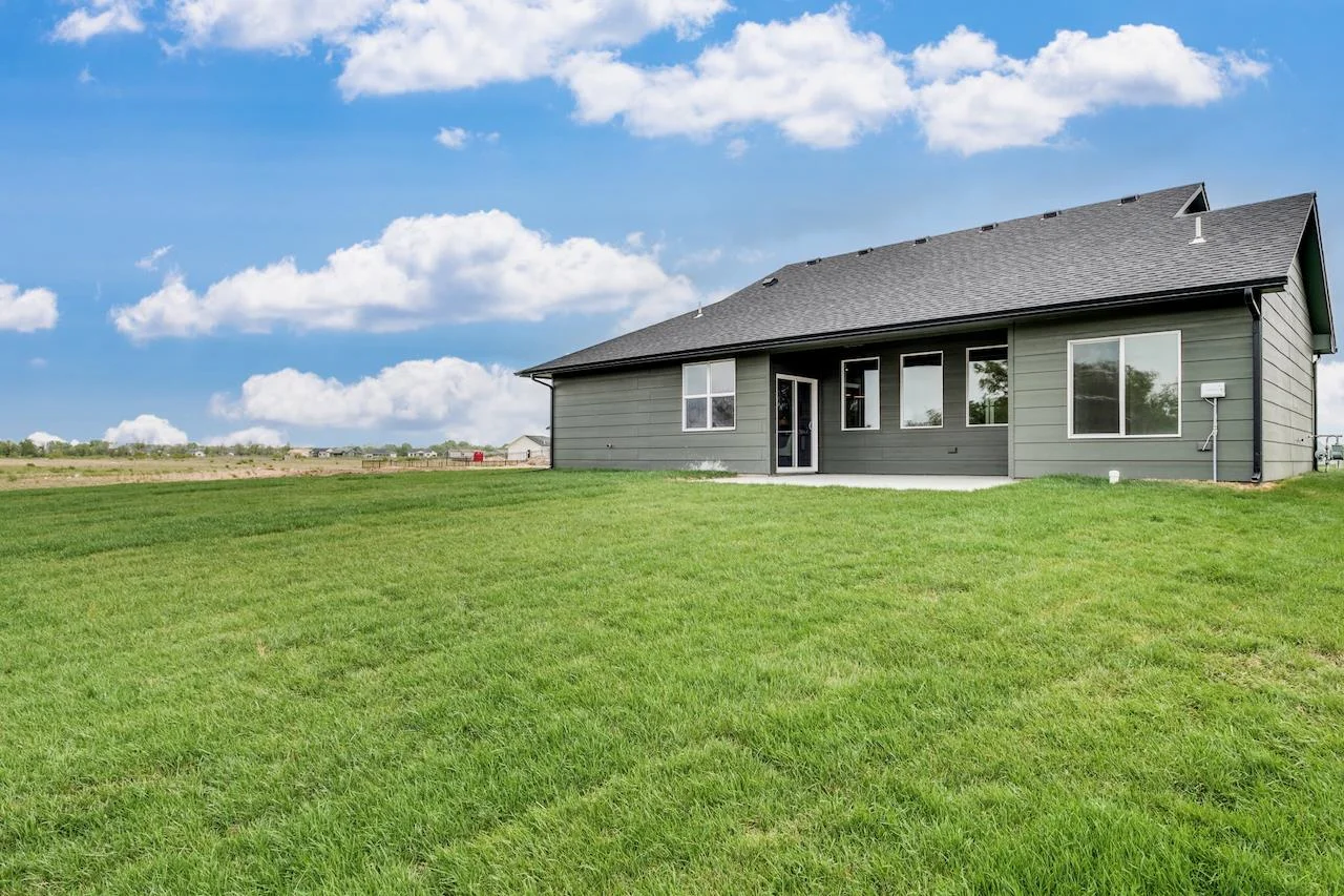 Introducing the Brax Plan by T.W. Custom Homes – Effortless Living with Timeless Style. Experience the perfect blend of thoughtful design and modern comfort in the all-new zero-step Brax Plan. With its stunning front elevation and classic architectural details, this home makes a striking first impression. Step inside to a welcoming foyer that opens to a spacious living room featuring beamed ceilings, expansive picture windows, and a sleek electric fireplace flanked by built-in shelving—an ideal space for relaxing or entertaining. The chef’s kitchen is both functional and stylish, complete with a large island, granite countertops, ample cabinetry, and a walk-in pantry. The open dining area flows seamlessly to the covered back patio, extending your living space outdoors. Retreat to the luxurious Master Suite with a spa-like private bath, showcasing a dual quartz vanity, low-curb tile shower, and a generous walk-in closet. Convenience meets design in the smart layout featuring a drop zone just inside the garage entry, leading directly to a well-appointed laundry room with a built-in folding table, hanging rod, and cabinets. A concrete storm shelter, discreetly tucked behind the mechanical room, adds peace of mind without sacrificing space or style. Two additional large bedrooms and a full hall bath complete this intelligently designed home—all on a zero-step layout that brings ease and accessibility to everyday living. Live comfortably and stylishly with today’s most sought-after features and finishes in the beautifully crafted Brax Plan. Some information may be estimated and is not guaranteed. Please verify schools with USD 262.