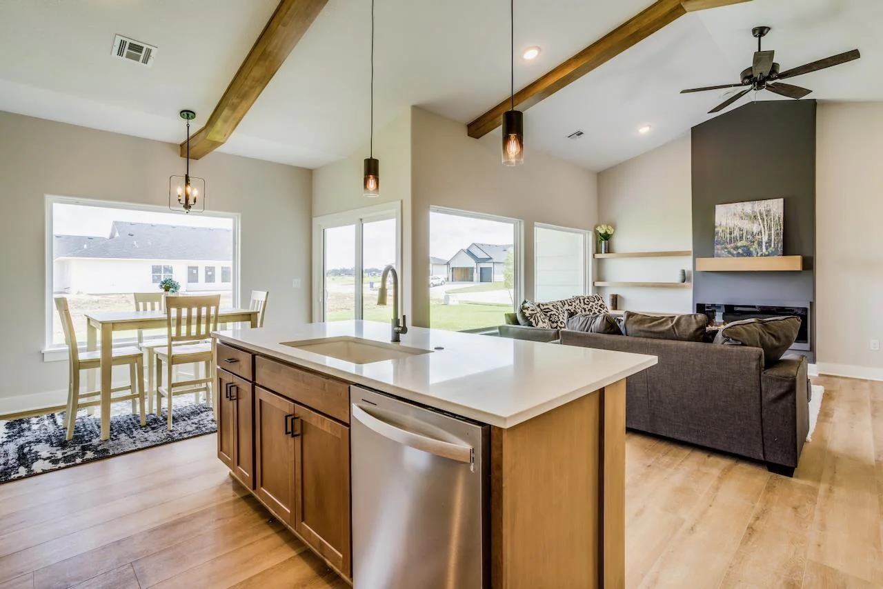 Introducing the Zero-Step Bunker Plan by C&A Homes – the ultimate in modern, accessible living. C&A Homes has taken their most popular plan and reimagined it with your comfort and convenience in mind. This stunning home features a spacious living room with vaulted ceilings, large picture windows that flood the space with natural light, and a cozy electric fireplace for those chilly evenings. The kitchen is a chef’s dream with a large island topped with sleek quartz countertops and a generous walk-in pantry to keep your kitchen organized. Adjacent, the spacious dining area offers easy access to the ground-level, covered patio – perfect for enjoying outdoor meals or relaxing in style. Retreat to your private Master Suite, where you'll find a spacious bedroom, a luxurious bath with a low-curb shower, and a huge walk-in closet. Two additional well-sized bedrooms and a beautifully appointed hall bath ensure everyone has their own space to unwind. For peace of mind, the home features a concrete storm shelter located in the 3-car garage, providing added protection during stormy weather. Best of all, you can enjoy the coveted Bunker plan with all of its luxury and features, now in a zero-step version here in beautiful Watermarke! Some information may be estimated and is not guaranteed. Please verify schools with USD 262.
