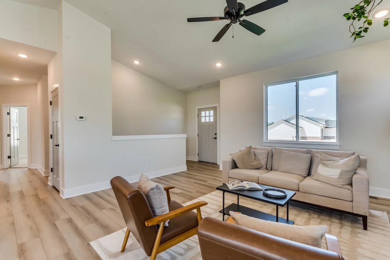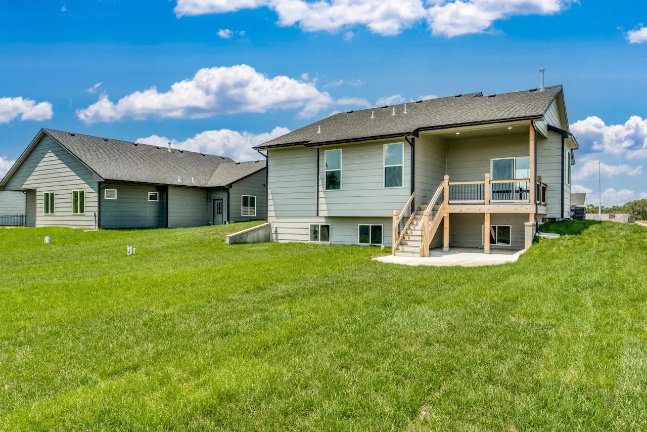 The Lakeview Plan by RJ Castle Custom Homes – Where Luxury Meets Lakeside Living. Experience the perfect blend of elegance, comfort, and functionality in this stunning new construction situated on a scenic lake lot. Featuring a timeless front elevation, this home invites you in with exceptional design and attention to detail throughout. Step into the expansive main living area, where vaulted ceilings and an electric fireplace with custom mantle and floating shelves create a warm, inviting atmosphere. The kitchen boasts sleek quartz countertops, storage pantry, and stainless-steel appliances—perfect for everyday living or entertaining. The flexible dining area easily accommodates gatherings, with space to expand your table for hosting family and friends. Step outside to a large, covered composite deck overlooking tranquil lake views, with stairs leading down to a generous ground-level patio—ideal for outdoor entertaining or quiet relaxation. Retreat to the luxurious master suite with vaulted ceilings, a spa-inspired private bath featuring dual vanities, a tile shower, and a large walk-in closet. Two additional bedrooms, a full hall bath, and a convenient laundry room complete the thoughtfully designed main floor. Downstairs, the fully finished view-out lower level offers a spacious family room with a well-appointed wet bar, two generously sized bedrooms, a full bath, and plenty of storage space. This home is the perfect combination of custom craftsmanship, modern luxury, and practical affordability—all in a picturesque lakefront setting. Don't miss your chance to own The Lakeview Plan—a home where everyday living feels like a getaway. Some information may be estimated and is not guaranteed. Please verify schools with USD 262.