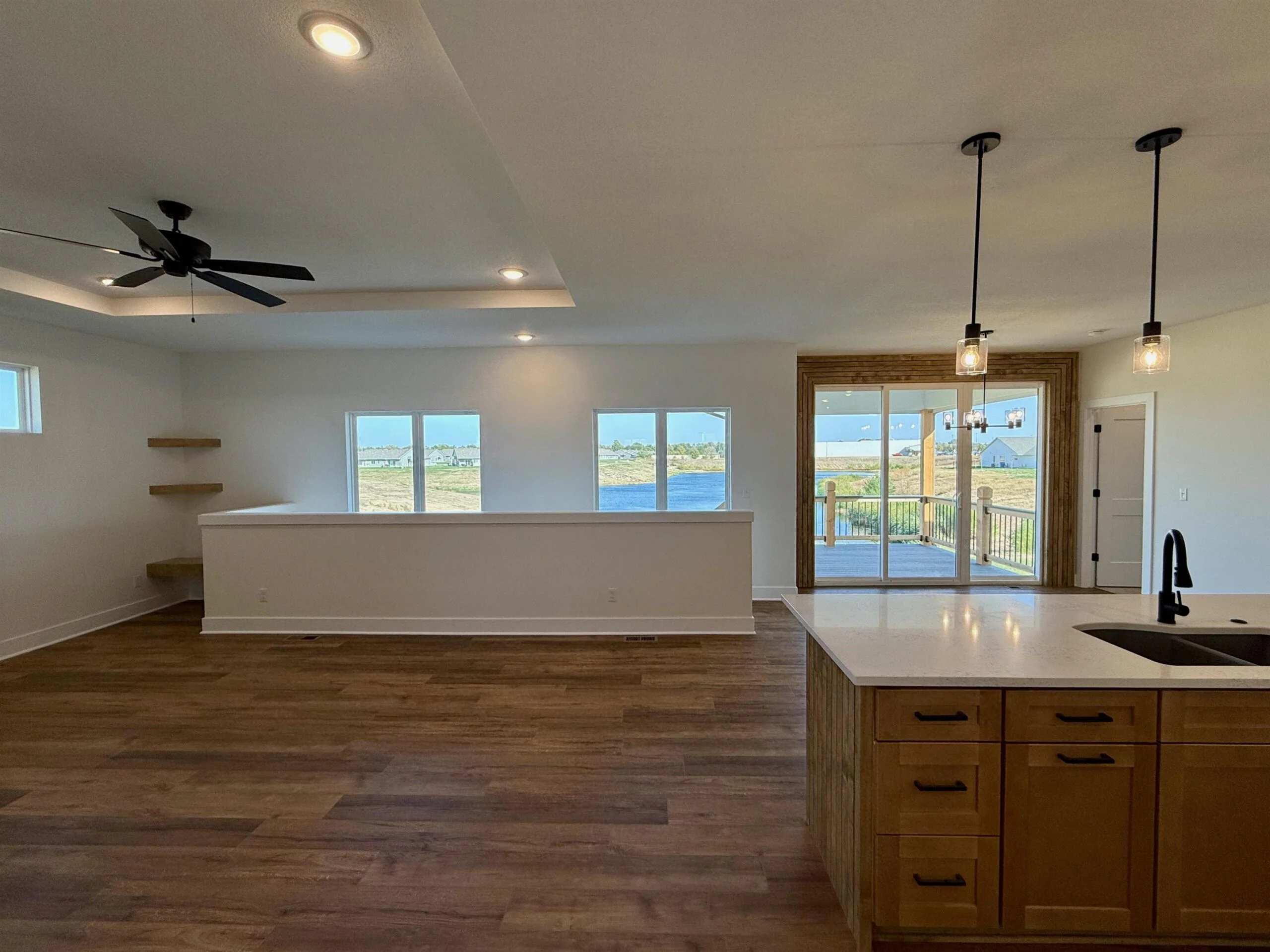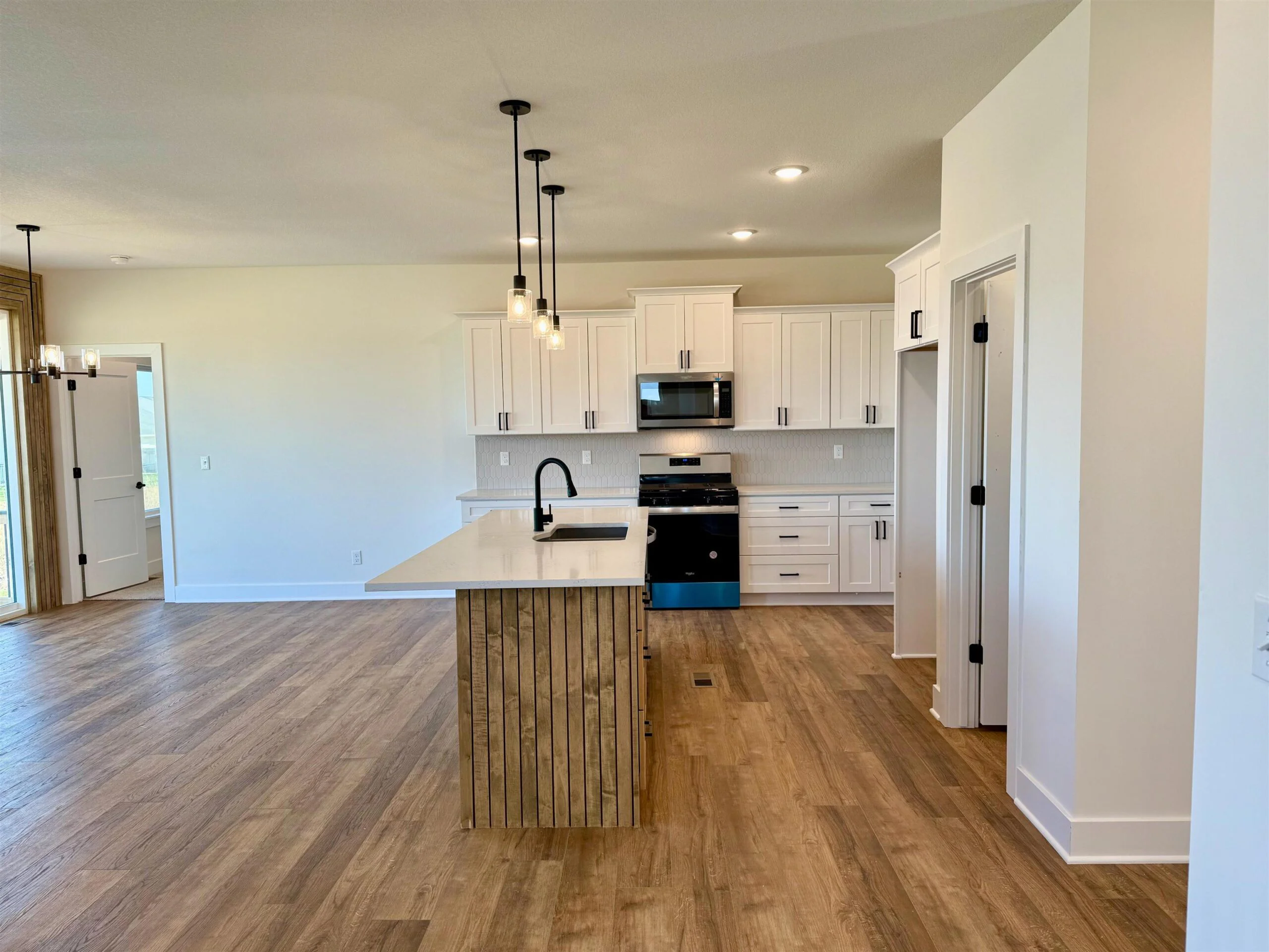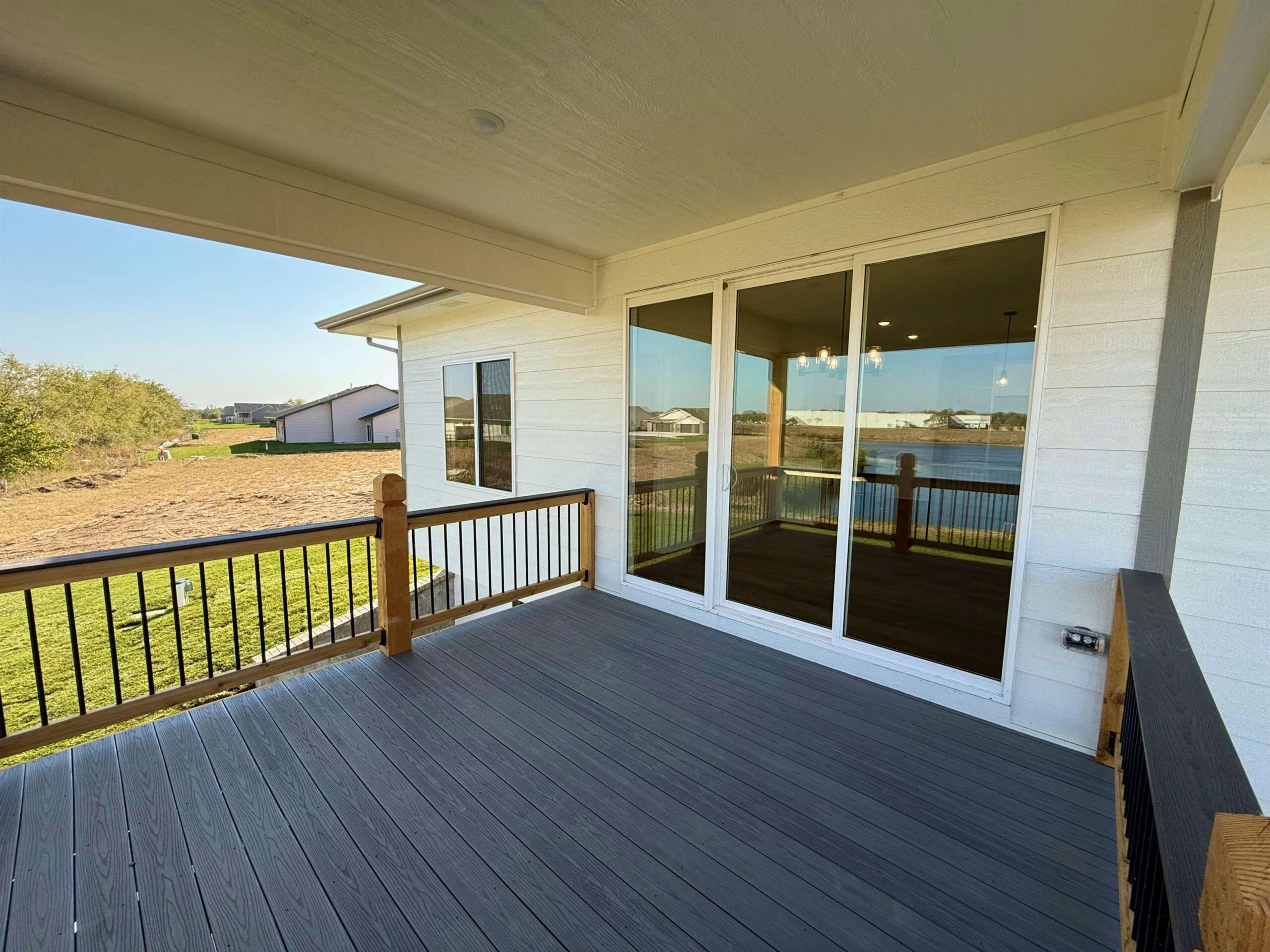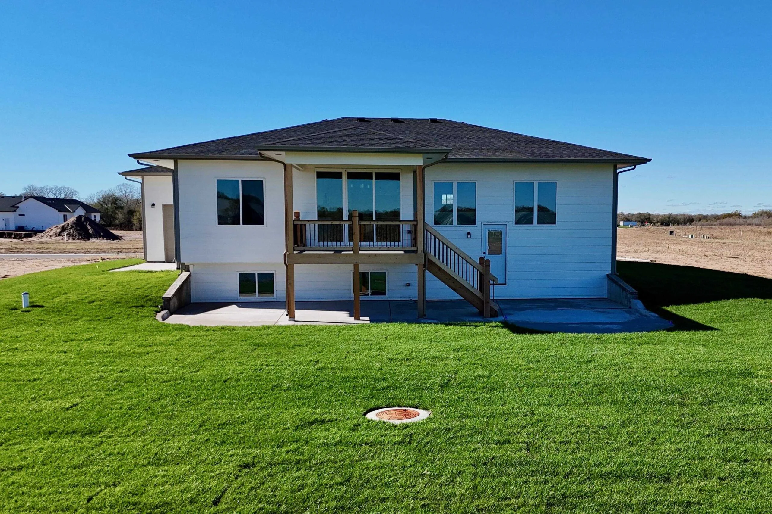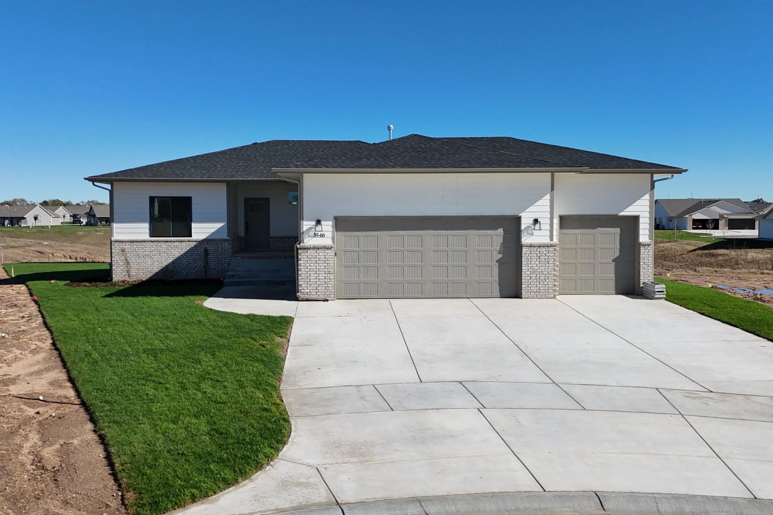 Back by popular demand, the Baby Bella Plan by RJ Castle Custom Homes, nestled in a peaceful cul-de-sac on a picturesque lake lot. This stunning residence boasts four spacious bedrooms and three beautifully appointed bathrooms, making it the perfect family haven. The heart of the home features a cozy living room with a striking marble tile fireplace, ideal for gatherings or quiet evenings. The rear-facing kitchen, complete with a walk-in pantry, seamlessly blends functionality and style, catering to both culinary enthusiasts and everyday living. Step outside onto the covered deck, where you can relax and take in the serene views, with convenient steps leading down to a charming ground-level patio. The luxurious master suite is a true retreat, featuring a full tile shower for an indulgent experience. Plus, the fully finished lower level with walk-up wet bar offers endless possibilities for entertainment and relaxation. Experience lakeside living at its finest in this remarkable new home here in beautiful Watermarke! Some information may be estimated, and is not guaranteed, please verify schools with USD262.