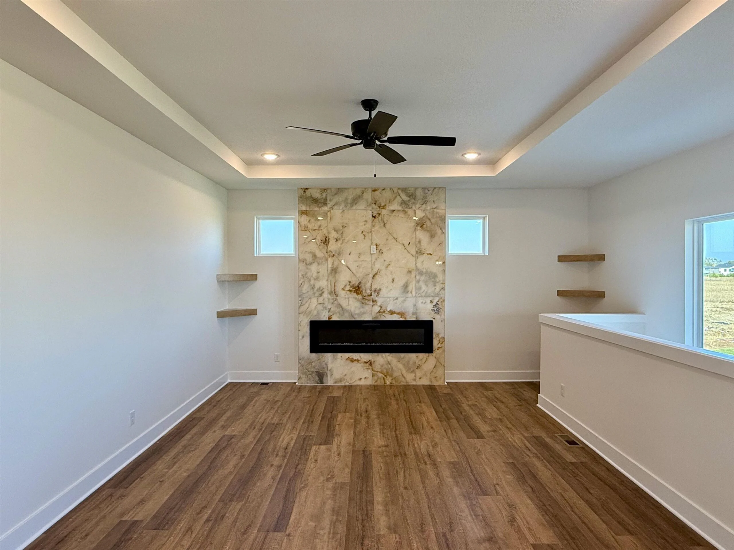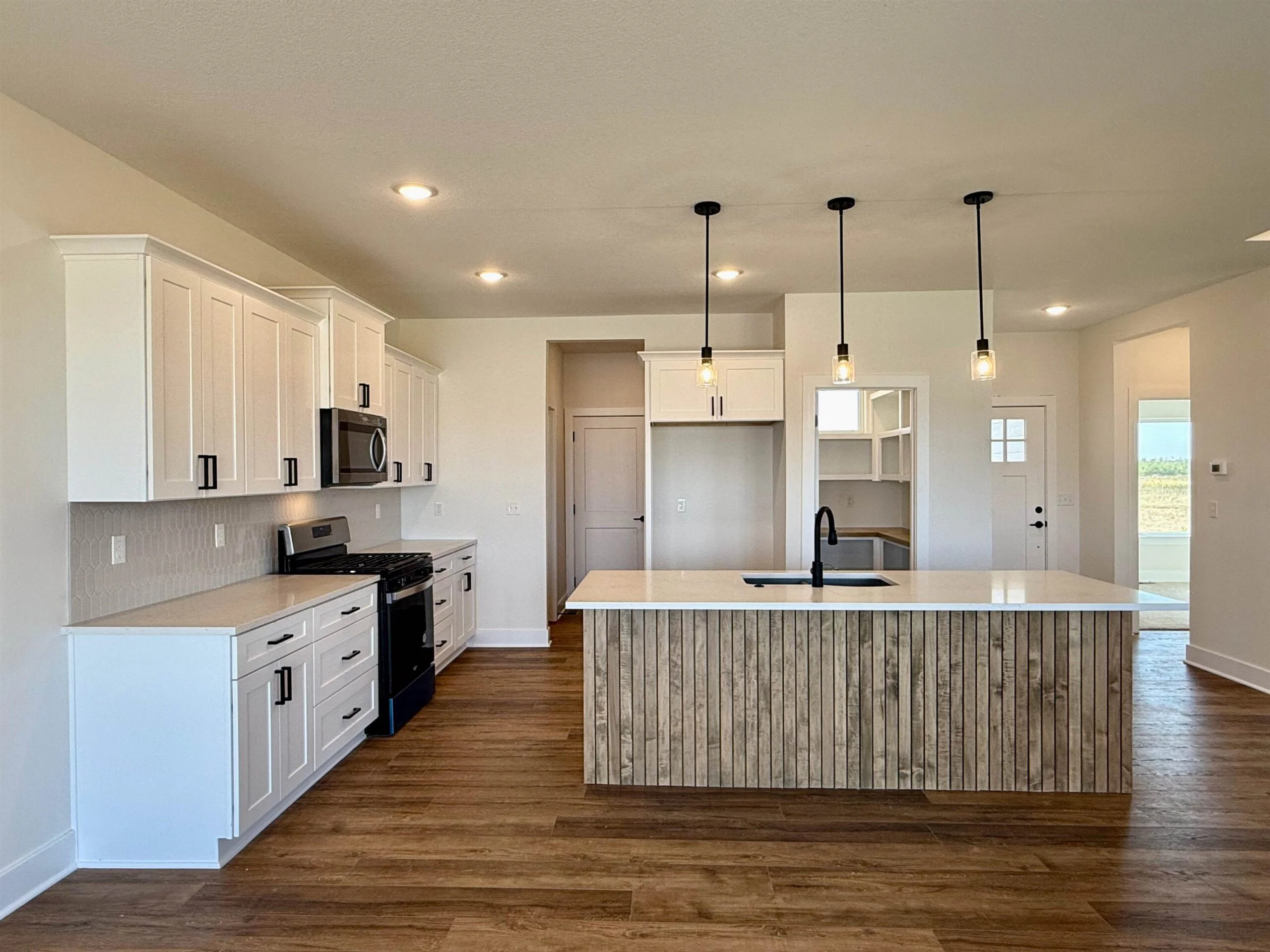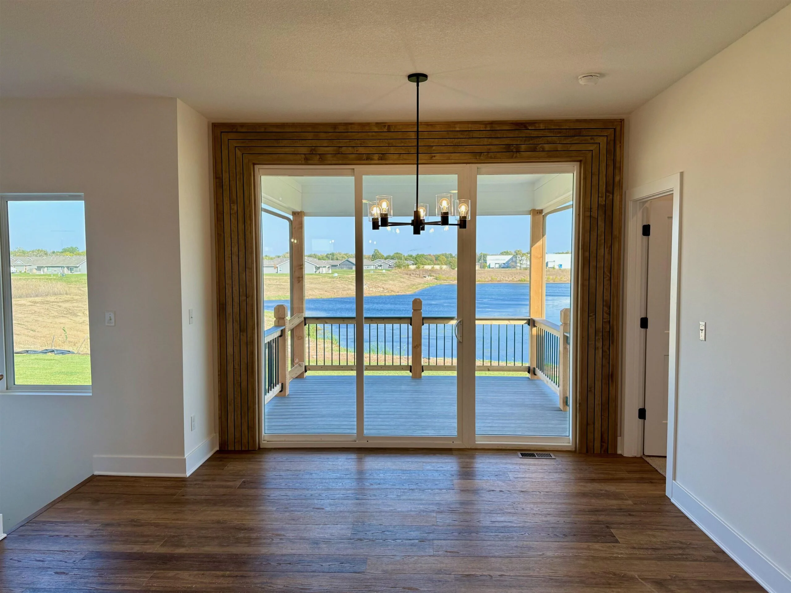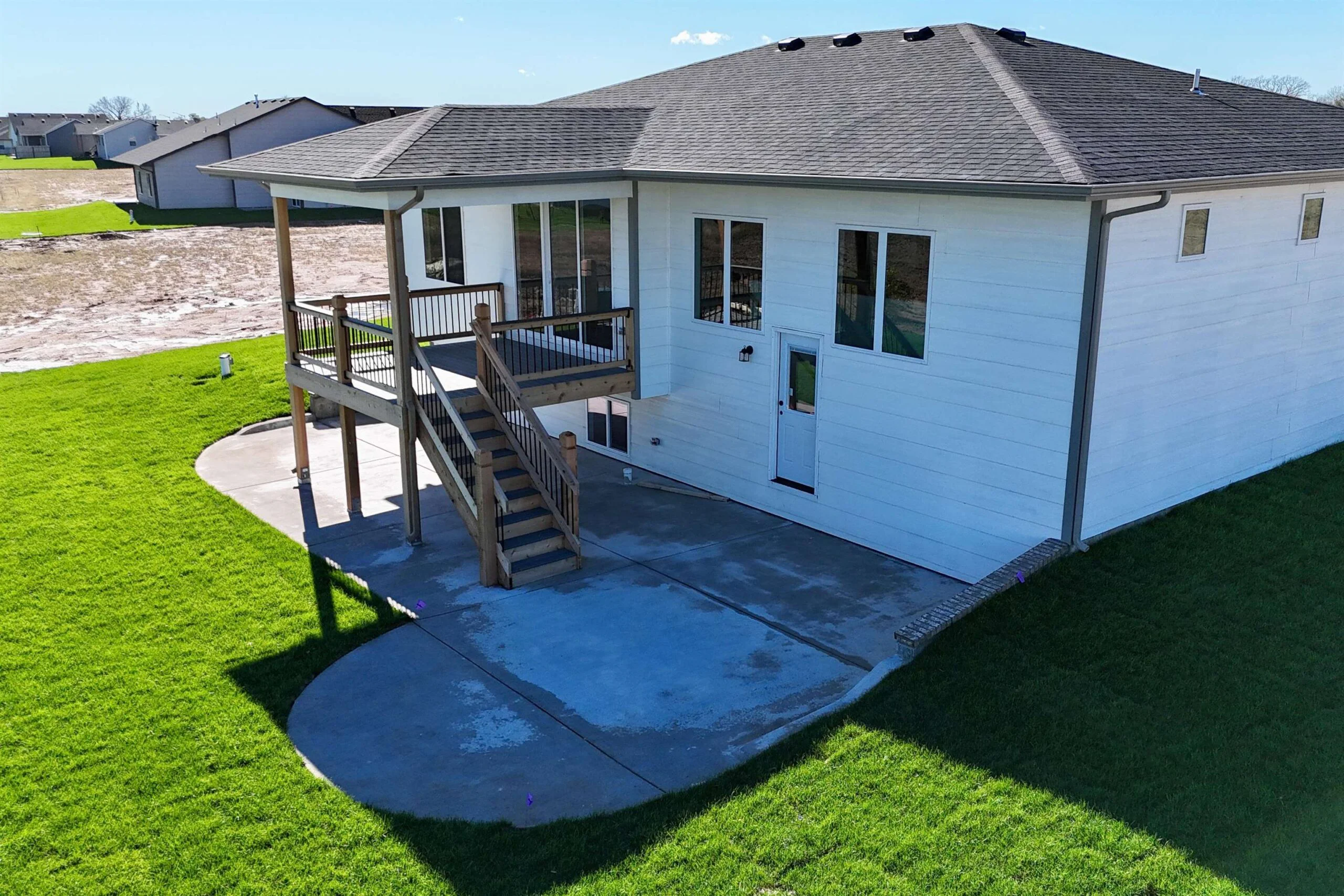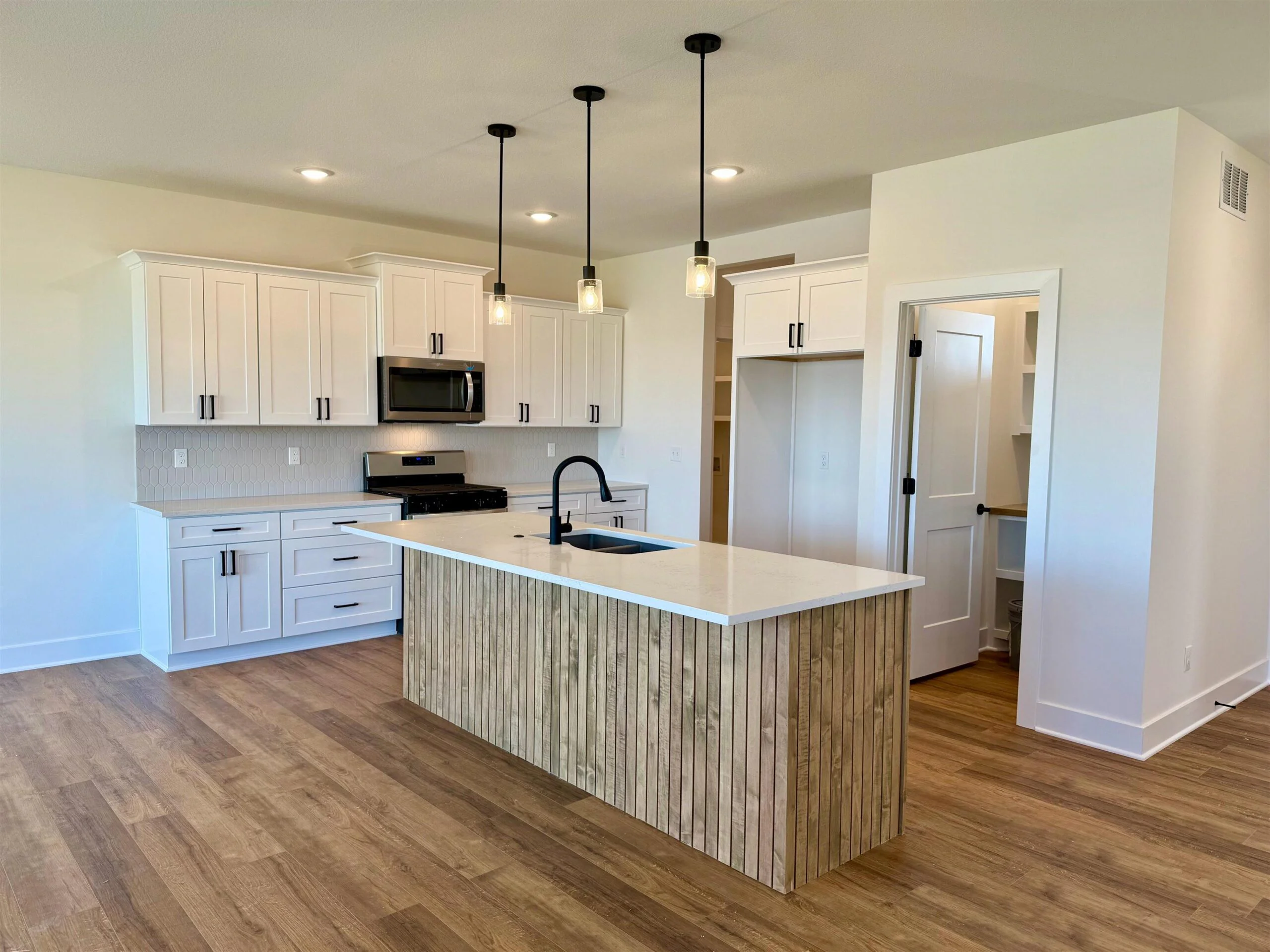 Back by popular demand, the Baby Bella Plan by RJ Castle Custom Homes, nestled in a peaceful cul-de-sac on a picturesque lake lot. This stunning residence boasts four spacious bedrooms and three beautifully appointed bathrooms, making it the perfect family haven. The heart of the home features a cozy living room with a striking marble tile fireplace, ideal for gatherings or quiet evenings. The rear-facing kitchen, complete with a walk-in pantry, seamlessly blends functionality and style, catering to both culinary enthusiasts and everyday living. Step outside onto the covered deck, where you can relax and take in the serene views, with convenient steps leading down to a charming ground-level patio. The luxurious master suite is a true retreat, featuring a full tile shower for an indulgent experience. Plus, the fully finished lower level with walk-up wet bar offers endless possibilities for entertainment and relaxation. Experience lakeside living at its finest in this remarkable new home here in beautiful Watermarke! Some information may be estimated, and is not guaranteed, please verify schools with USD262.