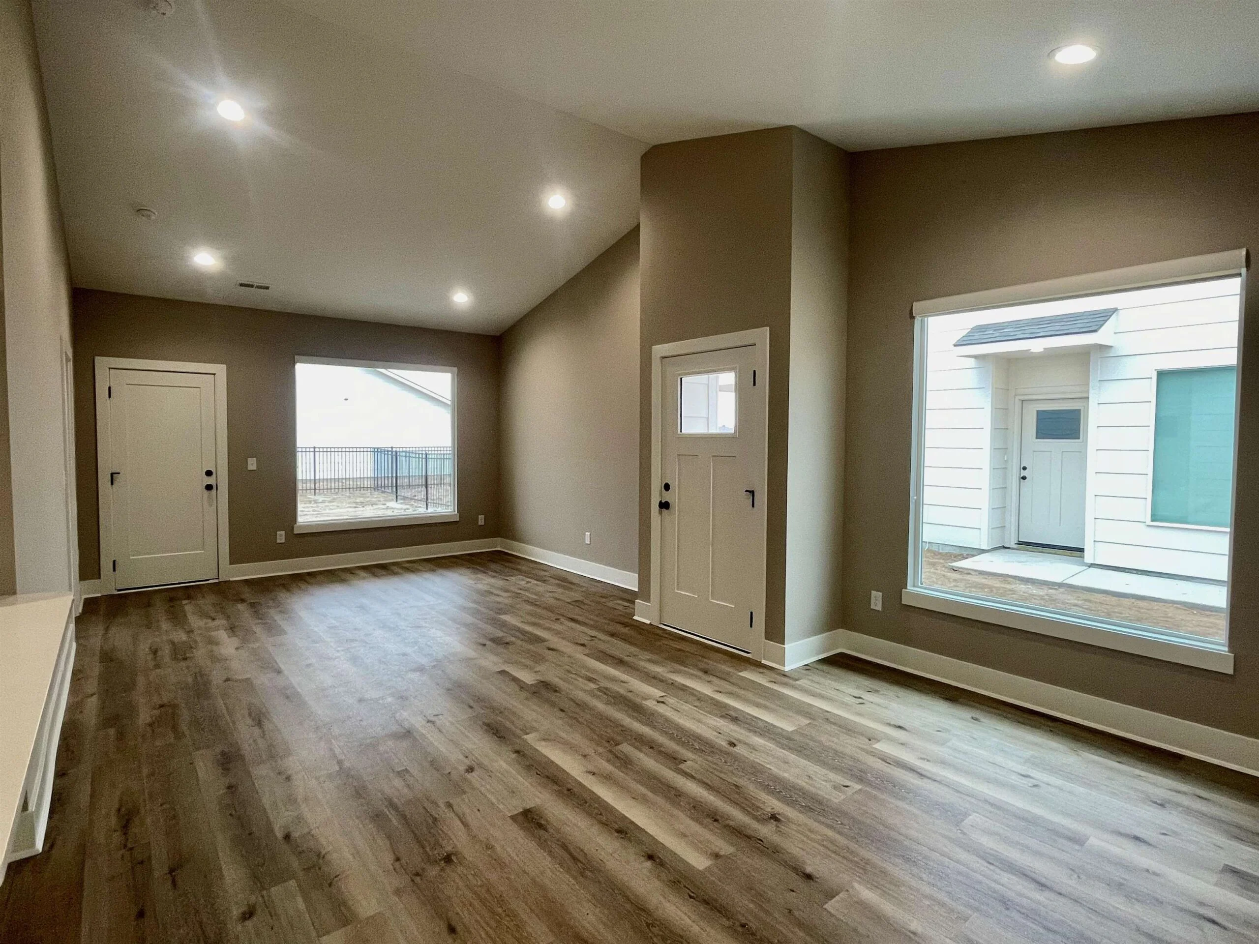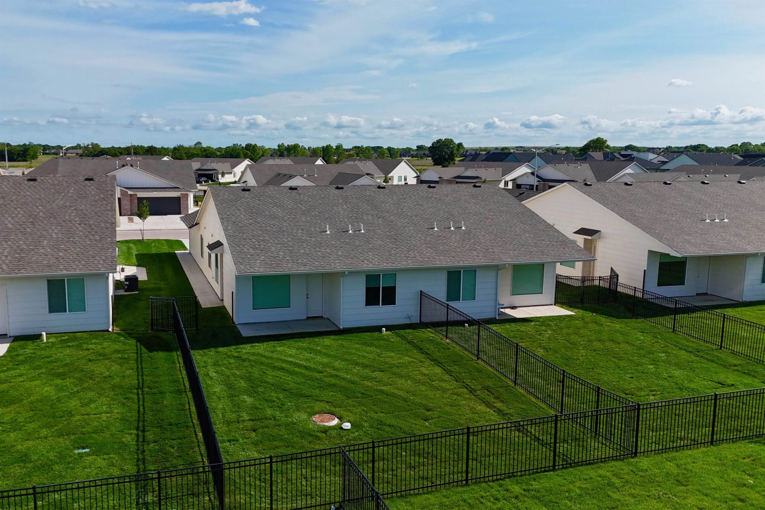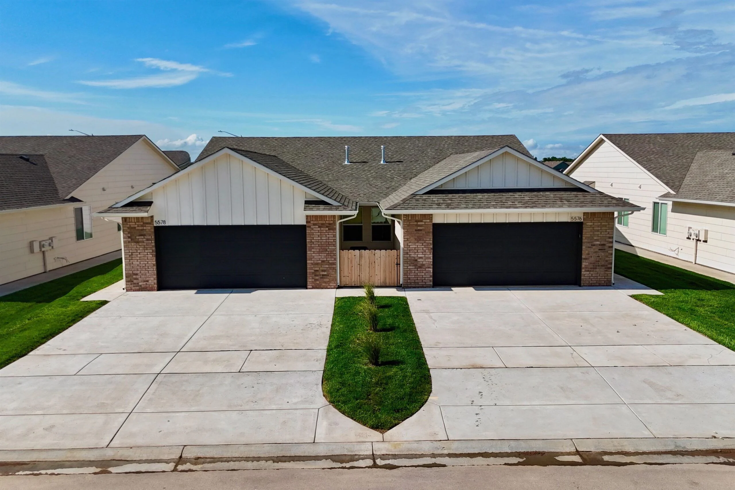 This newly built, executive twin home located in the Valley Center School District is conveniently located near shopping, dining, entertainment opportunities and is move in ready and available now! Featuring 2 zero-entry units each equipped with 4 bedrooms, 2 bathrooms, 2 car garage with opener, vaulted ceilings, and a walk-in closet. Each side features luxury vinyl flooring throughout, quarts countertops in the kitchen and baths, and access to a covered patio. Both yards are landscaped to include sod, sprinkler systems, and wrought iron fencing. All lawn maintenance and mowing is managed by the HOA. Community features include neighborhood ponds and playground. Ask the listing agent about other available units, or for details and pricing for purchasing one individual side. Some information may be estimated and is not guaranteed. Please verify schools with USD 262.