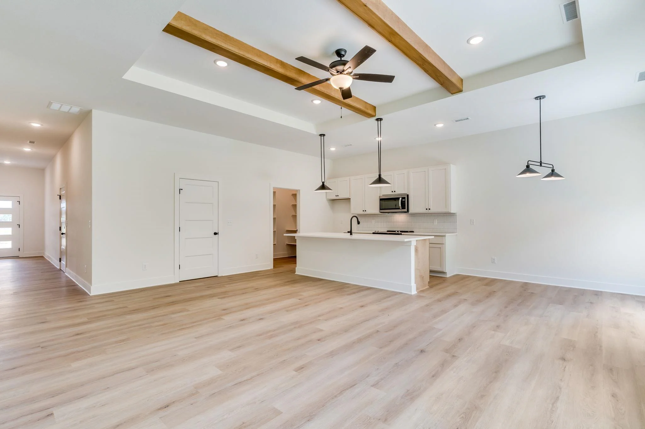 Welcome to this stunning, newly built home by Long Beach Homes! This 3-bedroom, 2-bath zero-entry home offers both style and convenience. The thoughtfully designed kitchen flows seamlessly into the spacious great room, creating the perfect space for entertaining or relaxing. The primary suite boasts an en suite bathroom and a generous walk-in closet for all your storage needs. Located in a vibrant neighborhood featuring a scenic lake and exciting amenities on the way, this home truly has it all. Amenities include a generously sized swimming pool, playground, pickle ball court, and basketball court. Call and schedule your tour today and discover your next dream home!