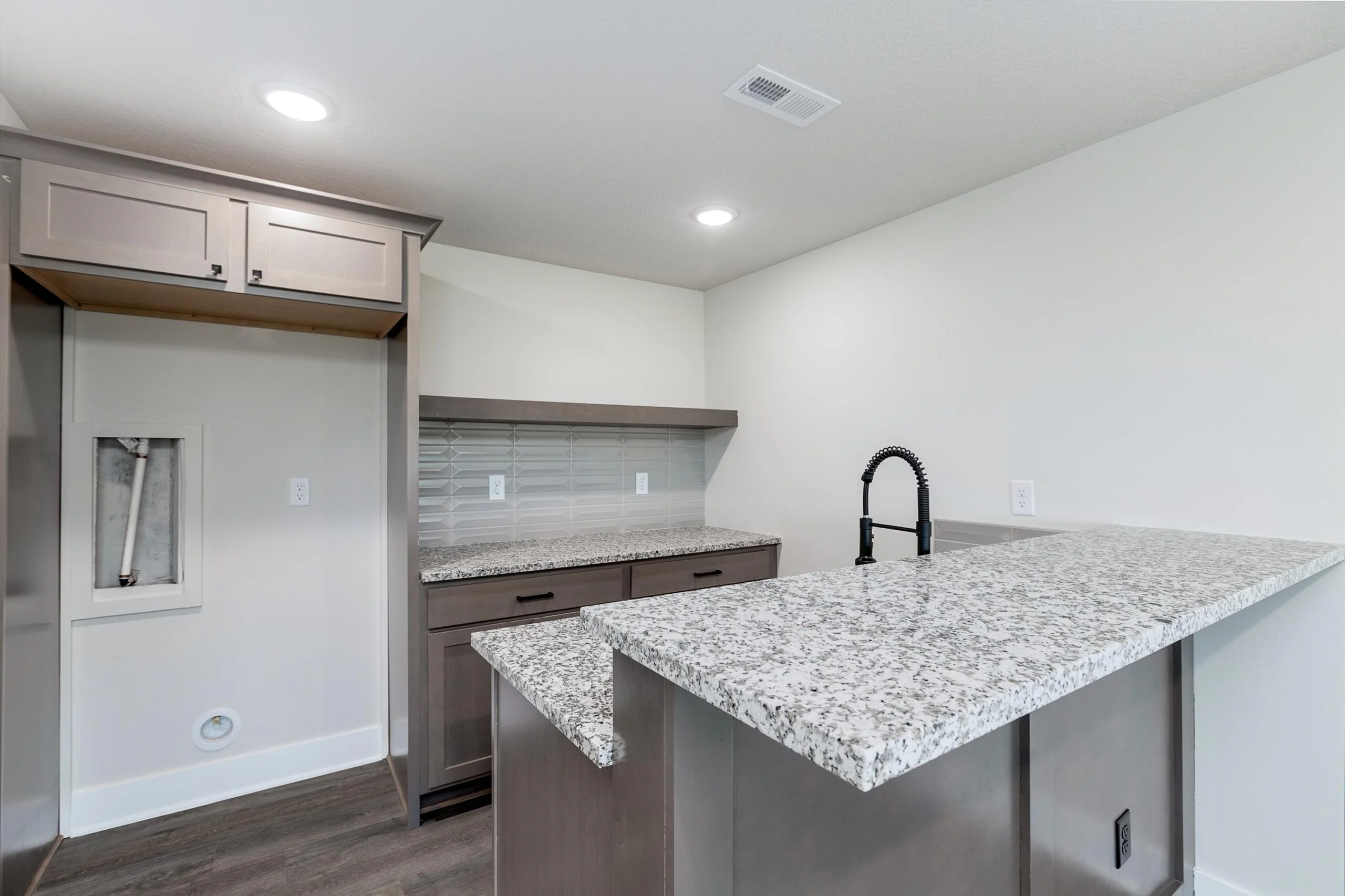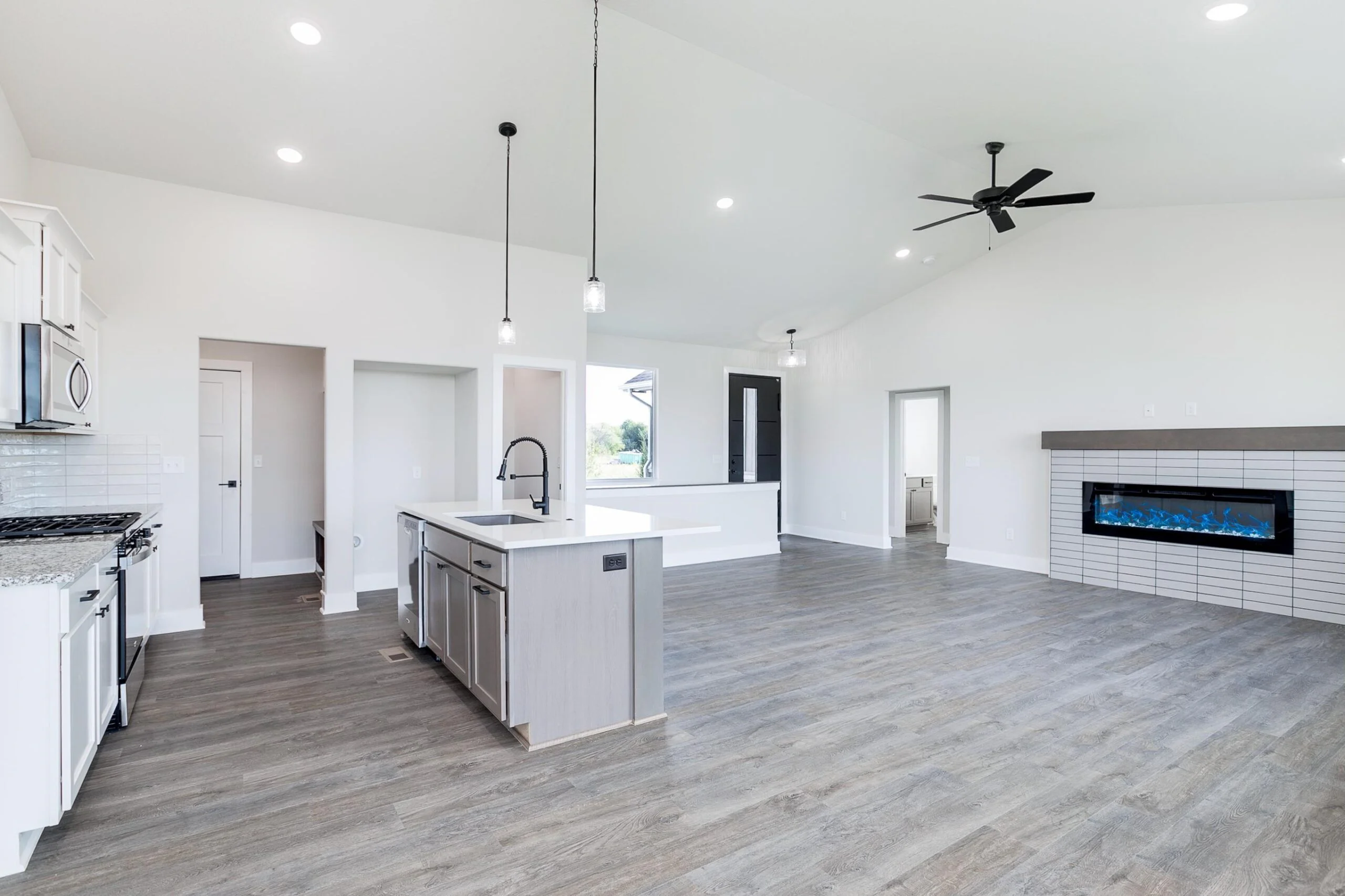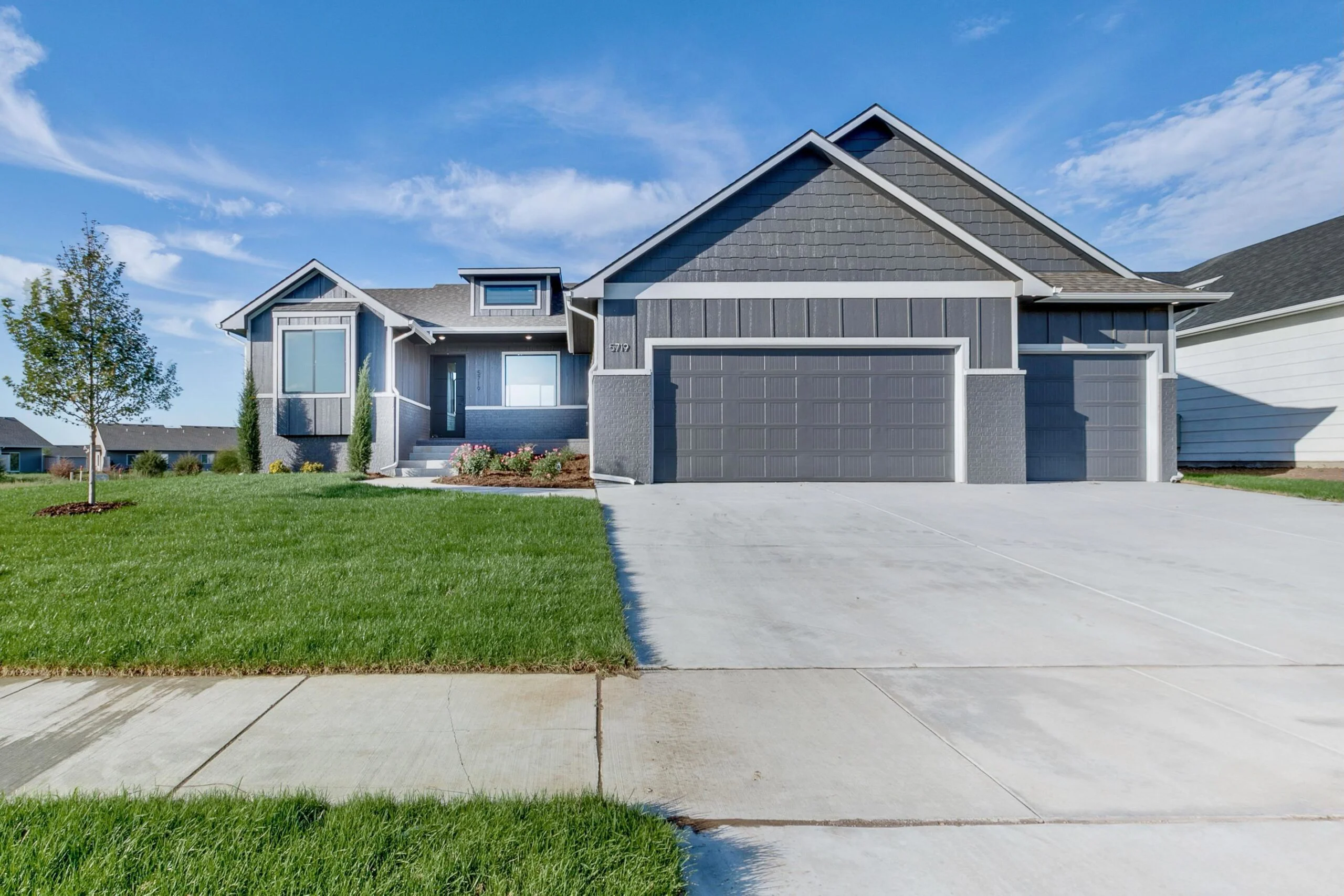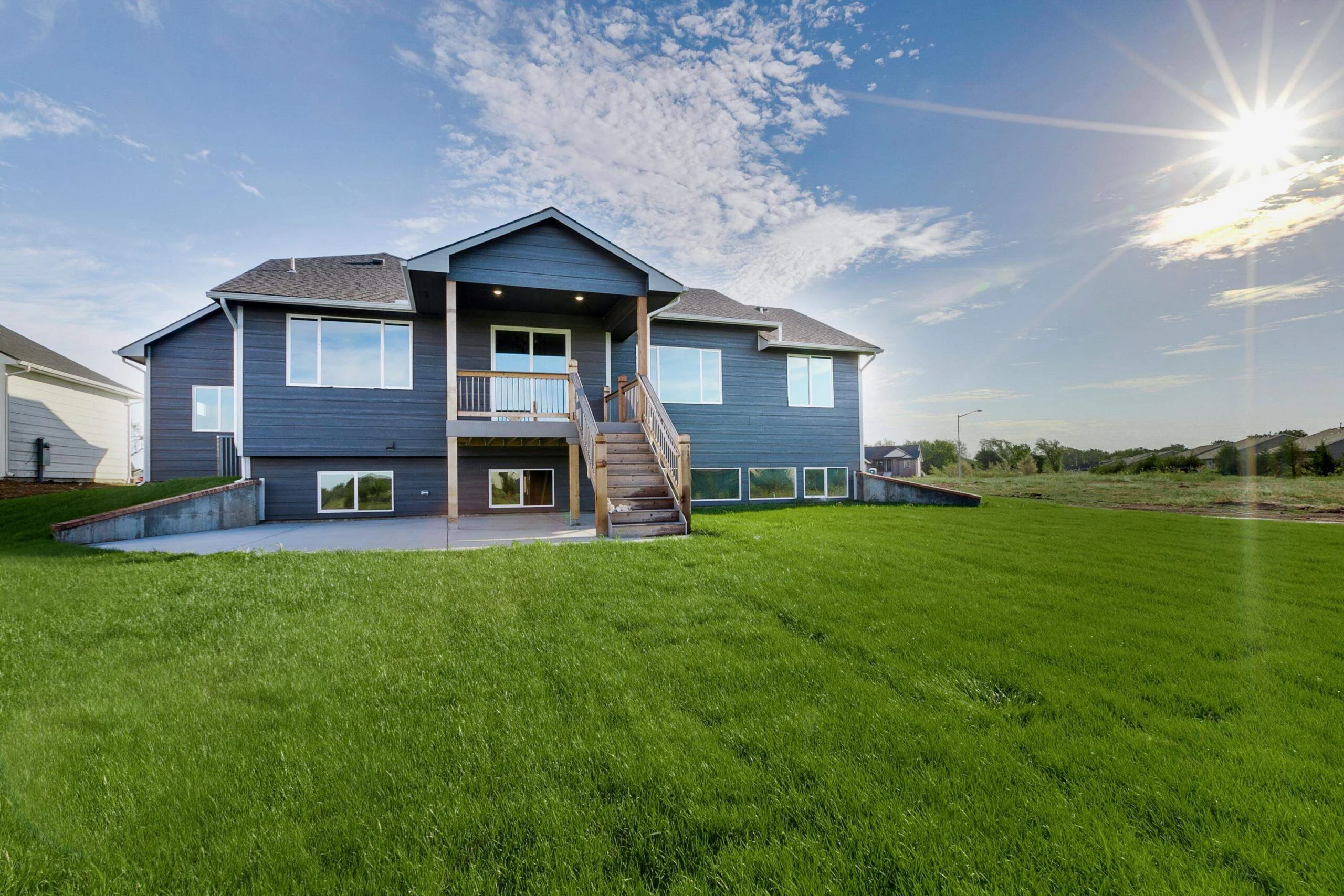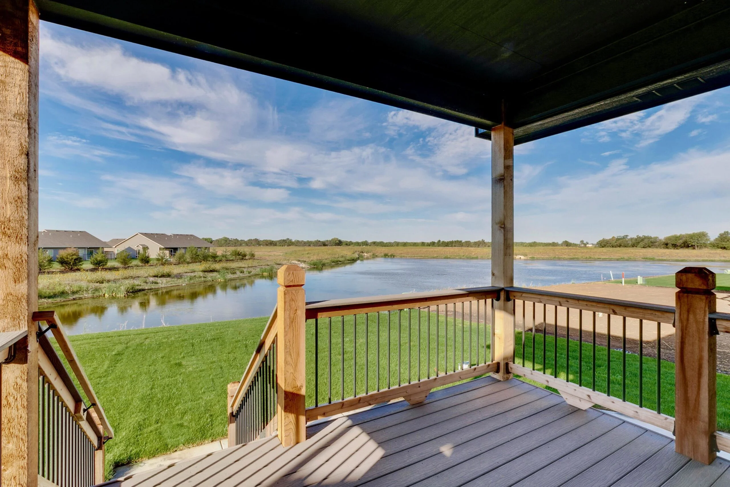 Welcome to The Delaware Plan by Relph Construction, a stunning home nestled on a serene lake lot, just a short stroll from the neighborhood pool, playground, and basketball court. This beautifully designed home boasts a spacious living room with vaulted ceilings, LVP flooring, an electric fireplace, and large windows that fill the space with natural light. The well-appointed kitchen features a gas range, hard surface countertops, and a generous walk-in pantry, perfect for the chef in the family. The adjoining dining area opens to a covered composite deck, with steps down to a ground-level patio and fenced backyard, creating an ideal space for outdoor entertaining. The luxurious master suite offers a private retreat with a large bedroom, a spa style bath with tile shower, and a walk-in closet conveniently connected to the laundry room. The main floor is complete with 2 additional bedrooms accompanied by a full bath. The fully finished lower level is an entertainer's dream, complete with an expansive family room featuring a wet bar, two large bedrooms, a full bath, and ample storage space. Situated in the city of Wichita within the Valley Center School District, this home provides the perfect blend of modern living and exceptional convenience. Don’t miss the opportunity to make this stunning property yours! Some information may be estimated and is not guranteed. Please verify schools with USD 262.