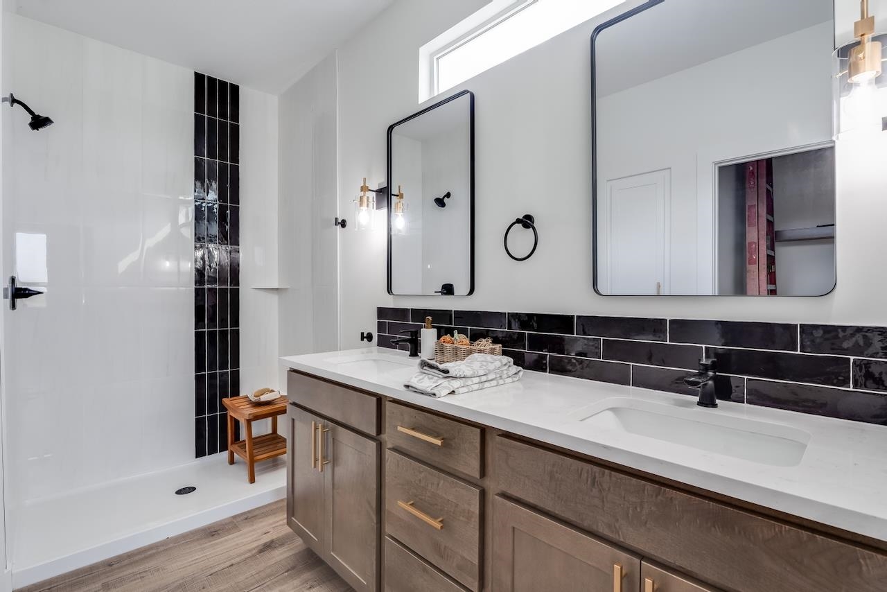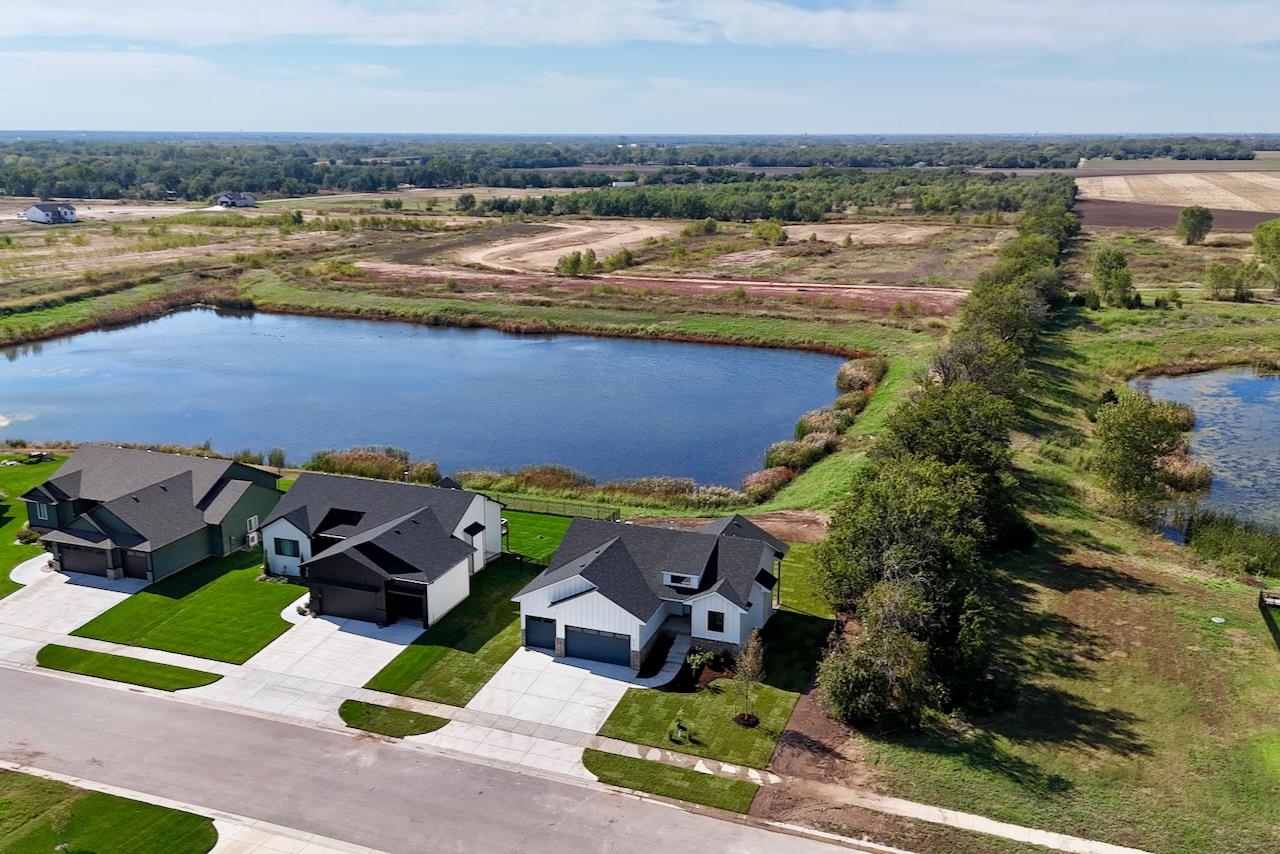 - Description: Discover the Anne Marie Plan by Homes-R-Us—where timeless architecture meets modern comfort in a truly one-of-a-kind lakefront setting. Nestled on a unique lot bordered by HOA green space and a natural land bridge between two serene lakes, this home is surrounded by mature trees offering privacy and picturesque views. Enjoy vaulted ceilings, LVP flooring, and a cozy electric fireplace in the spacious living room. The gourmet kitchen boasts quartz countertops, abundant cabinetry, and a walk-in pantry. A generous dining area showcases large picture windows framing lake and wooded views. The luxurious primary suite features a dual vanity, tile shower, and walk-in closet with seasonal hanging. Two additional bedrooms and a full hall bath complete the main floor. The mid-level walk-out leads to a sprawling covered patio—your private retreat among the trees. The basement is ready for your vision, with a proposed layout including a family room, wet bar, 2 bedrooms, and full bath. Choose to finish it with the builder or create instant equity over time. Just a short stroll to the neighborhood pool, playground, and basketball court—this home has it all! Some information may be estimated and is not guaranteed. Please verify schools with USD 262.