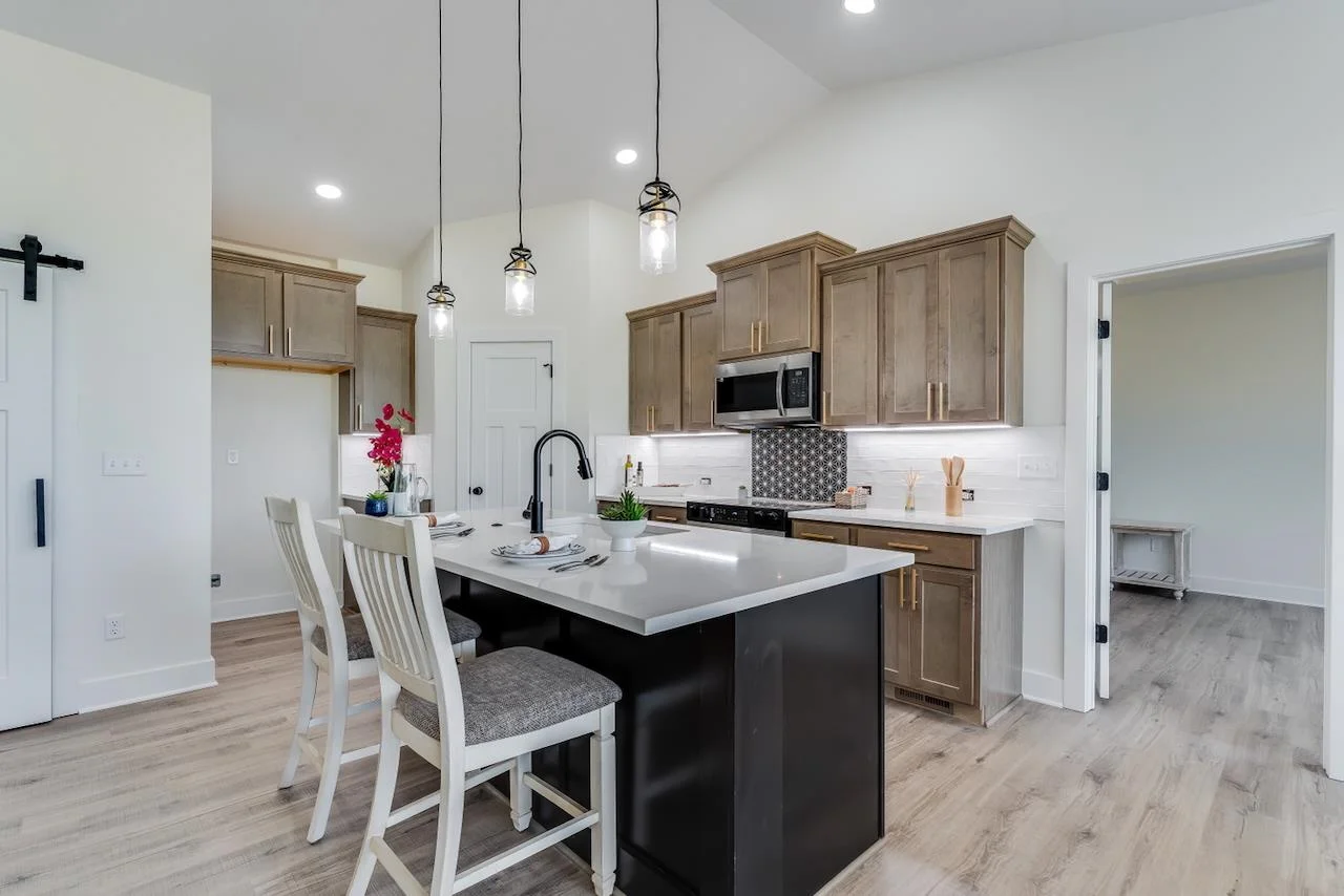Discover the Anne Marie Plan by Homes-R-Us—where timeless architecture meets modern comfort in a truly one-of-a-kind lakefront setting. Nestled on a unique lot bordered by HOA green space and a natural land bridge between two serene lakes, this home is surrounded by mature trees offering privacy and picturesque views. Enjoy vaulted ceilings, LVP flooring, and a cozy electric fireplace in the spacious living room. The gourmet kitchen boasts quartz countertops, abundant cabinetry, and a walk-in pantry. A generous dining area showcases large picture windows framing lake and wooded views. The luxurious primary suite features a dual vanity, tile shower, and walk-in closet with seasonal hanging. Two additional bedrooms and a full hall bath complete the main floor. The mid-level walk-out leads to a sprawling covered patio—your private retreat among the trees. The basement is ready for your vision, with a proposed layout including a family room, wet bar, 2 bedrooms, and full bath. Choose to finish it with the builder or create instant equity over time. Just a short stroll to the neighborhood pool, playground, and basketball court—this home has it all! Some information may be estimated and is not guaranteed. Please verify schools with USD 262.