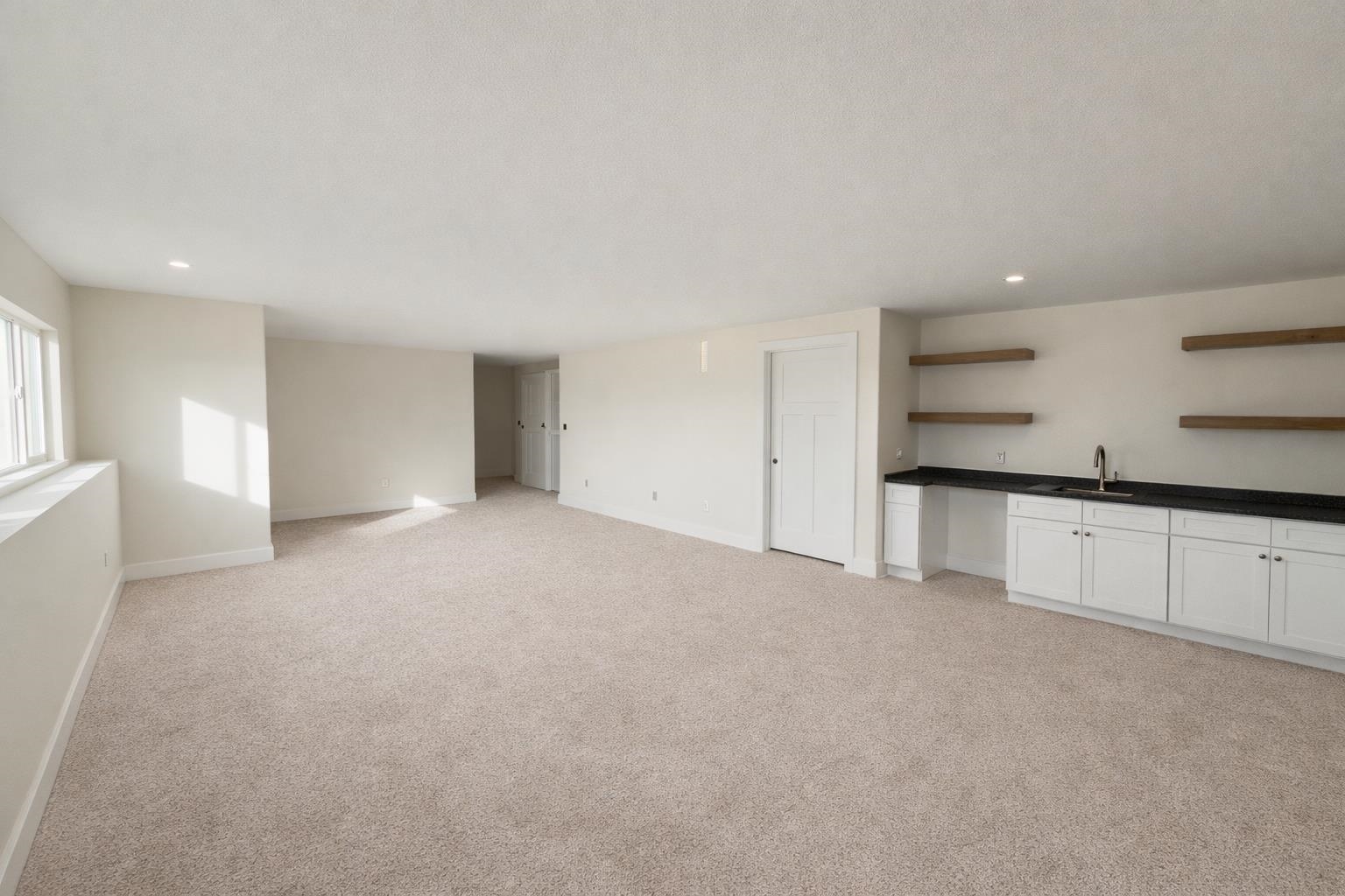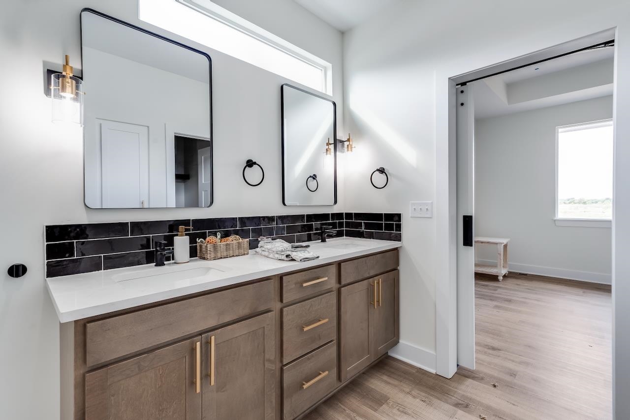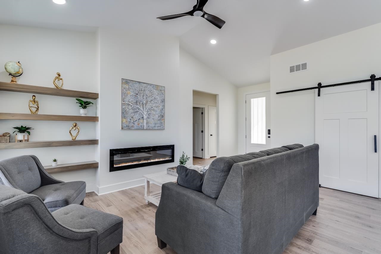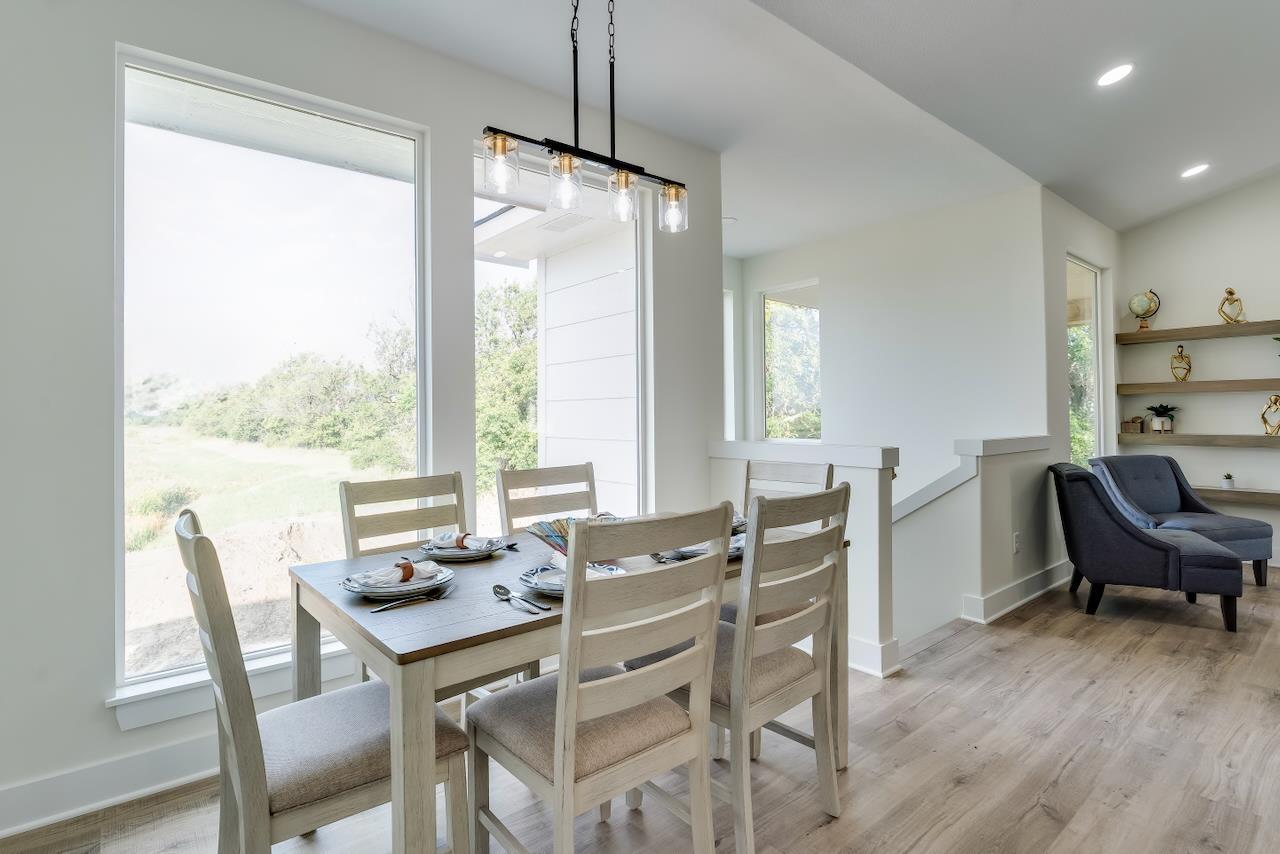 Welcome to the Anne-Marie Plan by Homes-R-Us—now available in the sought-after Watermarke community! Perfectly positioned on a rare lake lot with HOA green space and mature trees along one side, this home offers exceptional privacy while being just a short walk from the neighborhood pool and playground. The timeless front elevation and beautifully manicured landscaping create an inviting first impression. Inside, a spacious living room greets you with soaring vaulted ceilings, expansive picture windows framing the lake, and a stylish fireplace flanked by built-in shelving. The well-appointed kitchen features a large island, quartz countertops, abundant cabinetry, and a generous walk-in pantry with custom storage—an ideal setup for everyday living and entertaining. The adjoining dining area is framed with a large picture window, offering serene lake views at every meal. Retreat to the luxurious primary suite, complete with LVP flooring, a tray ceiling, dual-vanity bath with a tile shower, and a walk-in closet complete with seasonal hanging for maximum storage. The main level also includes a convenient mud/laundry room off the garage entrance with a built-in bench and cubbies, plus two additional bedrooms served by a full hall bath. Thoughtfully placed stairs at the back of the home lead to a spacious mid-level walkout and a large covered patio—perfectly positioned to enjoy the peaceful backdrop of mature trees and stocked fishing lake. The fully finished lower level adds exceptional living space, featuring a huge family room with a walk-up wet bar, two sizable bedrooms each with walk-in closets, a full bath, and ample storage. This incredible lake-lot home blends luxury, privacy, and convenience—available now in Watermarke! Some information may be estimated and is not guaranteed. Please verify schools with USD 262.