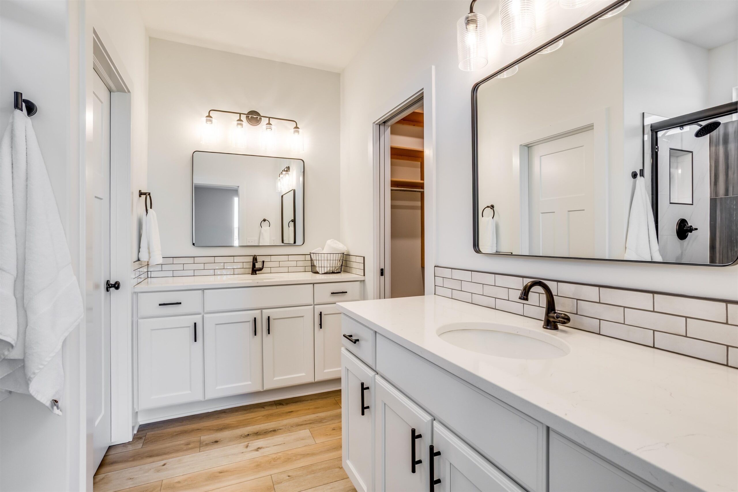 - Description: Introducing the stunning Davis II Plan by M&M Custom Construction, where timeless architecture meets high-quality craftsmanship. This exquisite home features 5 spacious bedrooms and 3 beautifully appointed bathrooms, offering the perfect blend of comfort and style. Enjoy an abundance of natural light with large picture windows that grace the back of the home, seamlessly connecting indoor elegance with outdoor beauty. The well-equipped kitchen boasts a generous walk-in pantry, ideal for culinary enthusiasts and family gatherings alike. Retreat to the luxurious master suite, complete with a private bath and expansive walk-in closet for your convenience. Step outside to a covered deck that leads down to a large ground-level patio, perfect for entertaining or relaxing with family. The fully finished, view-out lower level includes a generously sized family room, two additional spacious bedrooms, and another full bathroom, making it the ideal space for guests or recreation. Nestled on a desirable cul-de-sac lot within a coveted Wichita address and the Valley Center School District, this home is just a short walk from fantastic community amenities including a neighborhood pool, playground, basketball court, and several stocked fishing lakes. Experience a lifestyle of luxury and convenience in the Davis II Plan—your dream home awaits! Some information may be estimated and is not guaranteed. This home is currently under construction and pricing is subject to change without notice. Please verify schools with USD 262.