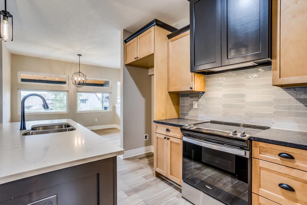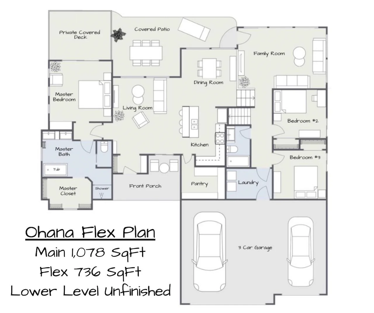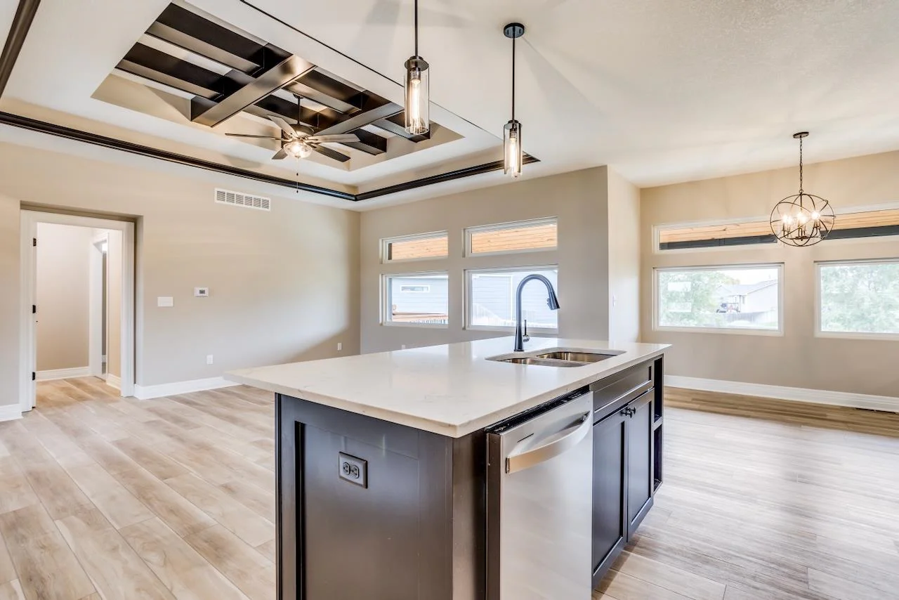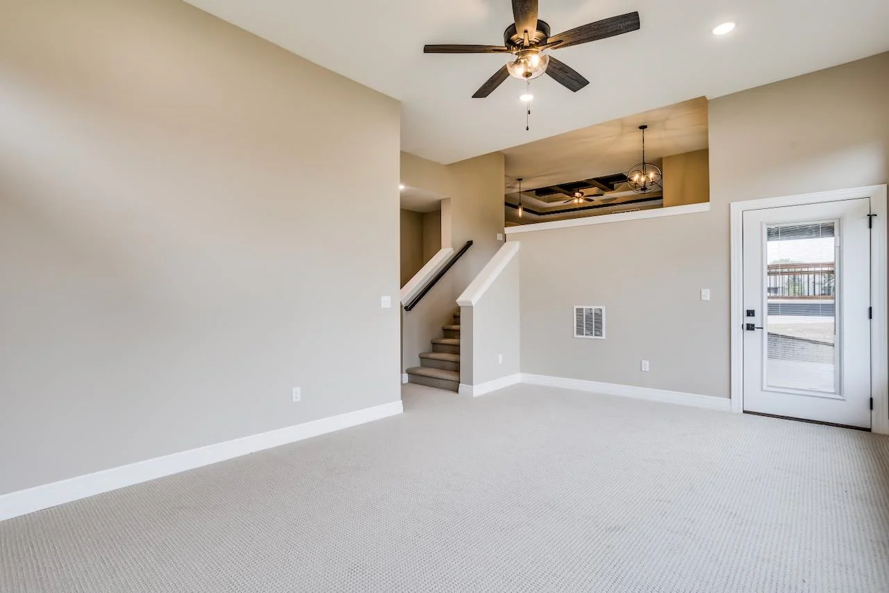 Welcome to this newly finished Ohana Flex plan, nestled on a quiet cul-de-sac lot just a short walk away from the community pool, playground, basketball court, and serene stocked fishing lakes. This stunning home boasts mid-century modern styling, blending timeless design with modern functionality. The spacious living room is bathed in natural light, featuring dramatic beamed ceilings that add an airy, open feel. The gourmet kitchen, complete with a Butler's pantry and separate dining area, is perfect for both everyday living and entertaining. The luxurious master suite is a true retreat, offering a private deck, a spa-like bath with a deep soaker tub and tile shower, and an expansive walk-in closet. On the flex level, you’ll find an expansive family room that flows seamlessly onto the covered patio, perfect for relaxation or gatherings. Two additional bedrooms, a full bath, and a convenient laundry room complete this level. With zero-step entry from the garage, the home is not only beautiful but practical for all stages of life. The unfinished lower level offers an exciting opportunity to personalize your space and build valuable sweat equity. Whether you’re growing into the home or adding your own custom touches, this home provides the perfect foundation for the next chapter of your life. If you have a home to sell, the Seller may be able to take your current home as a trade! Ask the listing agent for more information! Some information may be estimated and is not guaranteed. Please verify schools with USD 262.