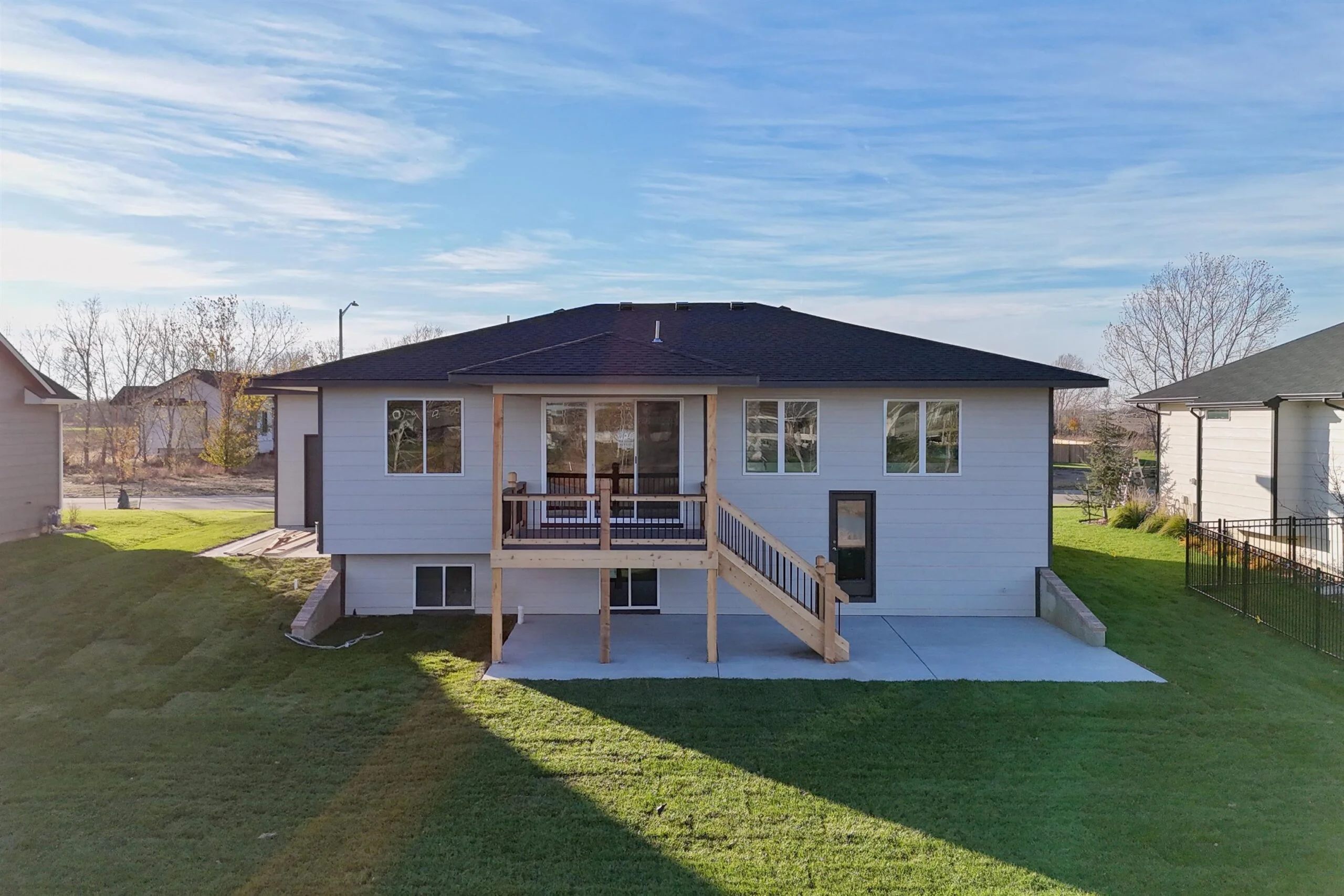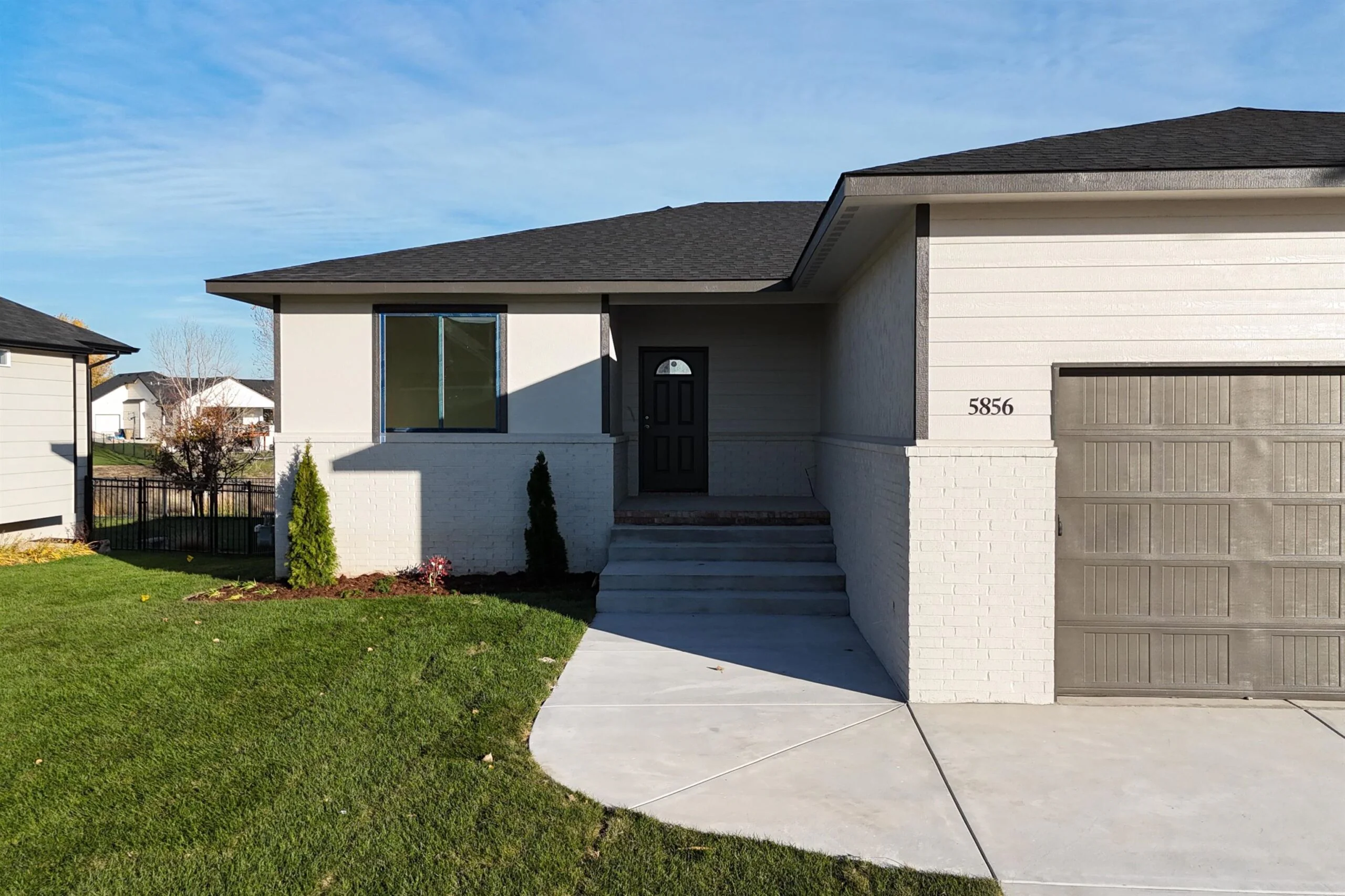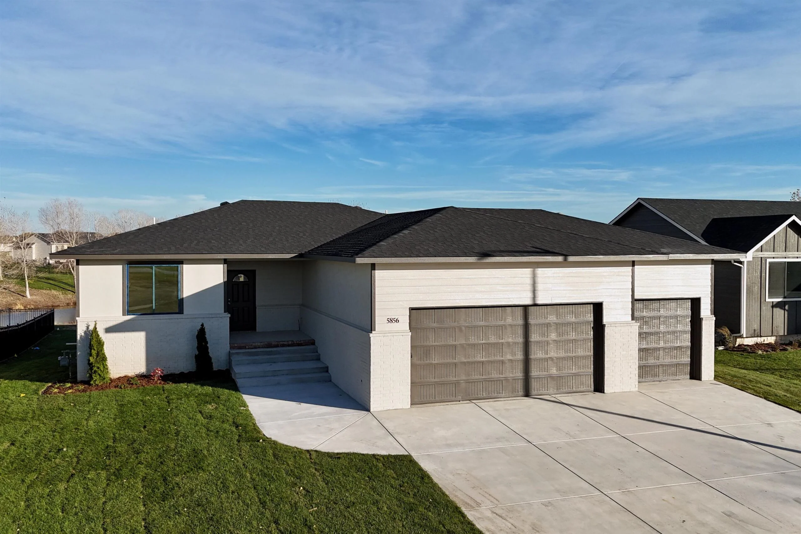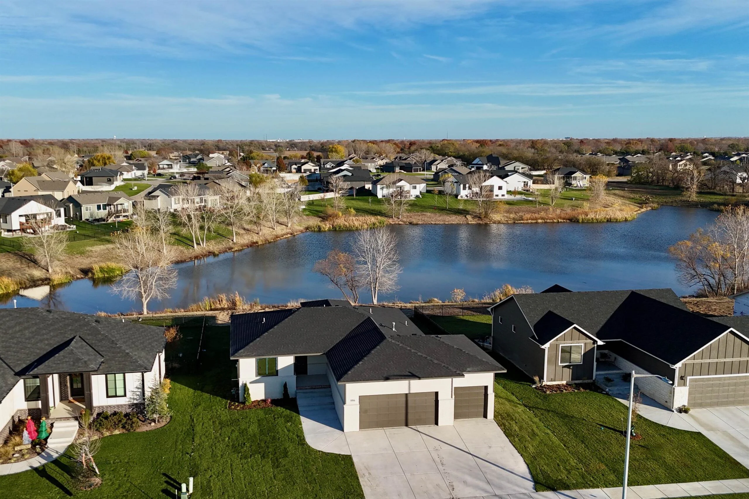 Back by popular demand, this Baby Bella Plan by RJ Castle Custom Homes offers an exceptional opportunity to live on a gorgeous lakefront lot in one of Wichita's premier neighborhoods—Watermarke. This stunning 4-bedroom, 3-bathroom home is designed for both comfort and style, featuring a spacious master suite with a private bath, full tile shower, and an expansive walk-in closet. The heart of the home is the open, light-filled living area, with a rear-facing kitchen complete with sleek quartz countertops, a walk-in pantry, and a seamless flow into the living room for easy entertaining. Step outside to enjoy a large covered deck that leads to a spacious ground-level patio, perfect for outdoor gatherings and enjoying the serene lake views. The fully finished lower level offers even more space to spread out, with a generous family room, a walk-up wet bar, 2 additional bedrooms, and a full bath. For added convenience, the 3-car garage includes an extra rear-facing garage door, offering easy access to the backyard with a concrete slab for parking or additional storage. Don't miss your chance to own this beautiful home in the coveted Watermarke community—where luxury living meets lakeside tranquility! Finished interior pictures are of a finished version of this plan previously built in Watermarke (Exact finishes will vary). Some information may be estimated and is not guaranteed. Please verify schools with USD 262.