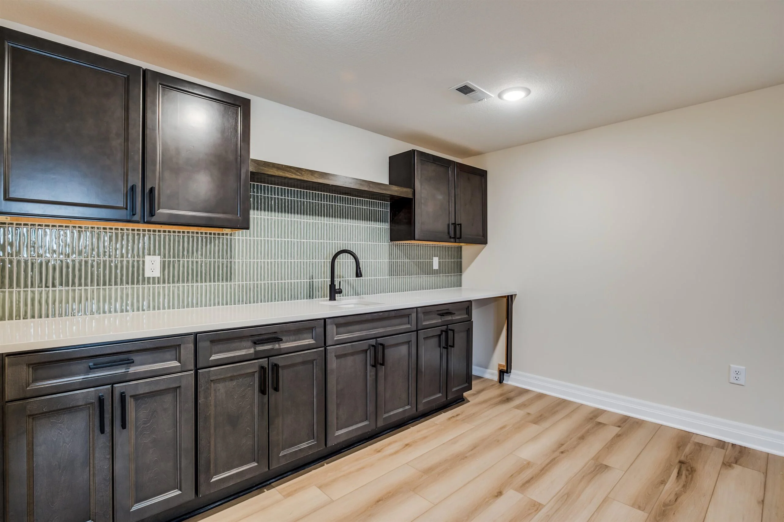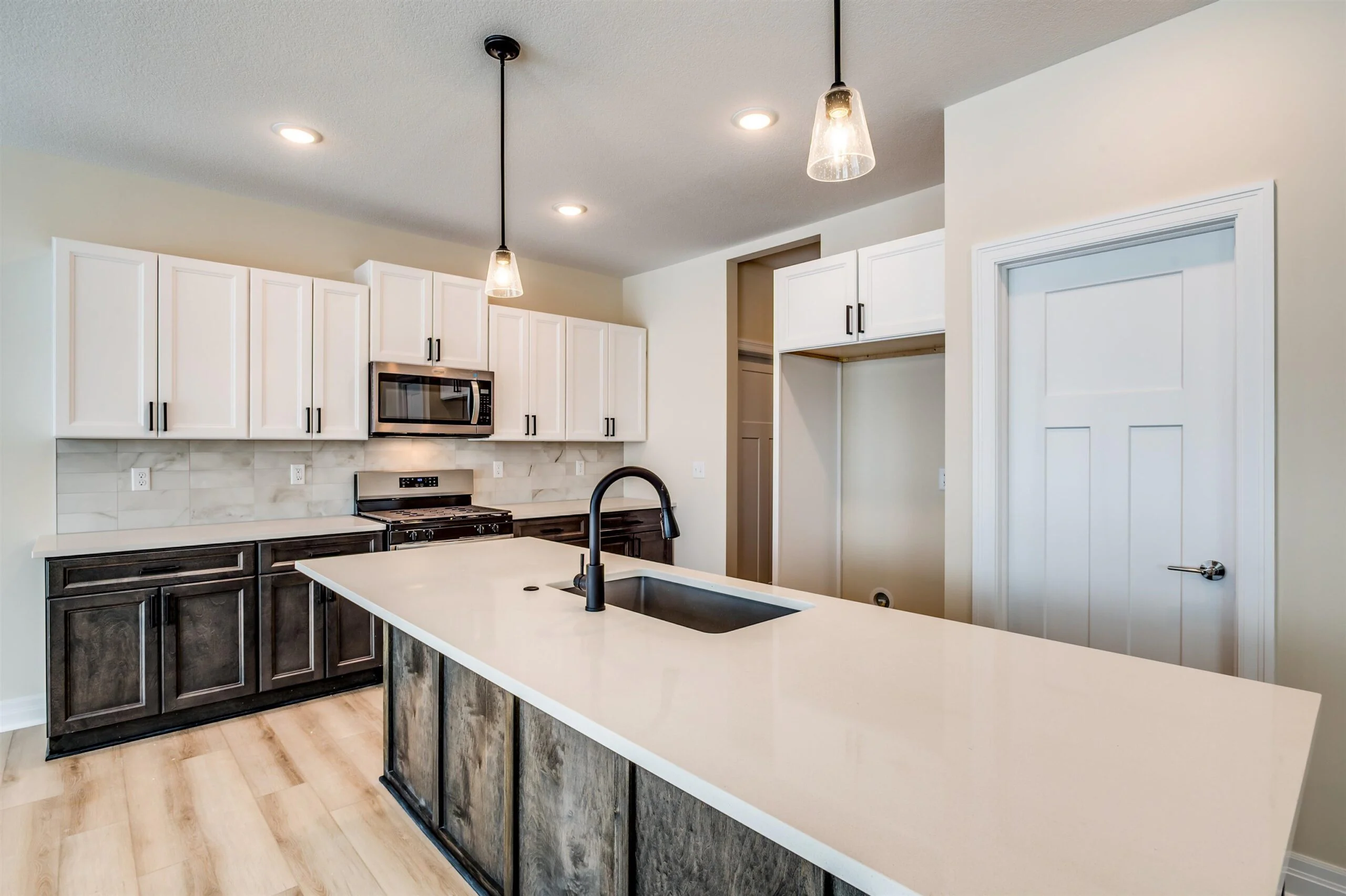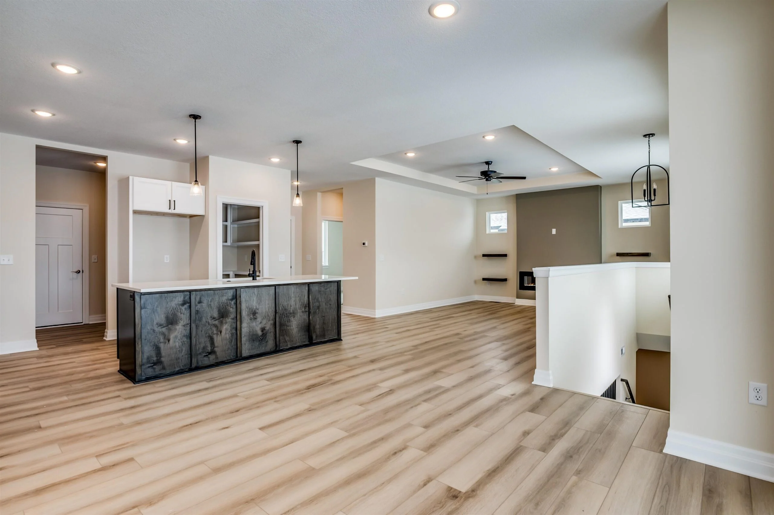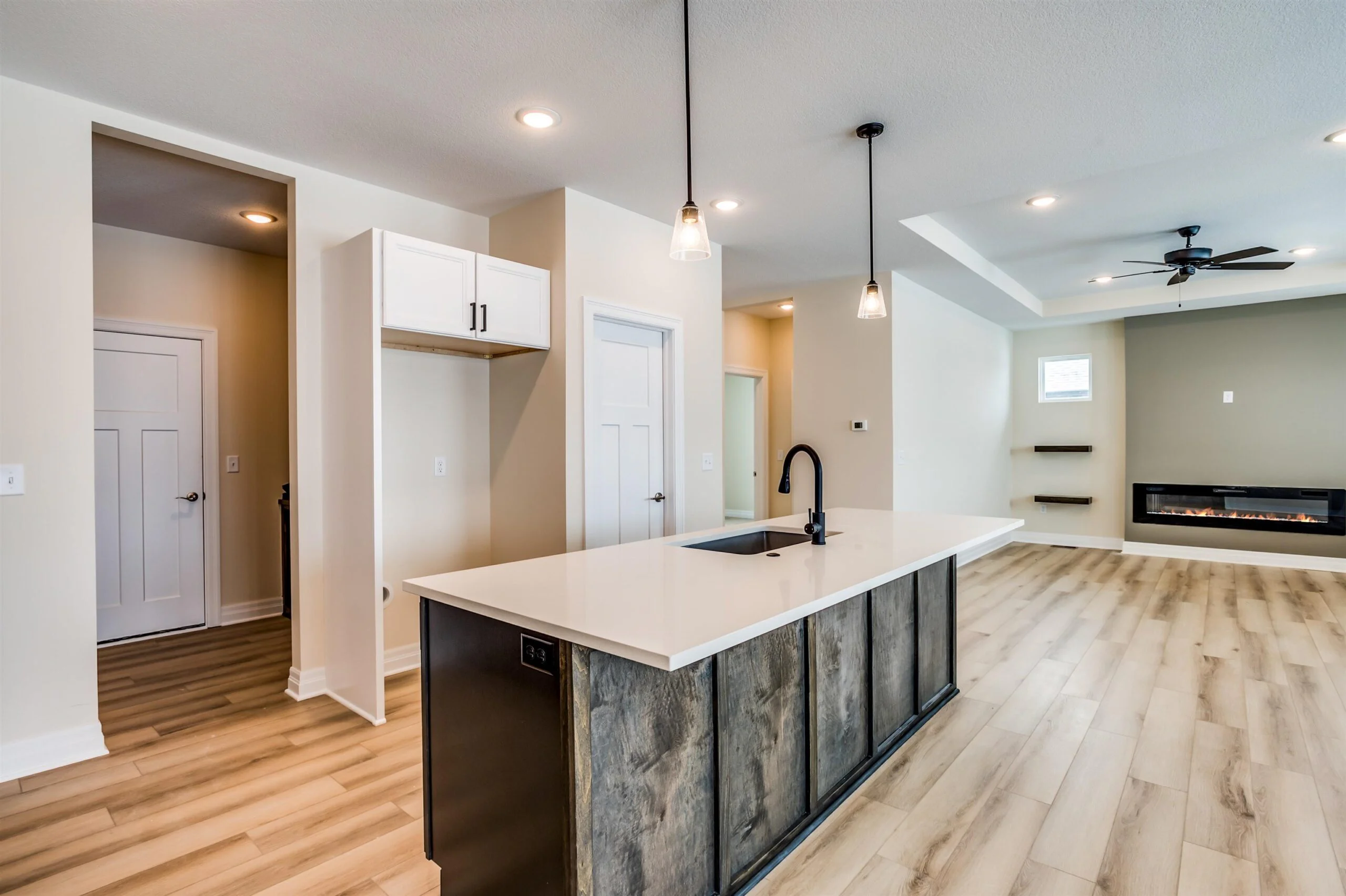 Back by popular demand, this Baby Bella Plan by RJ Castle Custom Homes offers an exceptional opportunity to live on a gorgeous lakefront lot in one of Wichita's premier neighborhoods—Watermarke. This stunning 4-bedroom, 3-bathroom home is designed for both comfort and style, featuring a spacious master suite with a private bath, full tile shower, and an expansive walk-in closet. The heart of the home is the open, light-filled living area, with a rear-facing kitchen complete with sleek quartz countertops, a walk-in pantry, and a seamless flow into the living room for easy entertaining. Step outside to enjoy a large covered deck that leads to a spacious ground-level patio, perfect for outdoor gatherings and enjoying the serene lake views. The fully finished lower level offers even more space to spread out, with a generous family room, a walk-up wet bar, 2 additional bedrooms, and a full bath. For added convenience, the 3-car garage includes an extra rear-facing garage door, offering easy access to the backyard with a concrete slab for parking or additional storage. Don't miss your chance to own this beautiful home in the coveted Watermarke community—where luxury living meets lakeside tranquility! Finished interior pictures are of a finished version of this plan previously built in Watermarke (Exact finishes will vary). Some information may be estimated and is not guaranteed. Please verify schools with USD 262.