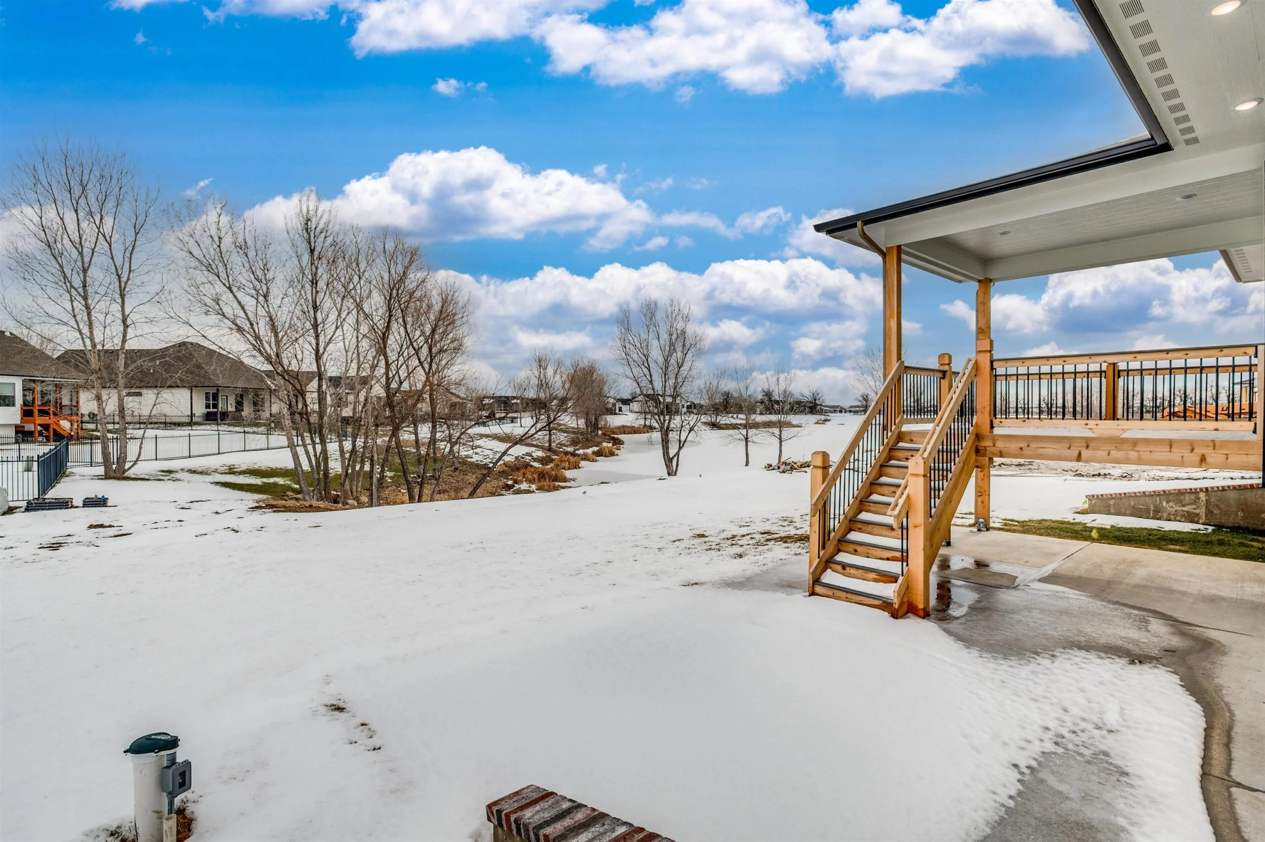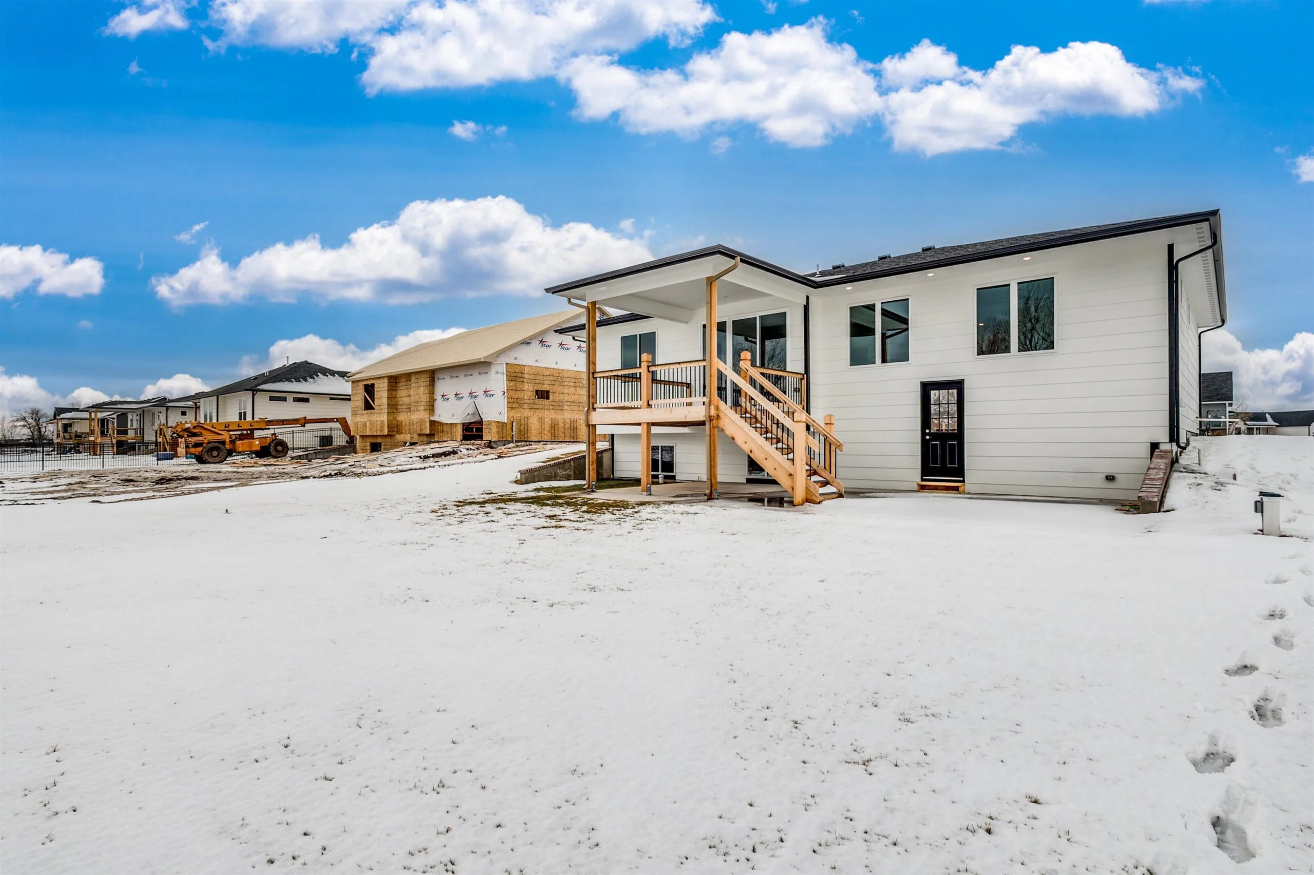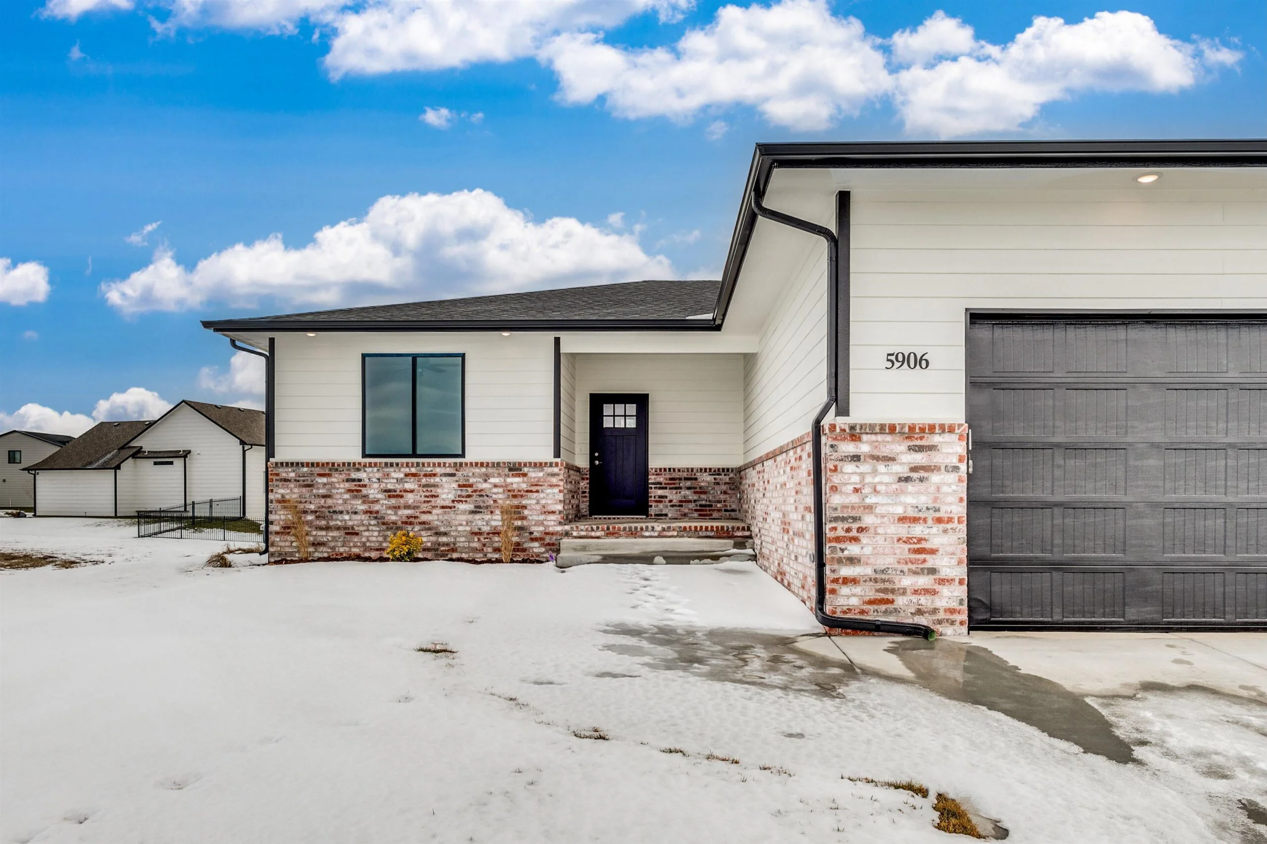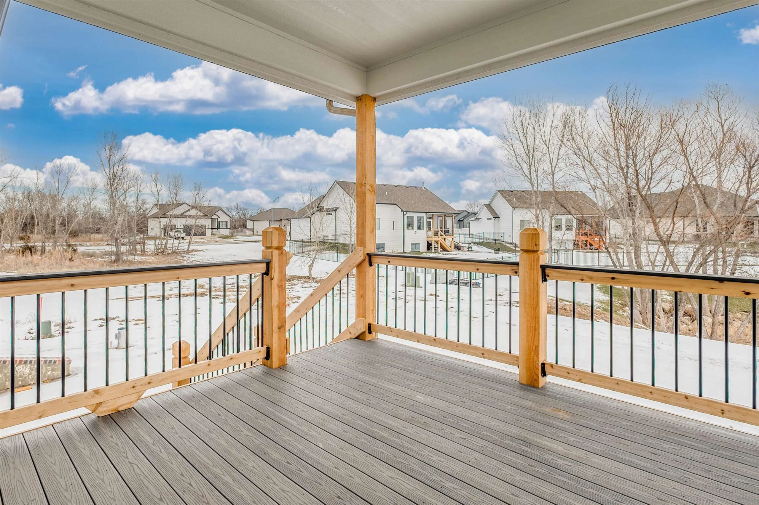 Back by popular demand, this Baby Bella Plan by RJ Castle Custom Homes offers an exceptional opportunity to live on a gorgeous lakefront lot in one of Wichita's premier neighborhoods—Watermarke. This stunning 4-bedroom, 3-bathroom home is designed for both comfort and style, featuring a spacious master suite with a private bath, full tile shower, and an expansive walk-in closet. The heart of the home is the open, light-filled living area, with a rear-facing kitchen complete with sleek quartz countertops, a walk-in pantry, and a seamless flow into the living room for easy entertaining. Step outside to enjoy a large covered deck that leads to a spacious ground-level patio, perfect for outdoor gatherings and enjoying the serene lake views. The fully finished lower level offers even more space to spread out, with a generous family room, a walk-up wet bar, 2 additional bedrooms, and a full bath. For added convenience, the 3-car garage includes an extra rear-facing garage door, offering easy access to the backyard with a concrete slab for parking or additional storage. Don't miss your chance to own this beautiful home in the coveted Watermarke community—where luxury living meets lakeside tranquility! Finished interior pictures are of a finished version of this plan previously built in Watermarke (Exact finishes will vary). Some information may be estimated and is not guaranteed. Please verify schools with USD 262.
