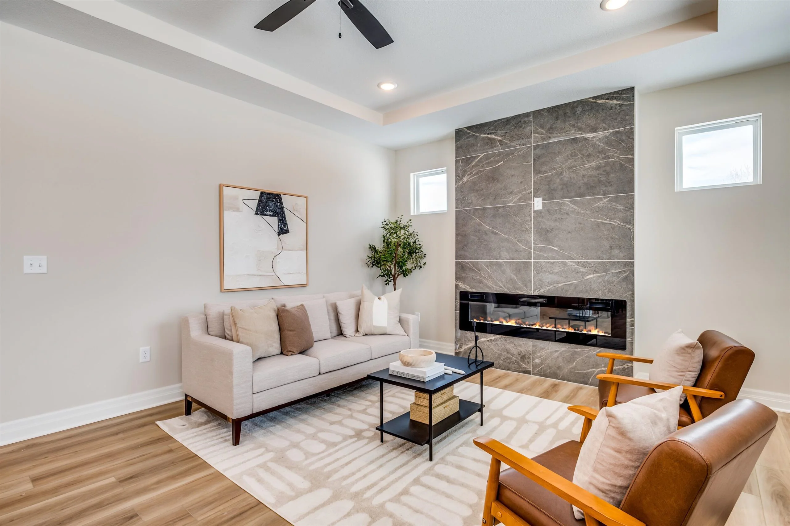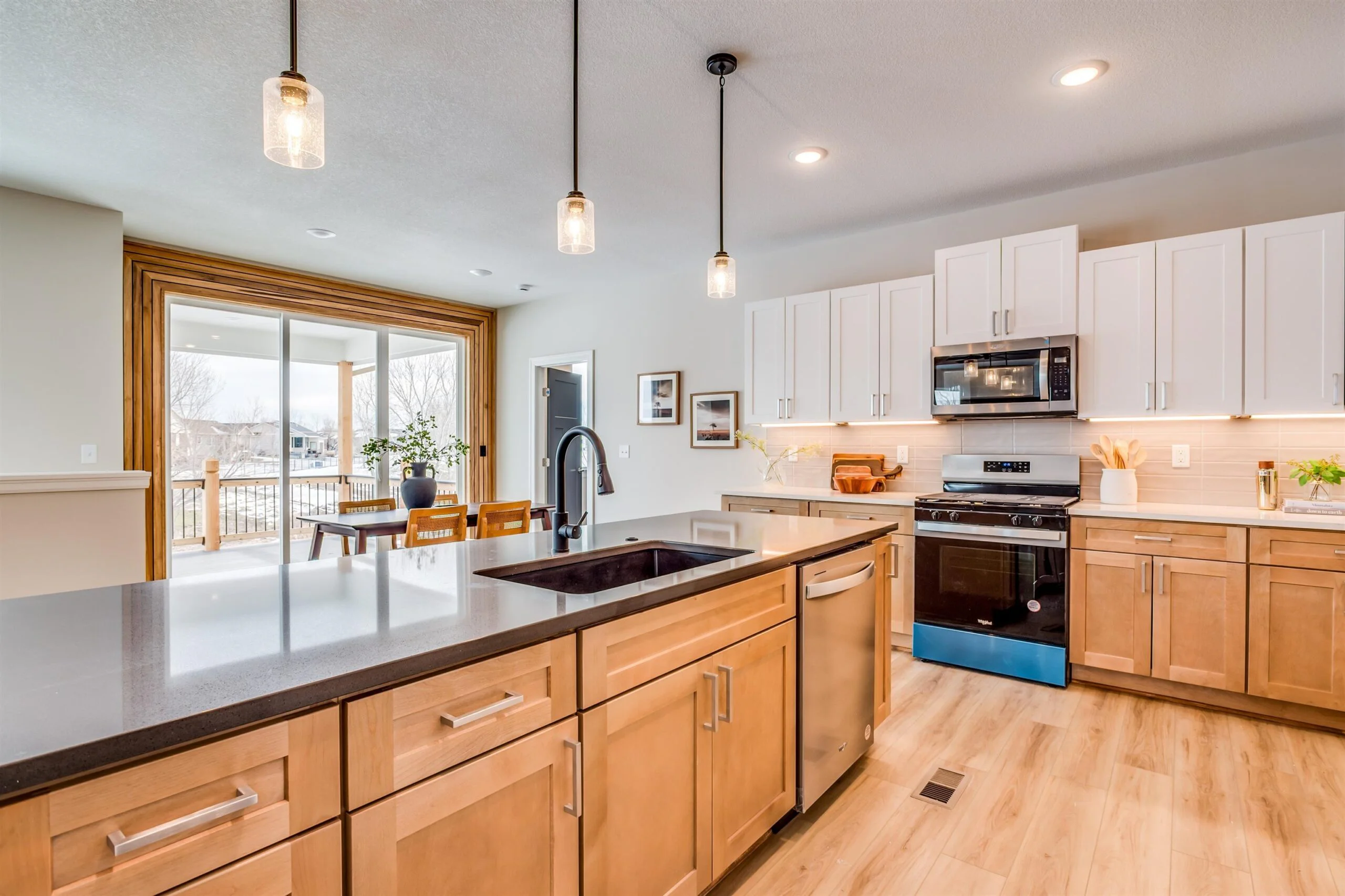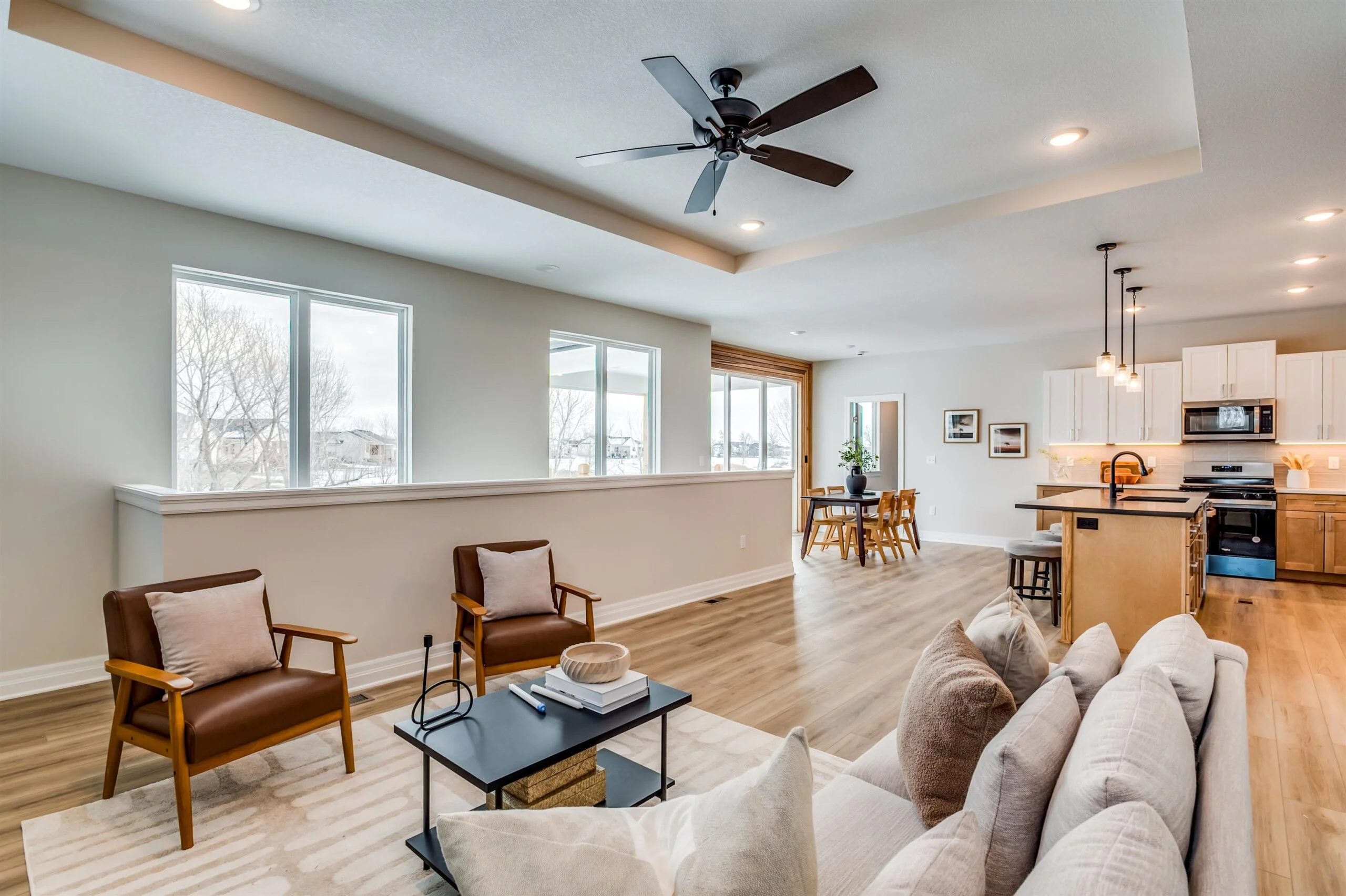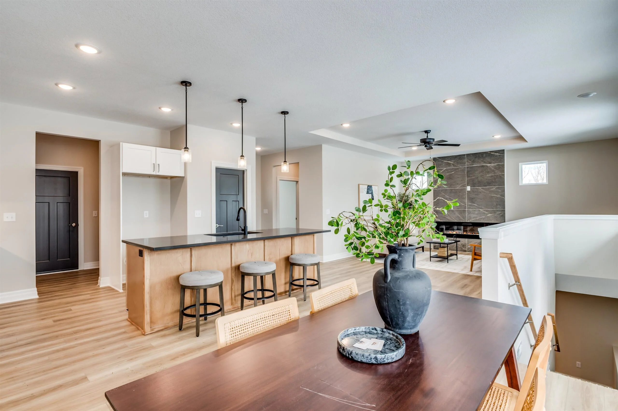 Back by popular demand, this Baby Bella Plan by RJ Castle Custom Homes offers an exceptional opportunity to live on a gorgeous lakefront lot in one of Wichita's premier neighborhoods—Watermarke. This stunning 4-bedroom, 3-bathroom home is designed for both comfort and style, featuring a spacious master suite with a private bath, full tile shower, and an expansive walk-in closet. The heart of the home is the open, light-filled living area, with a rear-facing kitchen complete with sleek quartz countertops, a walk-in pantry, and a seamless flow into the living room for easy entertaining. Step outside to enjoy a large covered deck that leads to a spacious ground-level patio, perfect for outdoor gatherings and enjoying the serene lake views. The fully finished lower level offers even more space to spread out, with a generous family room, a walk-up wet bar, 2 additional bedrooms, and a full bath. For added convenience, the 3-car garage includes an extra rear-facing garage door, offering easy access to the backyard with a concrete slab for parking or additional storage. Don't miss your chance to own this beautiful home in the coveted Watermarke community—where luxury living meets lakeside tranquility! Finished interior pictures are of a finished version of this plan previously built in Watermarke (Exact finishes will vary). Some information may be estimated and is not guaranteed. Please verify schools with USD 262.