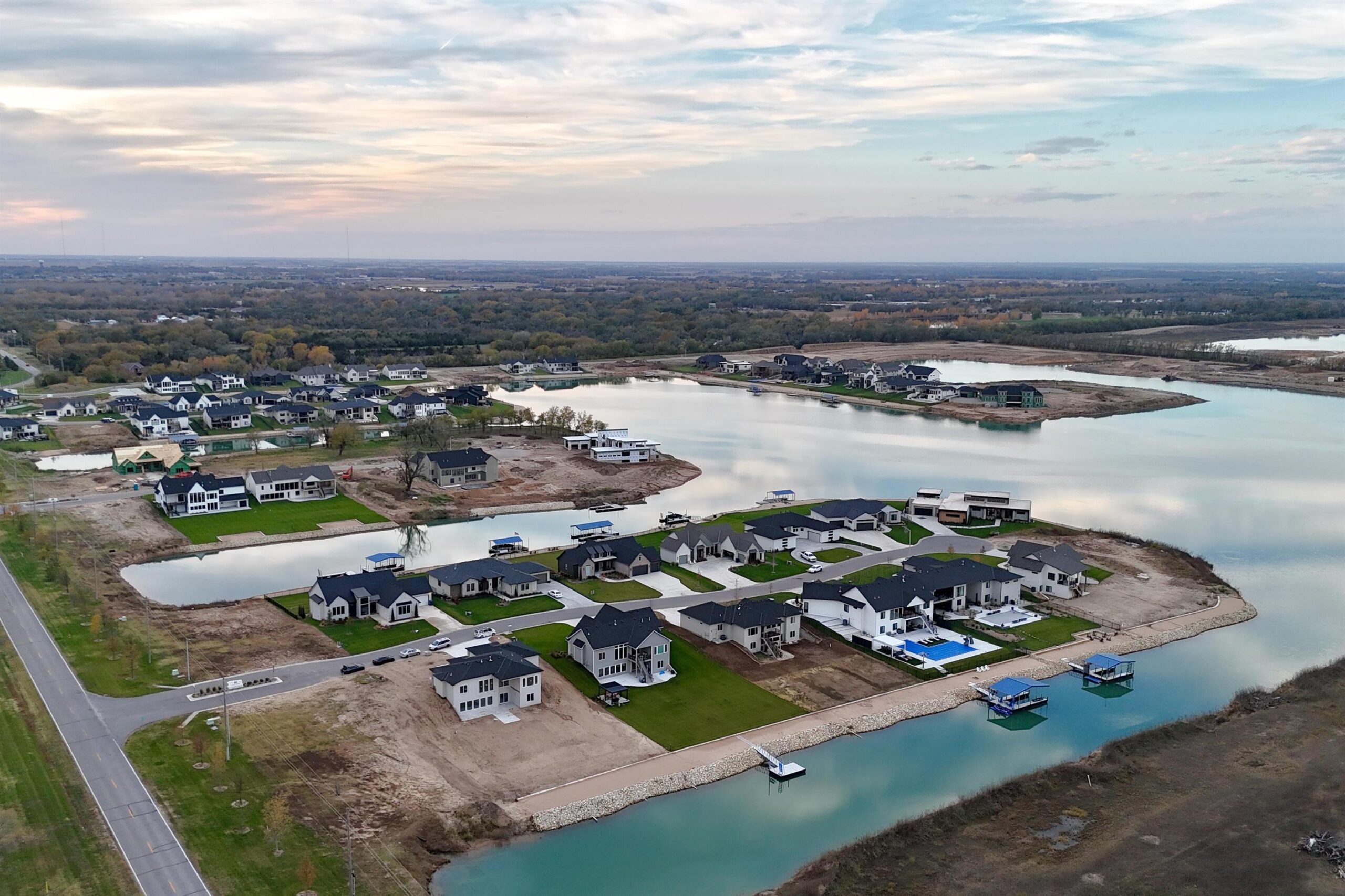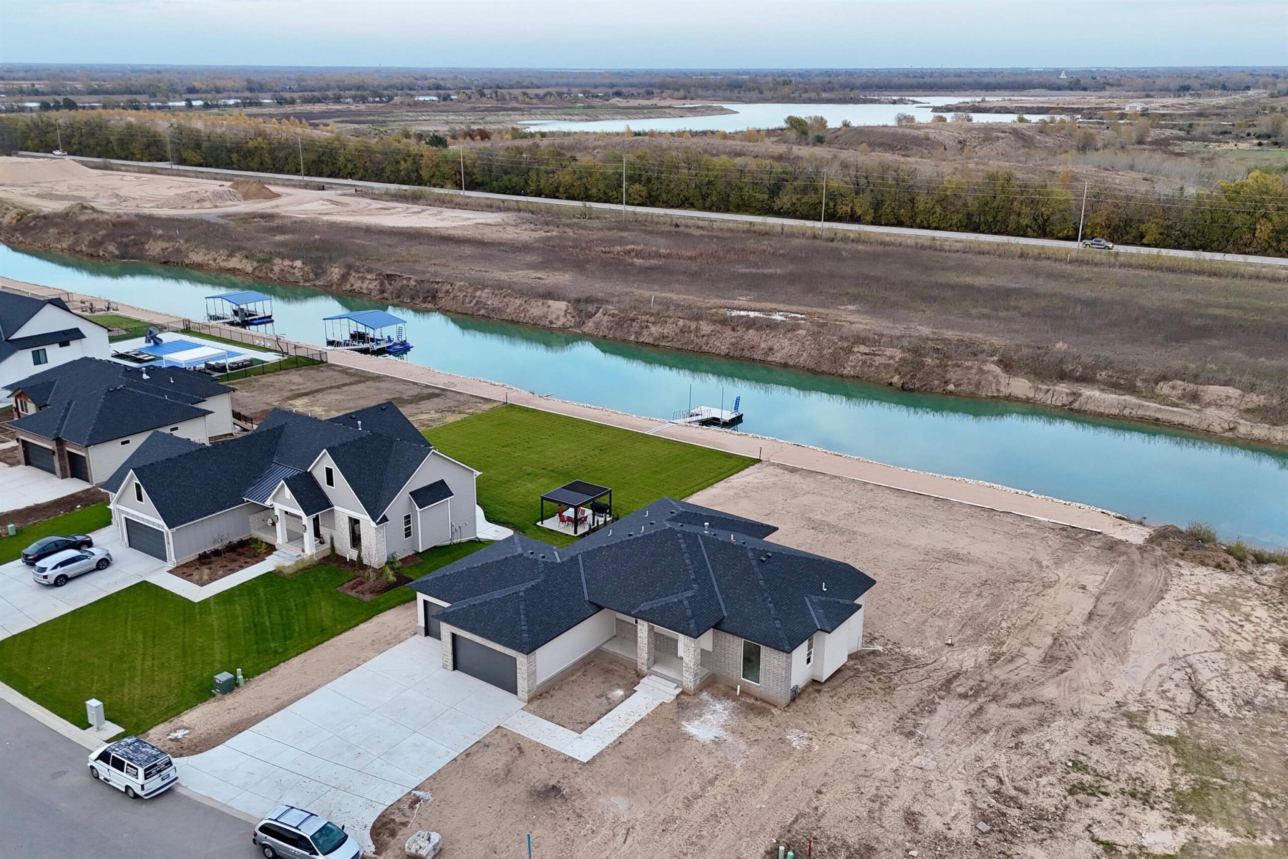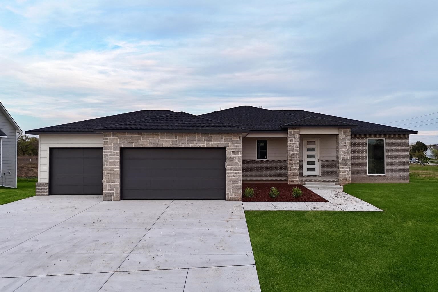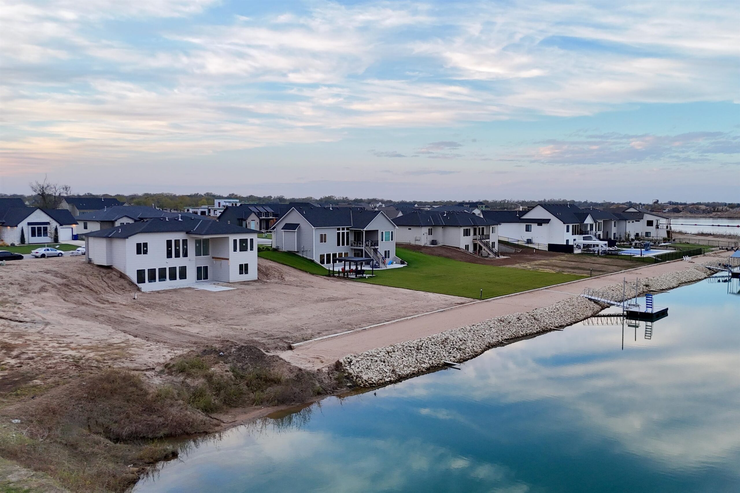 The Del Mar II by Robl Building Company — Waterfront Luxury in Castaway! Welcome to The Del Mar II, an exquisite new lakefront home by Robl Building Company, perfectly situated on a cul-de-sac lot in one of Wichita’s most desirable neighborhoods — Castaway. Enjoy life on a 135-acre, spring-fed boating lake, offering full recreational use right here in Wichita! Step inside this timeless home and be greeted by a grand front elevation and a light-filled entryway that opens into the spacious living room. You’ll be captivated by the soaring ceilings, expansive picture windows framing breathtaking lake views, rich wood floors, and a floor-to-ceiling stone fireplace that serves as the perfect focal point. The chef-inspired kitchen is designed for both function and beauty — featuring a large island, granite countertops, gas range, abundant cabinetry, and a walk-in pantry with an appliance counter. The adjacent dining area offers plenty of space for entertaining and leads seamlessly to the covered deck, perfect for enjoying sunset views over the water. The luxurious Master Suite is a true retreat, boasting a spacious bedroom, spa-like bath with dual vanities, a custom tile shower, and a huge walk-in closet with direct access to the laundry room. Additional thoughtful touches include a drop-zone bench at the garage entry and a guest powder bath off the main living area. Two more generous bedrooms and a full bath complete the main level. The fully finished walk-out lower level features 9-foot ceilings, a large family room with wet bar, private office with LVP flooring, two additional bedrooms, and a full bath. Step outside to a covered patio that opens to your own private beach area — ideal for lakeside relaxation or gatherings. With ample space for a future pool or sport court, this home is built for both comfort and lifestyle. Living in Castaway means more than just a beautiful home — it’s a true community. You’ll enjoy a lakefront clubhouse and pool, playground, basketball court, and the kind of views you just don’t find anywhere else in Wichita. Come experience The Del Mar II — where timeless design meets lakeside living. Schedule your private showing today! Please note that the finished interior pictures are from a home previously built in the neighborhood and exact finishes will vary. Please see the associated documents for a copy of the selection guide for this particular home. Some information may be estimated and is not guaranteed. Please verify schools with USD 266.