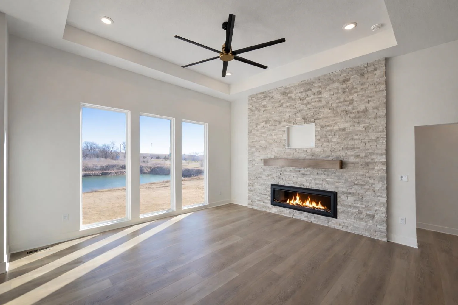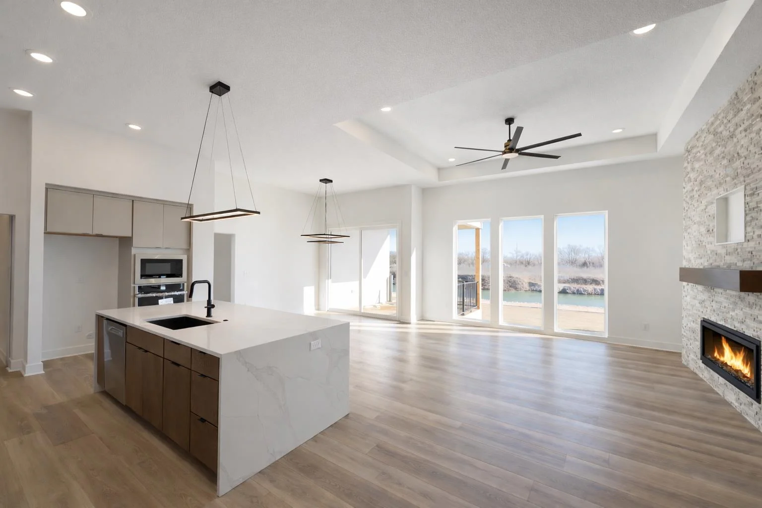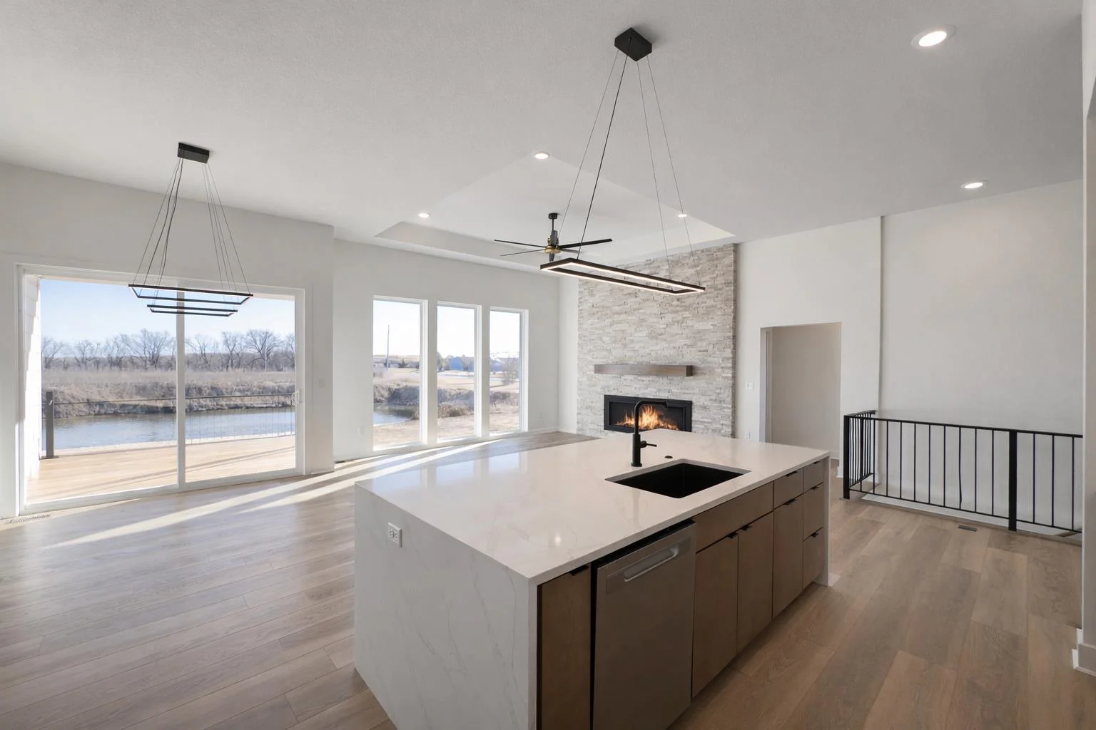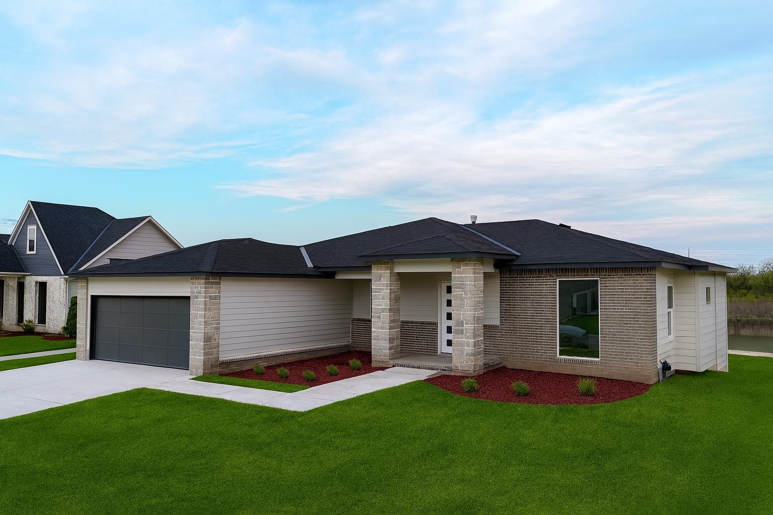 The Del Mar II by Robl Building Company — Waterfront Luxury in Castaway! Welcome to The Del Mar II, an exquisite new lakefront home by Robl Building Company, perfectly situated on a cul-de-sac lot in one of Wichita’s most desirable neighborhoods — Castaway. Enjoy life on a 135-acre, spring-fed boating lake, offering full recreational use right here in Wichita! Step inside this timeless home and be greeted by a grand front elevation and a light-filled entryway that opens into the spacious living room. You’ll be captivated by the soaring ceilings, expansive picture windows framing breathtaking lake views, rich wood floors, and a floor-to-ceiling stone fireplace that serves as the perfect focal point. The chef-inspired kitchen is designed for both function and beauty — featuring a large island, granite countertops, gas range, abundant cabinetry, and a walk-in pantry with an appliance counter. The adjacent dining area offers plenty of space for entertaining and leads seamlessly to the covered deck, perfect for enjoying sunset views over the water. The luxurious Master Suite is a true retreat, boasting a spacious bedroom, spa-like bath with dual vanities, a custom tile shower, and a huge walk-in closet with direct access to the laundry room. Additional thoughtful touches include a drop-zone bench at the garage entry and a guest powder bath off the main living area. Two more generous bedrooms and a full bath complete the main level. The fully finished walk-out lower level features 9-foot ceilings, a large family room with wet bar, private office with LVP flooring, two additional bedrooms, and a full bath. Step outside to a covered patio that opens to your own private beach area — ideal for lakeside relaxation or gatherings. With ample space for a future pool or sport court, this home is built for both comfort and lifestyle. Living in Castaway means more than just a beautiful home — it’s a true community. You’ll enjoy a lakefront clubhouse and pool, playground, basketball court, and the kind of views you just don’t find anywhere else in Wichita. Come experience The Del Mar II — where timeless design meets lakeside living. Schedule your private showing today! Please note that the finished interior pictures are from a home previously built in the neighborhood and exact finishes will vary. Please see the associated documents for a copy of the selection guide for this particular home. Some information may be estimated and is not guaranteed. Please verify schools with USD 266.