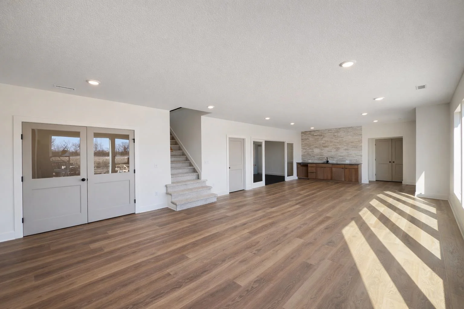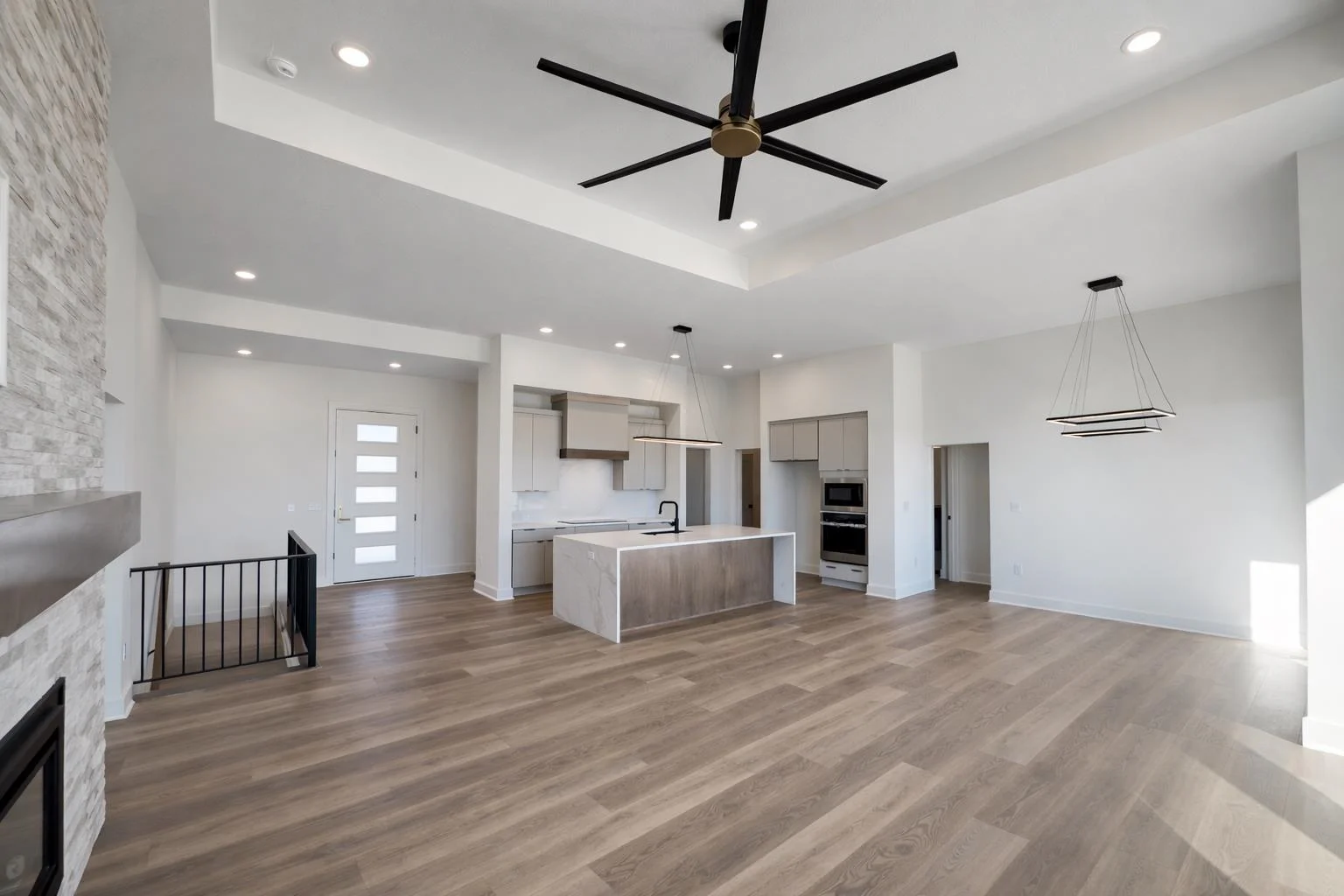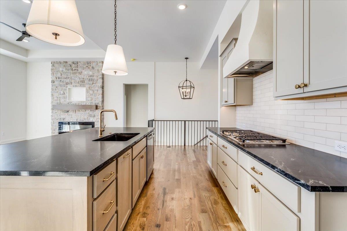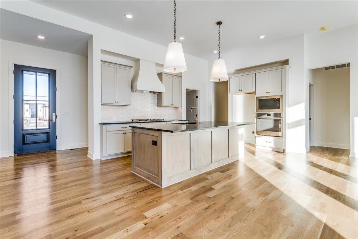 The Del Mar II by Robl Building Company — Waterfront Luxury in Castaway! Welcome to The Del Mar II, an exquisite new lakefront home by Robl Building Company, perfectly situated on a cul-de-sac lot in one of Wichita’s most desirable neighborhoods — Castaway. Enjoy life on a 135-acre, spring-fed boating lake, offering full recreational use right here in Wichita! Step inside this timeless home and be greeted by a grand front elevation and a light-filled entryway that opens into the spacious living room. You’ll be captivated by the soaring ceilings, expansive picture windows framing breathtaking lake views, rich wood floors, and a floor-to-ceiling stone fireplace that serves as the perfect focal point. The chef-inspired kitchen is designed for both function and beauty — featuring a large island, granite countertops, gas range, abundant cabinetry, and a walk-in pantry with an appliance counter. The adjacent dining area offers plenty of space for entertaining and leads seamlessly to the covered deck, perfect for enjoying sunset views over the water. The luxurious Master Suite is a true retreat, boasting a spacious bedroom, spa-like bath with dual vanities, a custom tile shower, and a huge walk-in closet with direct access to the laundry room. Additional thoughtful touches include a drop-zone bench at the garage entry and a guest powder bath off the main living area. Two more generous bedrooms and a full bath complete the main level. The fully finished walk-out lower level features 9-foot ceilings, a large family room with wet bar, private office with LVP flooring, two additional bedrooms, and a full bath. Step outside to a covered patio that opens to your own private beach area — ideal for lakeside relaxation or gatherings. With ample space for a future pool or sport court, this home is built for both comfort and lifestyle. Living in Castaway means more than just a beautiful home — it’s a true community. You’ll enjoy a lakefront clubhouse and pool, playground, basketball court, and the kind of views you just don’t find anywhere else in Wichita. Come experience The Del Mar II — where timeless design meets lakeside living. Schedule your private showing today! Please note that the finished interior pictures are from a home previously built in the neighborhood and exact finishes will vary. Please see the associated documents for a copy of the selection guide for this particular home. Some information may be estimated and is not guaranteed. Please verify schools with USD 266.