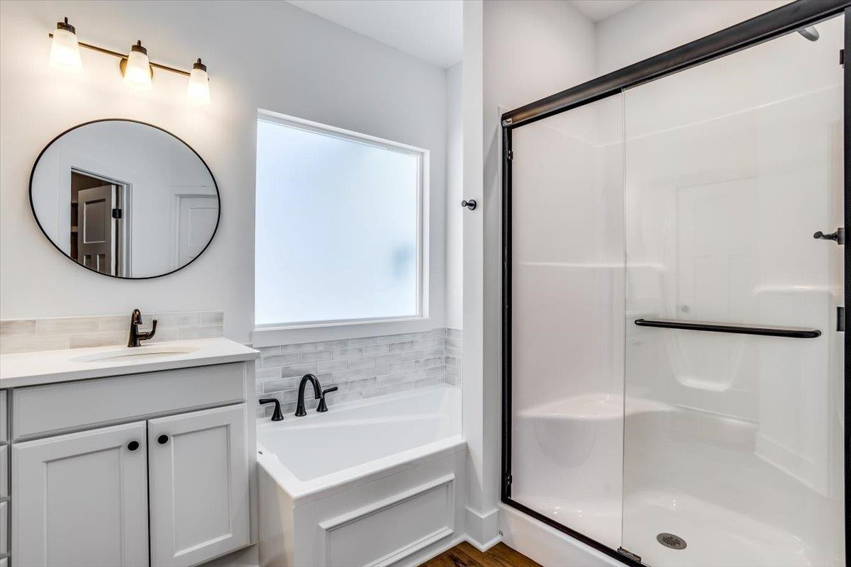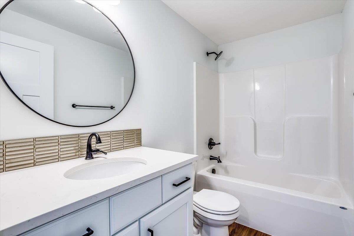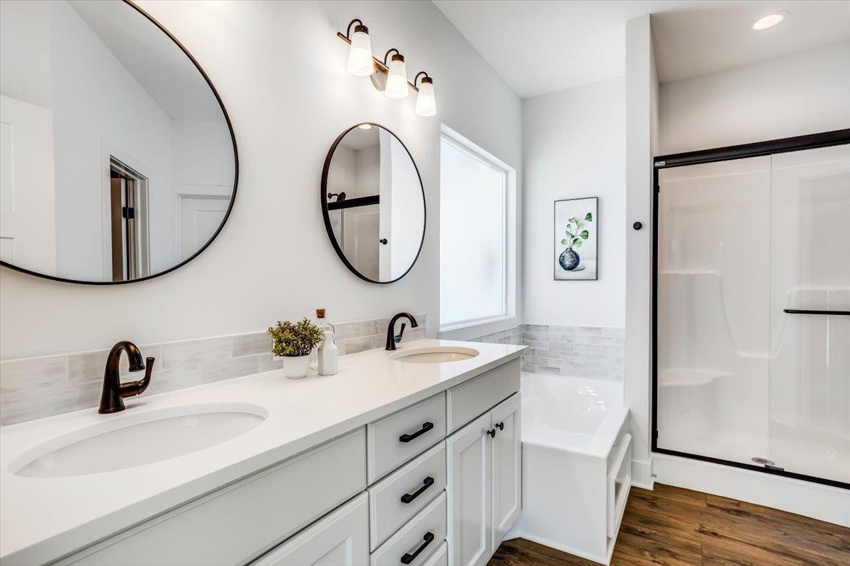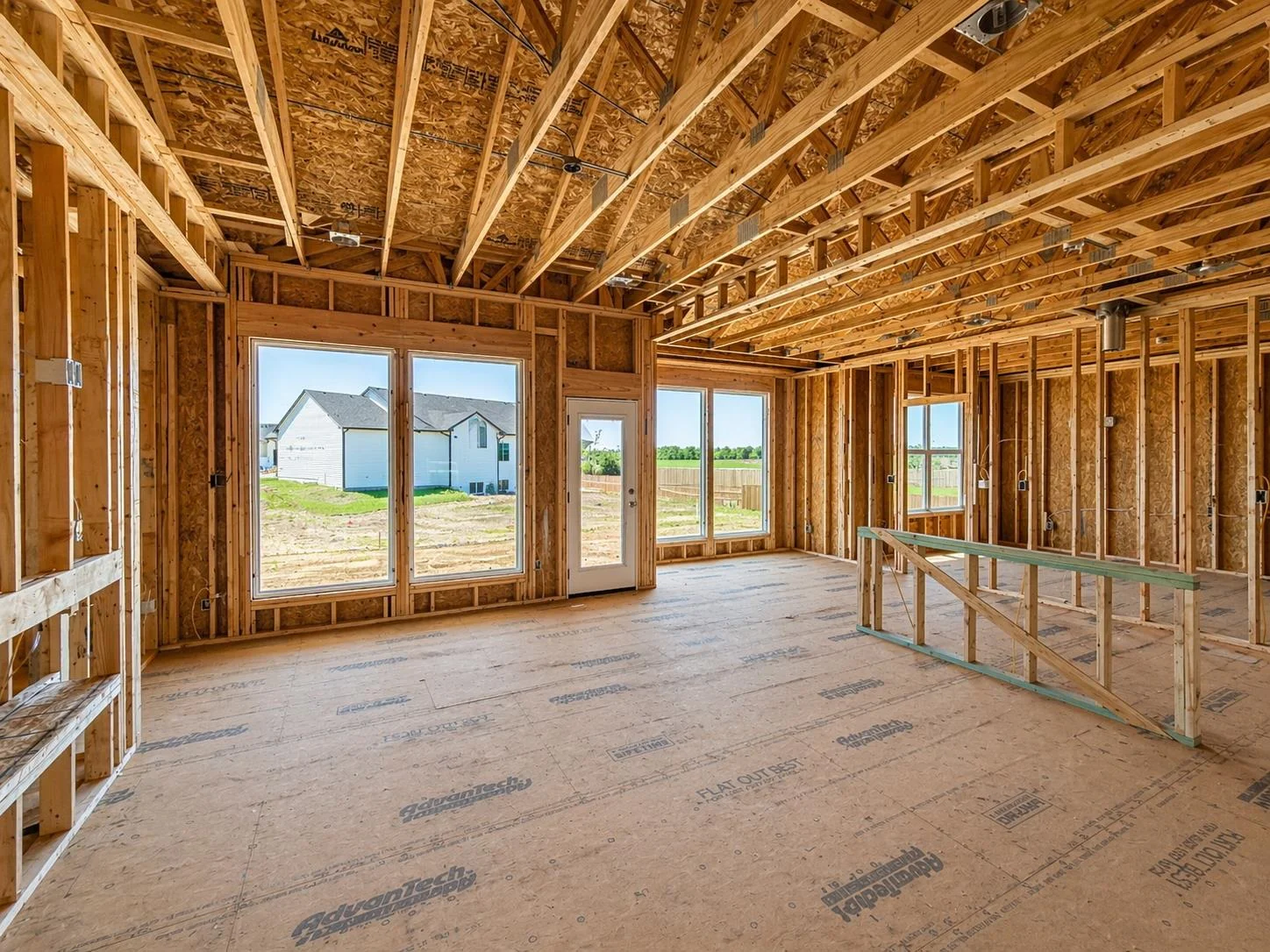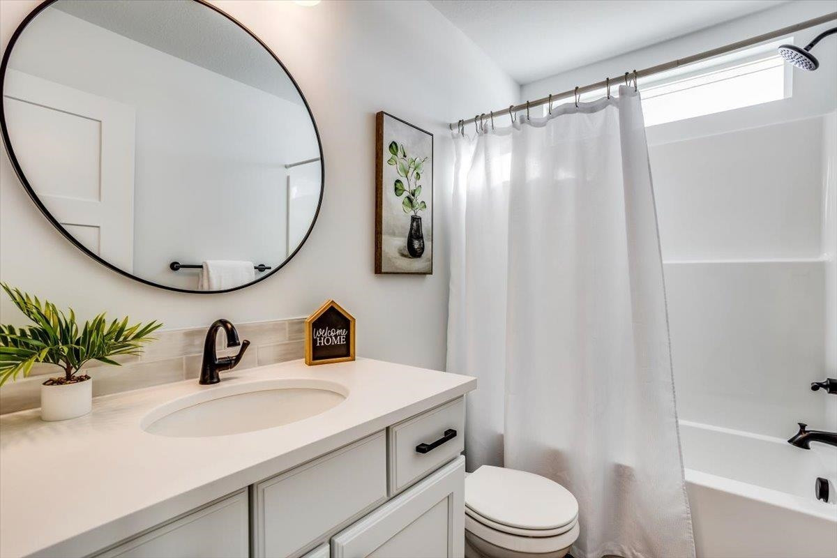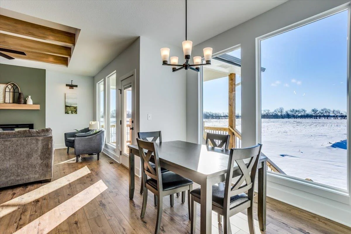 Welcome to the Magnus 2 Plan by M&M Custom Construction, a stunning new home tucked away on a quiet cul-de-sac lot in Watermarke. Showcasing a timeless front elevation with modern architectural flair, this home offers elegant finishes, thoughtful design, and the high-quality craftsmanship M&M Custom Construction is known for. The main floor features a spacious living room with 10-foot ceilings, warm wood beam accents, large picture windows, and an electric fireplace with a wood mantle, flanked by built-in cabinets and shelving. A walk-out door leads to the expansive covered deck, complete with stairs down to a large ground-level patio, creating the perfect setup for relaxing or entertaining. The well-equipped kitchen includes quartz countertops, a custom-built range hood, abundant cabinet space, and a walk-in pantry. The adjoining dining area is filled with natural light from large picture windows. The luxurious primary suite offers a spacious bedroom, private bath with dual vanity, tile shower, soaker tub, and walk-in closet. Two additional bedrooms, a full hall bath, drop zone at the garage entrance, and a separate laundry room complete the main level. The finished basement continues to impress with a massive family room, media wall with custom trim and LED accent lighting, large wet bar, two spacious bedrooms each with walk-in closets, a full hall bath, and plenty of storage. Available now in Watermarke, this beautifully crafted home combines comfort, style, and function in an exceptional setting. Some information may be estimated and is not guaranteed. Please verify schools with USD 262.