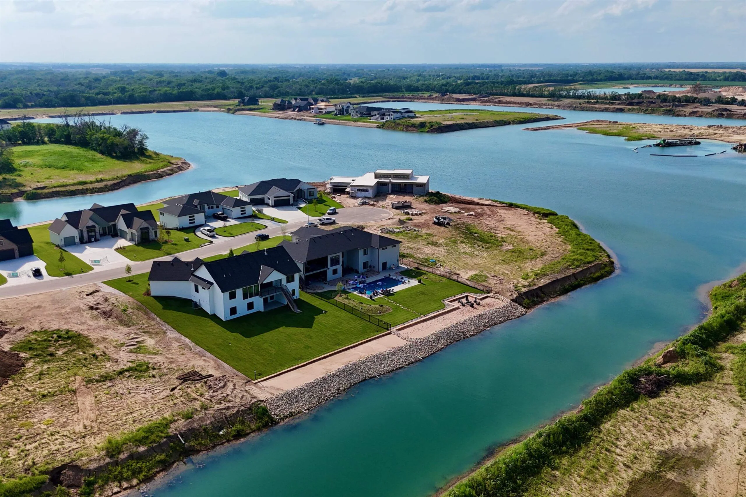 Wow! Talk about livable luxury! From the moment you enter the stunning Oceana plan, you won’t want to leave. The 12’ ceilings in the great room create an open airy feeling, paired with large sliding doors to the covered lanai, and nearly floor to ceiling windows, offer unmatched views of your own private paradise! This timeless design features a gourmet kitchen with an abundant pantry space, and a 9 ½ foot prep island with seating for 4. Every bedroom has private access to a bath, walk in closets, and the owner’s suite features a spa style bath and a large walk-in closet. The fully finished lower-level features large gathering spaces, two bedrooms, a guest half bath, and a full walk out at grade to the beautiful beach and the crystal clear Castaway private surf lake. The angled center loading garage makes backing your boat, or pulling in to unload your groceries almost effortless! Come see life as it should be today, in beautiful Castaway! Some information may be estimated, and is not guaranteed, please verify schools with USD266. Pricing could change as selections are made and items are added or changed. Photos 5-36 are of an Oceana Plan previously built as a model home in Castaway and exact finishes may vary.
