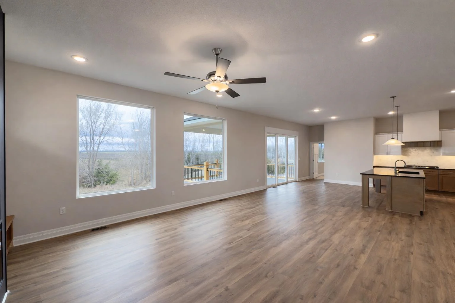 Back by Popular Demand – The Bella Plan by RJ Castle Custom Homes! Set on a quiet half-acre cul-de-sac lot with mature trees and no rear neighbors, this home offers unmatched privacy and views of open farm ground. A defined entryway welcomes you into the expansive main living space, featuring large picture windows, soaring ceilings, and an elegant fireplace. The chef’s kitchen boasts a large island, walk-in pantry, and abundant cabinetry, flowing seamlessly to the spacious dining room with room for oversized gatherings. Step through the 3-panel sliding glass doors to a covered deck with steps down to a ground-level patio—perfect for entertaining. Retreat to the luxurious Master Suite, complete with dual vanities, a walk-in tile shower, and a walk-in closet with direct access to the laundry room. A built-in drop zone at the garage entry adds everyday convenience. The main floor is finished with a second bedroom and full bath, while the fully finished lower-level impresses with a massive family room, wet bar, two large bedrooms (one with a walk-in closet), full bath, and storage. Available now in Watermarke! Some information may be estimated and is not guaranteed. Please verify schools with USD 262.