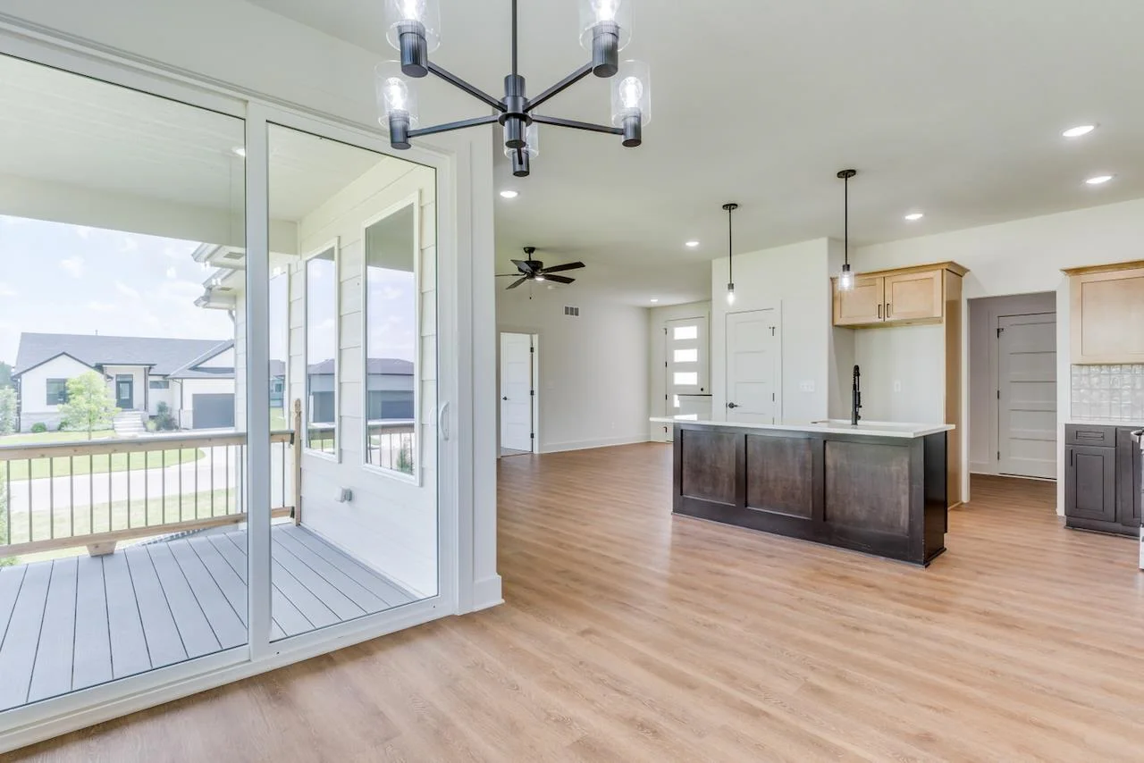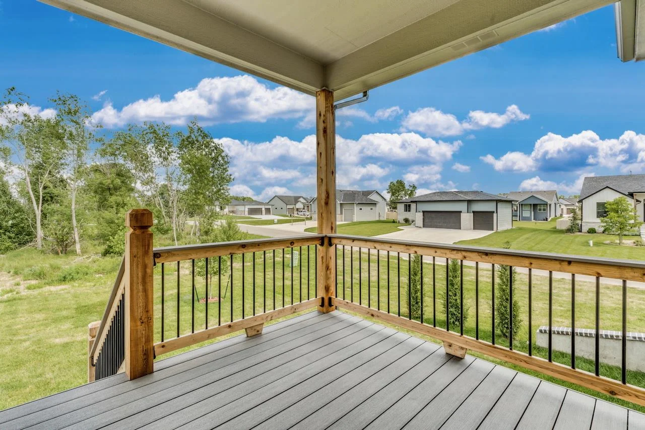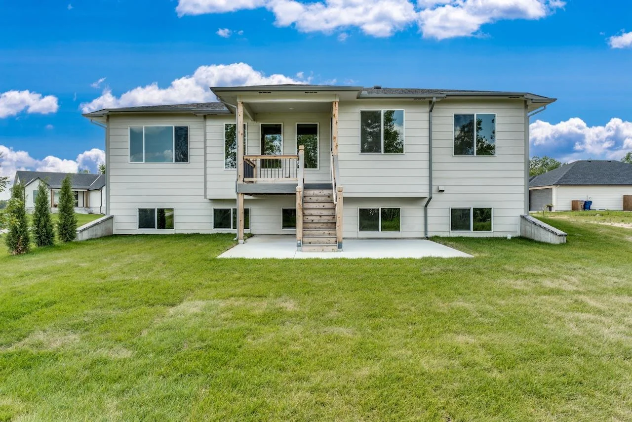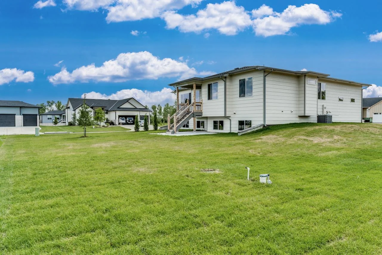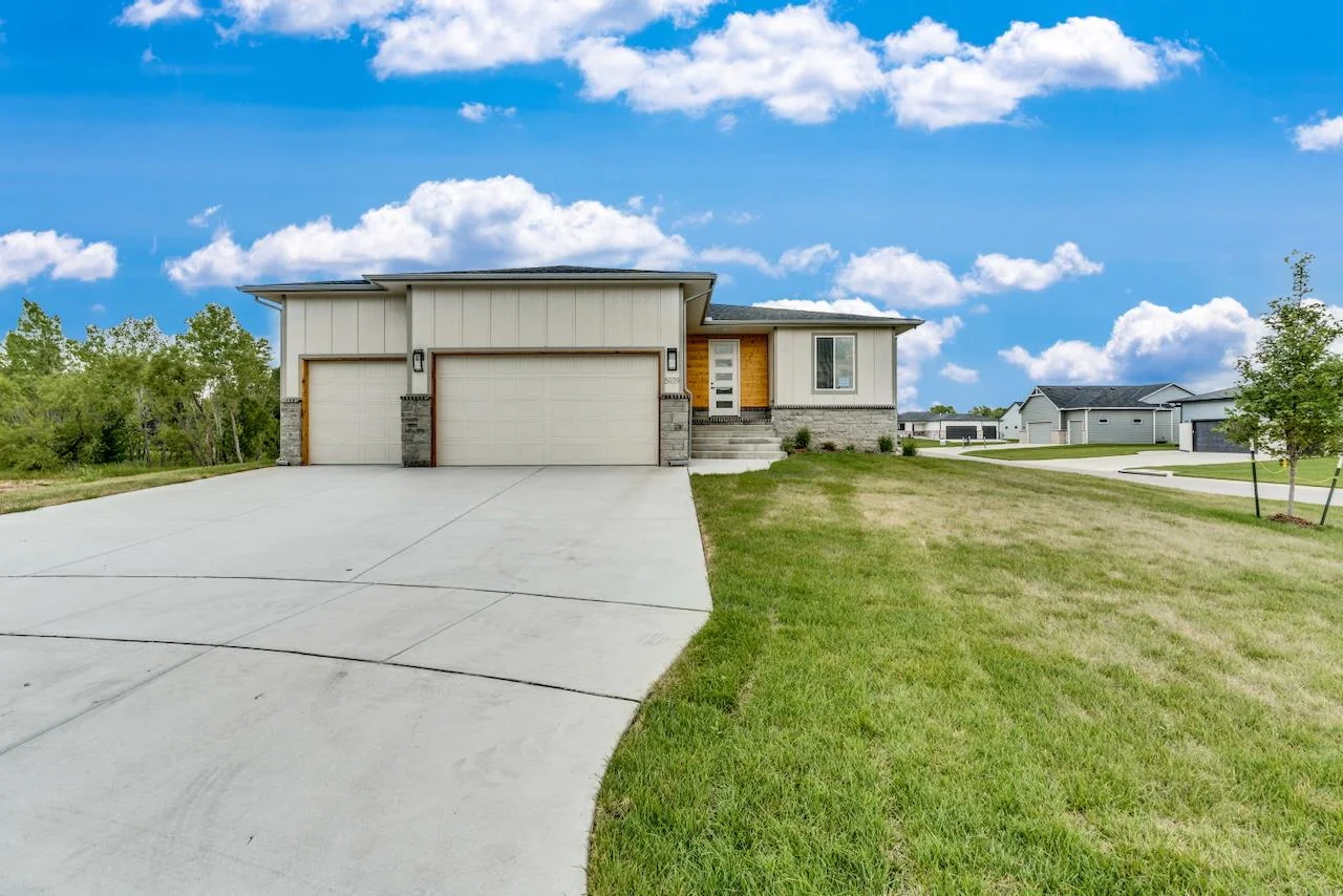 Introducing the Kinley II Plan by Relph Construction – a stunning 5-bedroom, 3-bathroom home nestled on a peaceful corner cul-de-sac lot in Wichita, within the highly sought-after Valley Center School District. This spacious and beautifully designed home is perfect for modern living with an open-concept main floor that blends comfort and style. Step inside and be welcomed by the expansive living room featuring luxurious LVP flooring, an electric fireplace with a stylish mantel and floating shelves, and large picture windows that flood the space with natural light. The kitchen is a chef’s dream with sleek quartz countertops, ample cabinet space, and a walk-in pantry for all your storage needs. The large dining area opens up to a generous covered deck, perfect for entertaining, with steps down to a large ground-level patio. Retreat to the master suite, a peaceful sanctuary that offers a spacious bedroom, a private bath with dual vanity and a beautiful tile shower, plus a walk-in closet. Conveniently located just off the garage, the laundry room includes a drop-zone/mudroom, keeping things organized and tidy. The main floor is complete with two additional bedrooms and a full bathroom, offering plenty of space for family and guests. Downstairs, the fully finished lower level is a highlight, featuring a massive family room with a wet bar, two more bedrooms, a full bathroom, and an extra finished room that can serve as an office or additional storage. This home is not only a masterpiece of design but is also ideally located in a quiet, family-friendly neighborhood with easy access to local amenities and the highly regarded Valley Center School District. Don’t miss out on the opportunity to make this dream home yours! Some information may be estimated and is not guranteed. Please verify schools with USD 262.