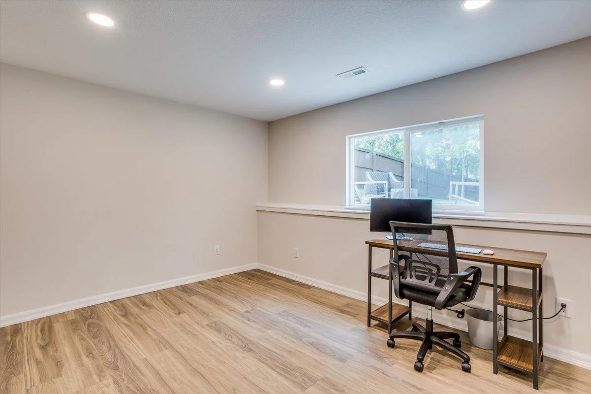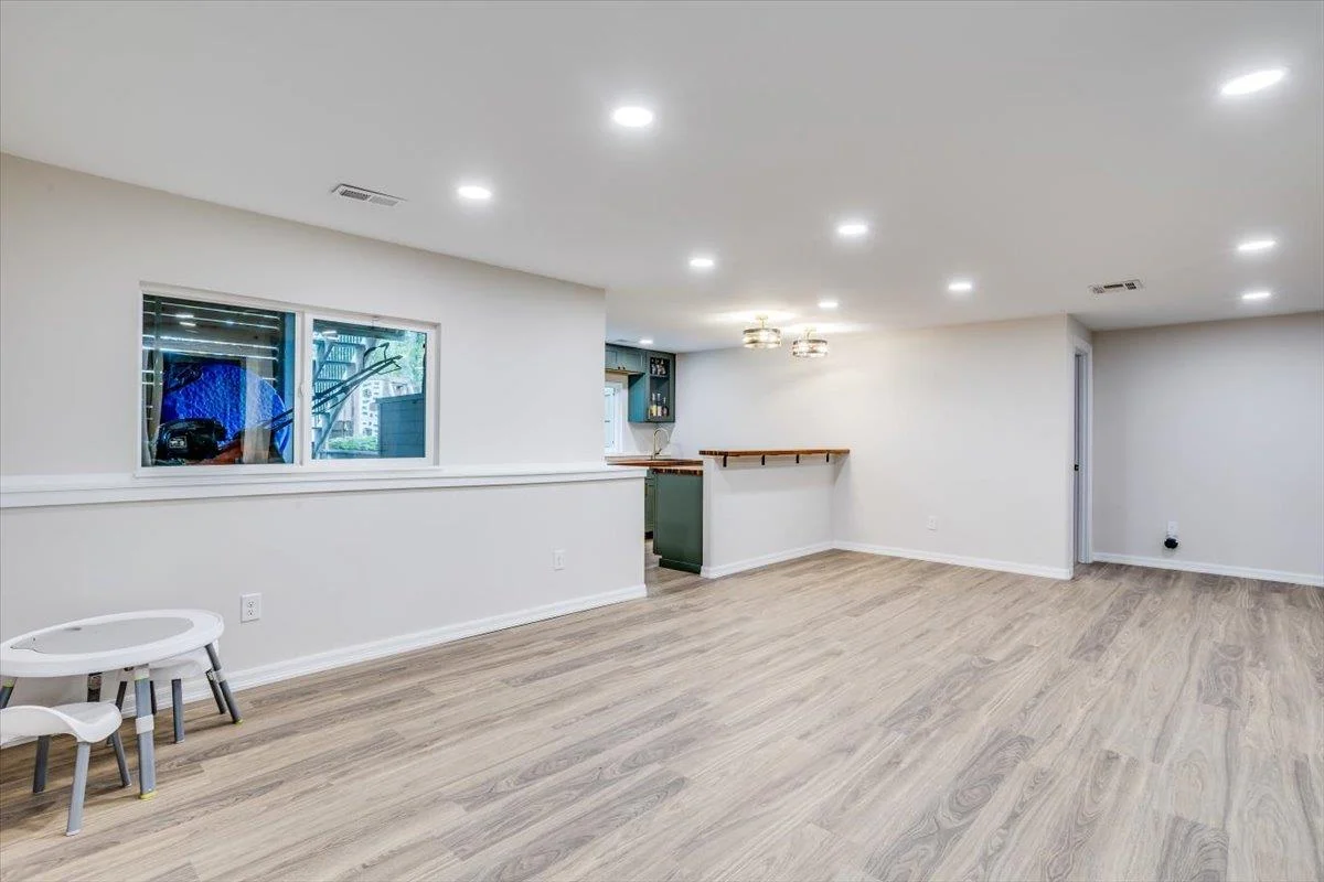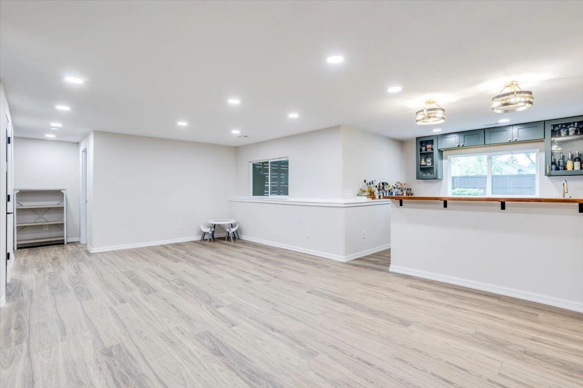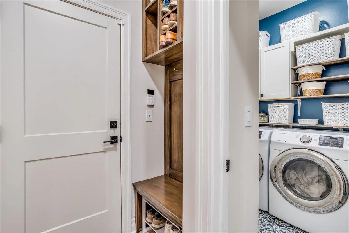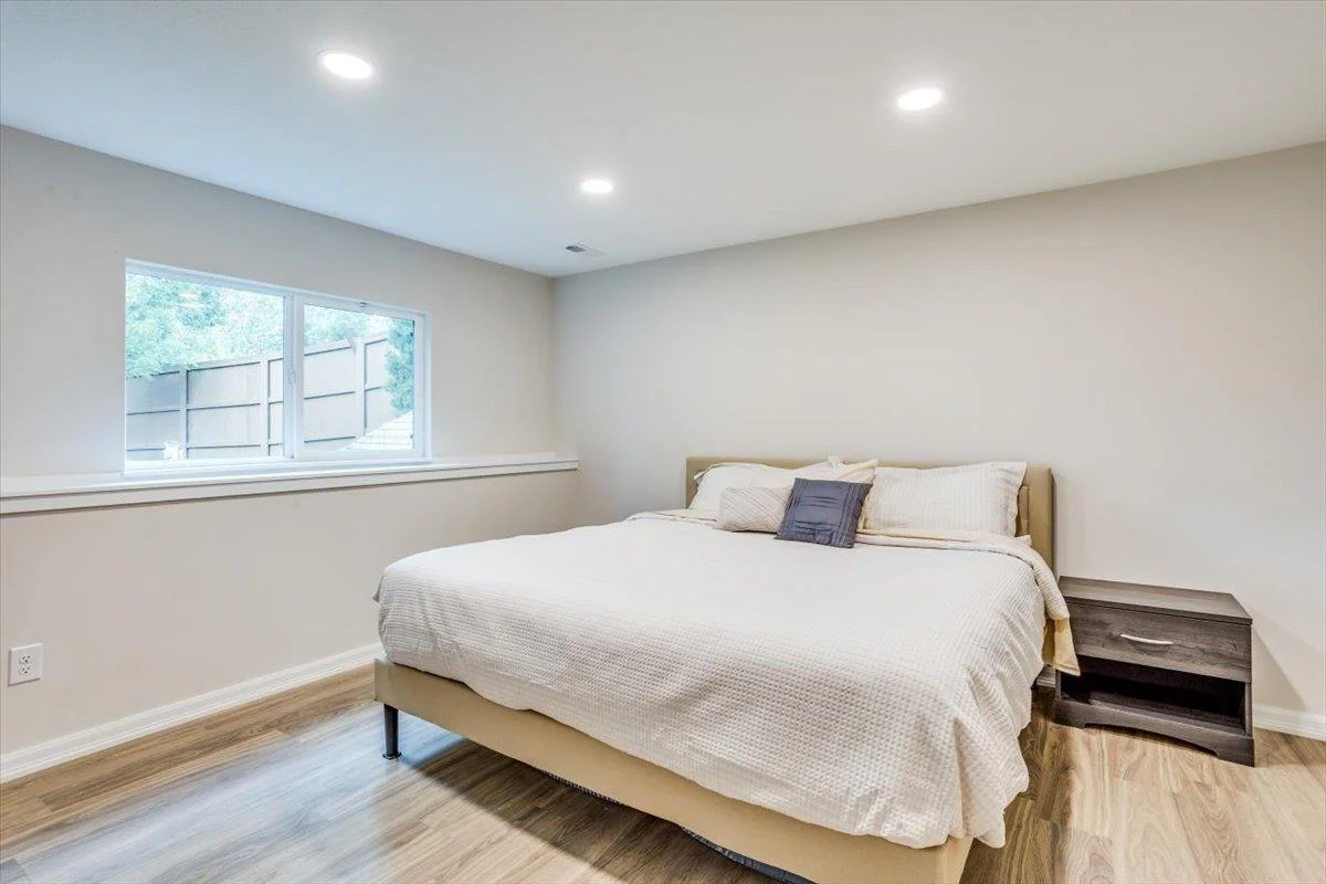 What an inviting front porch complete with porch swing on Aspen former model home by Paul Gray Homes in Edgewater! This split 5 bedroom 4 bath home takes advantage of the gorgeous lake and wooded views with floor to ceiling windows in the living room! The living room ceiling soars to a vault with beams, with long pendant lights hung over the island. The master bath is a spa with slipper tub in front of trio of narrow vertical windows, custom glass wall shower and door, & sliding barn door. The master closet is a storage dream and is just across from the separate laundry room and washer and dryer stay with the home. Kitchen is spotless with wall oven/microwave, custom vented range hood, large walk in pantry with countertops, white quartz, gas range cook top, stainless steel refrigerator, and dark faucet and cabinet pulls for a striking contrast. Upgraded cabinets and drawers are soft close. Come see the custom architecture done on the corners! The hall bath has a European flair with patterned floor. The basement is completely finished with 2 more bedrooms (one of which has a private bath so its an extra primary suite), family room with wetbar and bar fridge that stays, additional 4th bathroom, and large storeroom, with finished areas all having LVP floors. Relax on the large covered composite deck or concrete patio out back in the wooded private back yard! Swing set and umbrella in concrete out back stay with the home. Garage is finished out with insulation, sheetrock, and paint! Information deemed reliable but not guaranteed and may change without notice.
