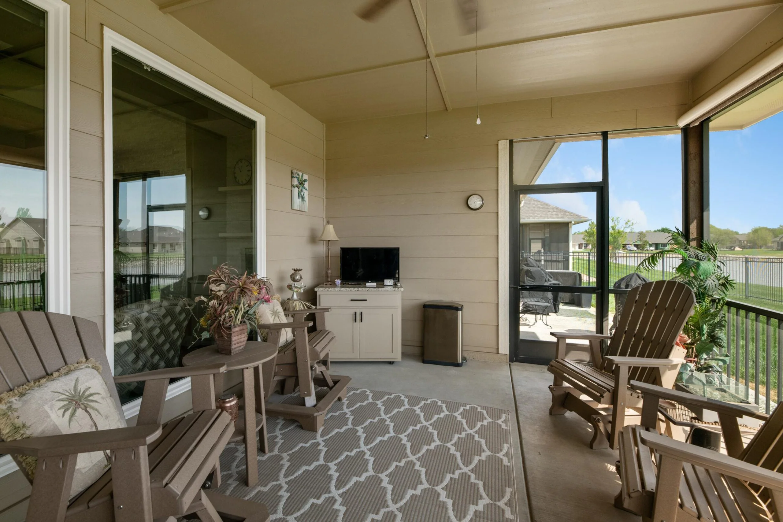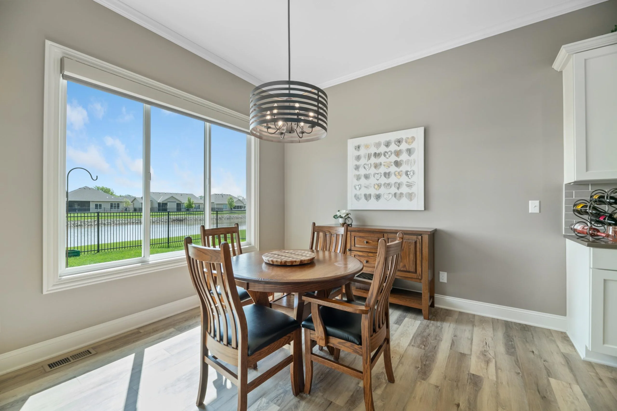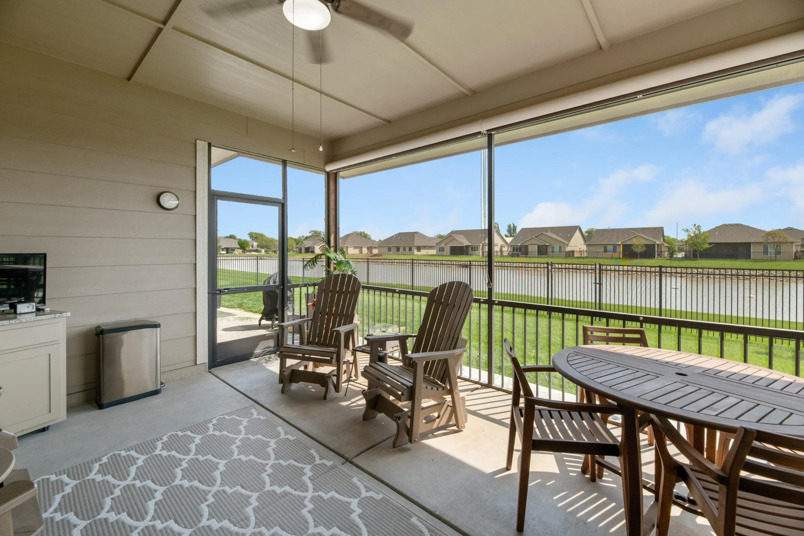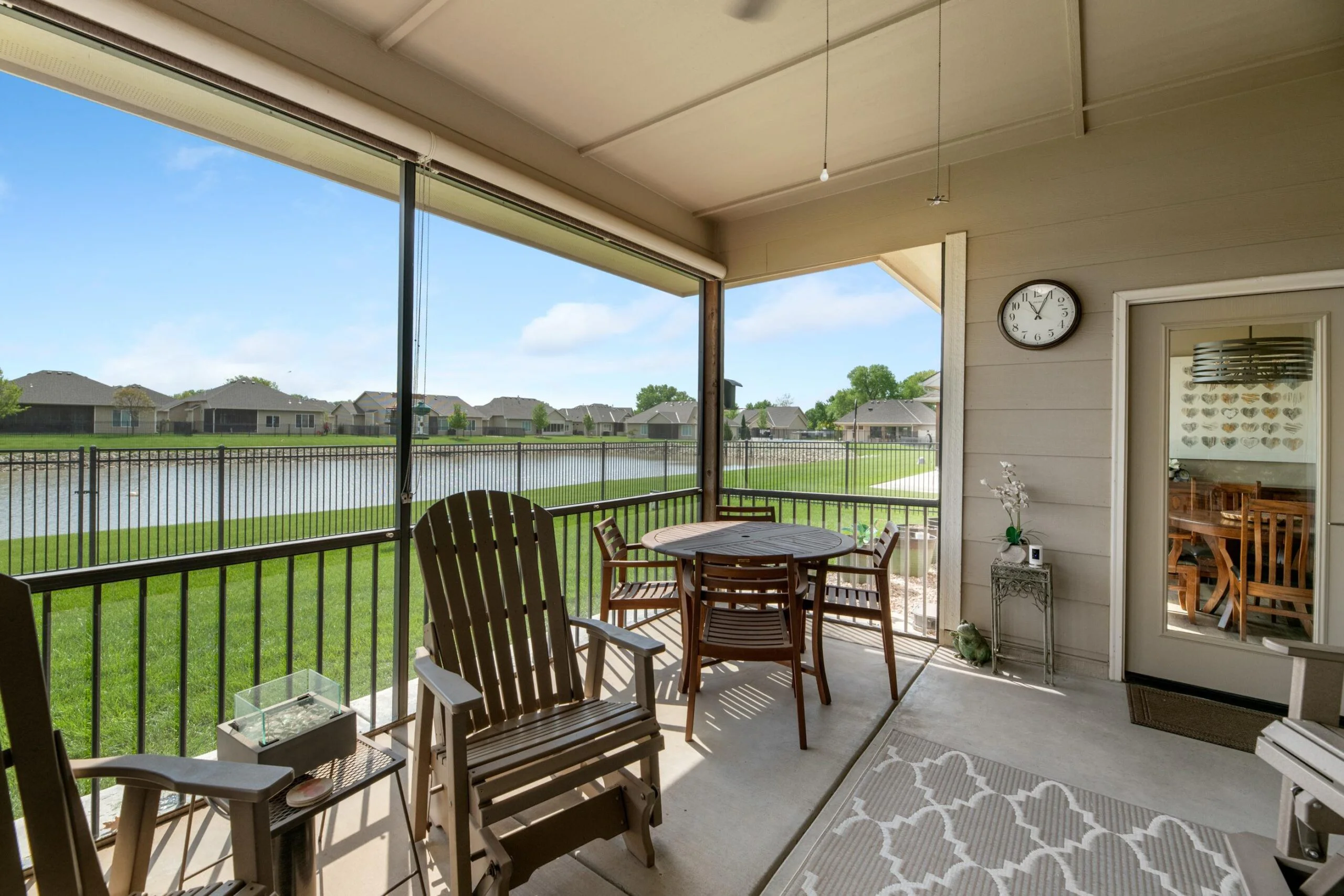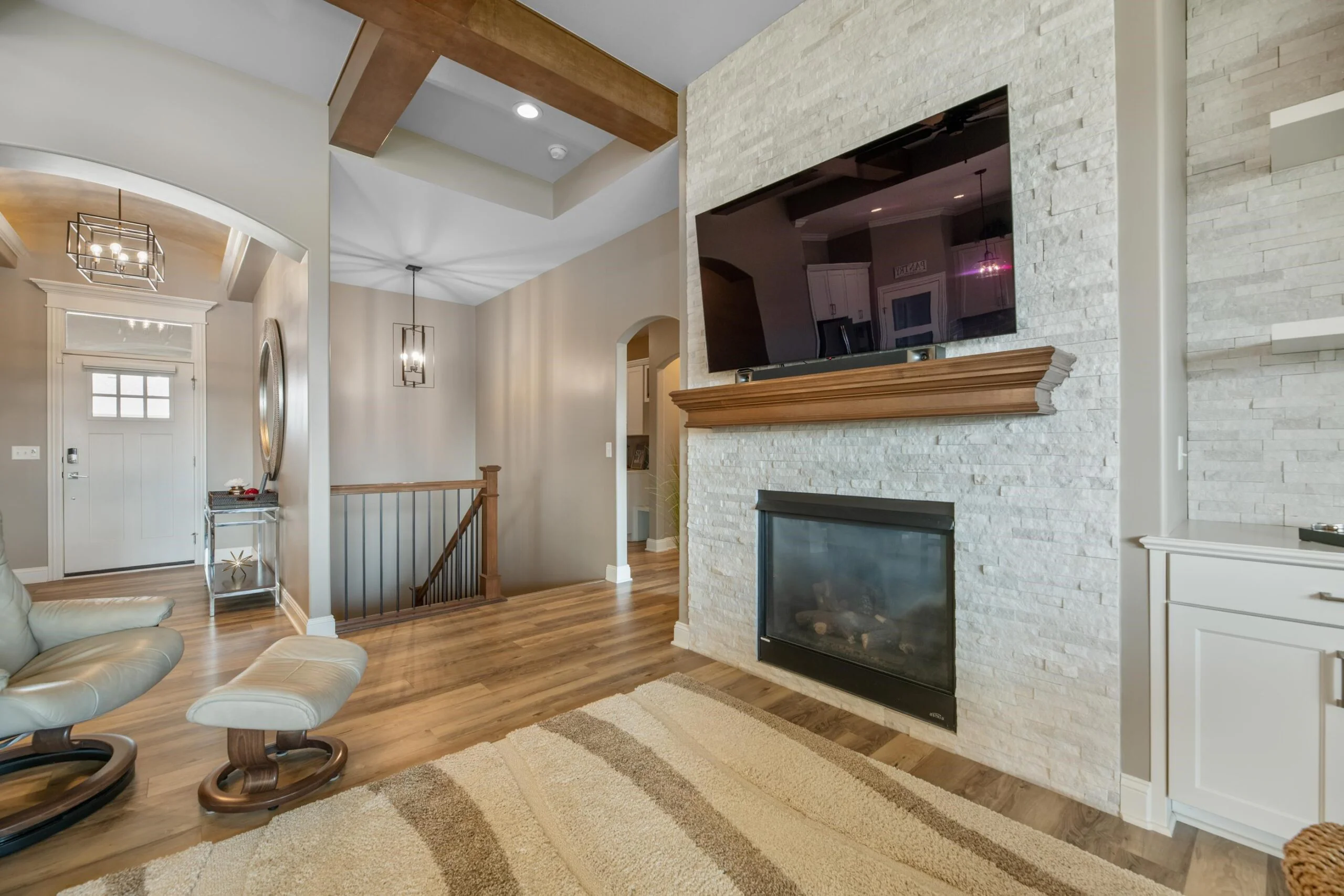 This beautiful custom-built patio home on a lake lot boasts luxury features and designer finishes at every turn. A stunning entry foyer with lighted barrel ceiling welcomes you into a great room with stone fireplace, beamed ceilings and electric window coverings. The kitchen design will bring out your inner chef with large island, gas cooktop, pull out shelves in the kitchen and large pantry with space for all your culinary needs. Retreat to the primary suite complete with lighted coffer ceiling, separate vanities, tiled shower, spacious and access to the laundry room for added convenience. Enjoy your morning coffee or evening cocktail on covered screened patio with shading and peaceful lake views. The additional patio is perfect for grilling. Unfinished basement with 8’ ceiling gives you flexibility to finish more living space and lots of storage. The 3 car garage is insulated and includes a mini split system. HOA dues include lawn care, snow removal, pool, and clubhouse. Schedule your showing today!