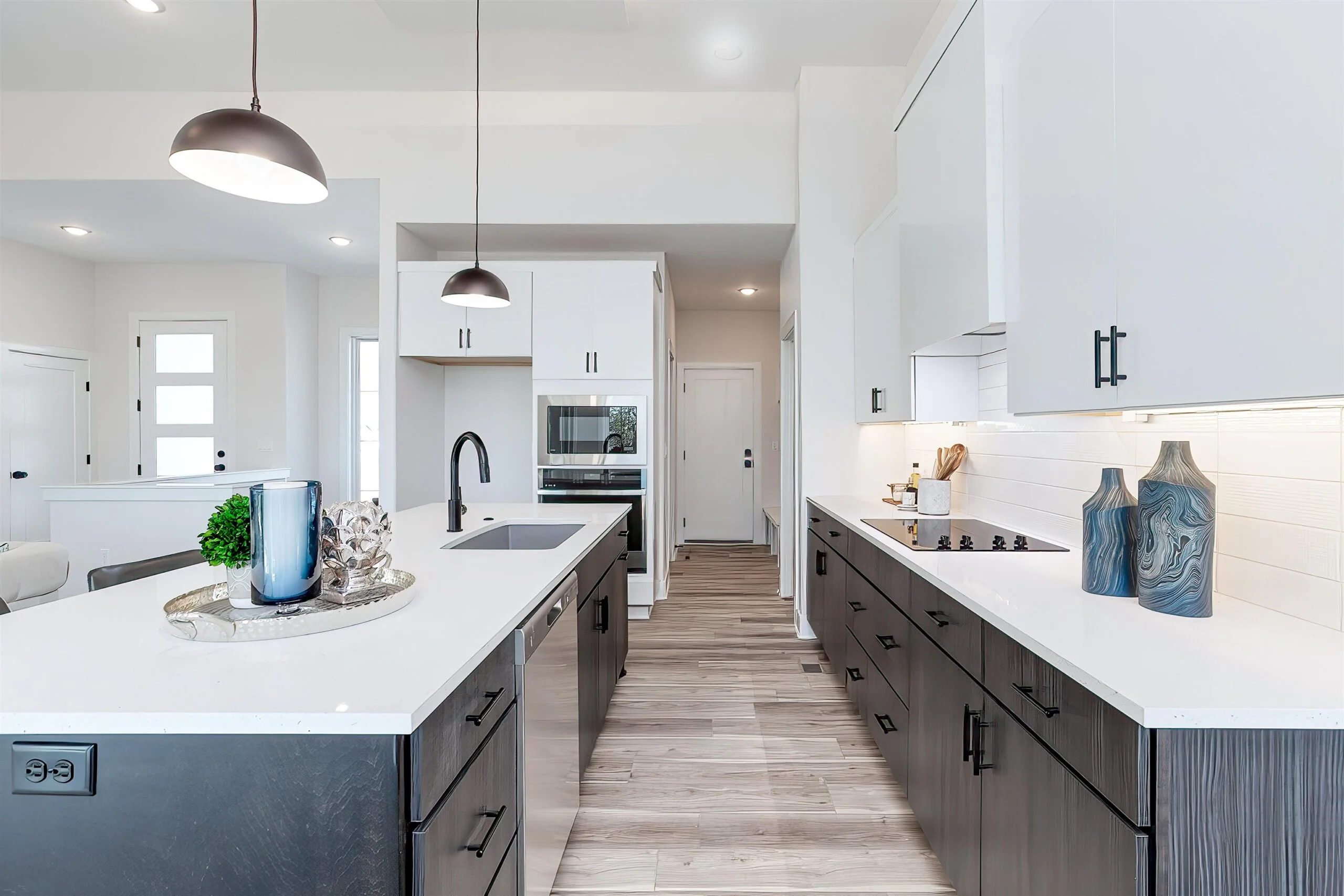 The new Amalfi plan by Paul Gray Homes! Very open concept living room with 12 foot ceiling overcasting both the kitchen and living room. Custom tile wall surrounding modern electric led fireplace. Kitchen has all the modern upgrades with quartz countertops, large island and hidden pass thru butlers pantry that tucks behind the kitchen for more space. The luxury master bedroom features an accent wall to set off the space and give it a warm feel. Barn door is your entry into your spa bath with soaker tub and custom tile shower with a pass-thru walk in closet that leads back to your mud room area and kitchen. Floor to ceiling windows in living room and tall 8foot sliding glass door opens up to covered patio and lower patio as well. Full landscaping with sod, sprinklers and flower beds with soaker lines. Call for private showing! All information deemed reliable, but not guaranteed.