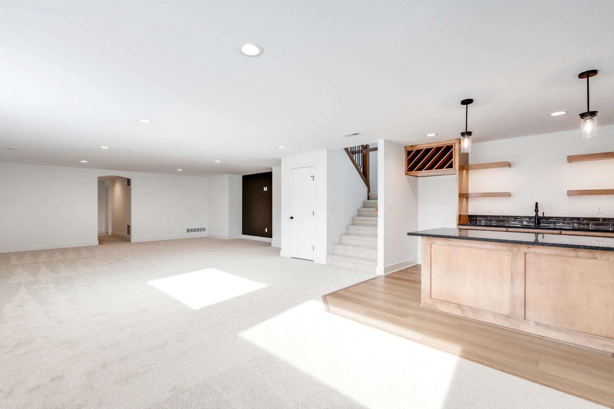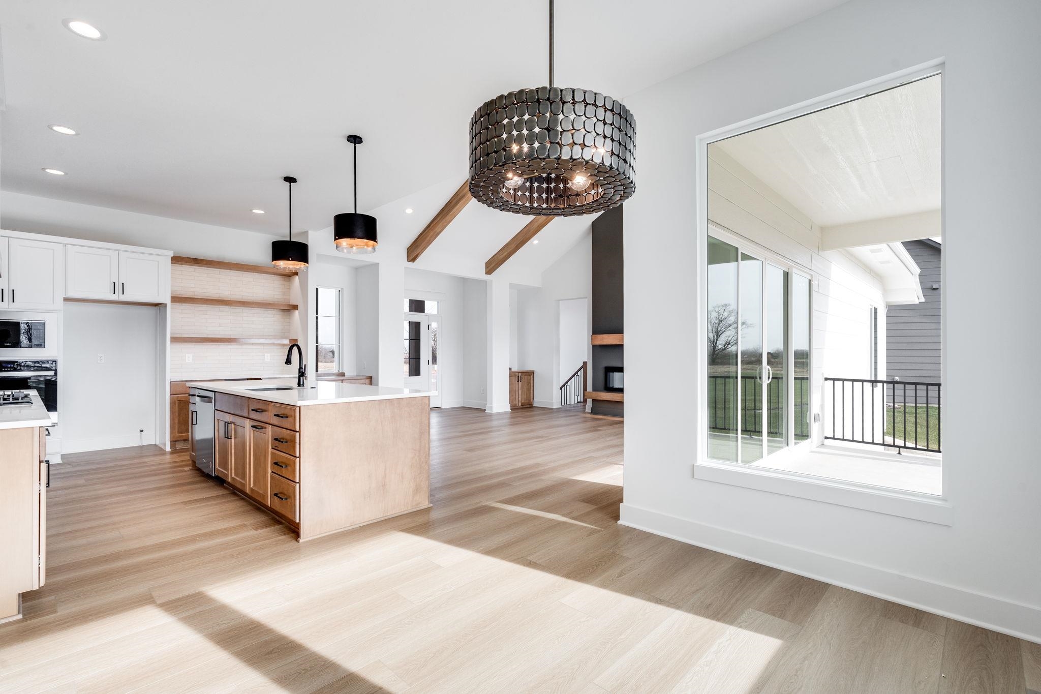 The “Kenzie” plan is back! Located on a lot that is actually larger than shown and backs to huge trees, its a very private lot. This home will be completely finished and move in ready. You’ll love the noteworthy tower front porch entry and large windows. Open floor plan offers beamed ceilings, large kitchen with floating shelves, side wine/coffee bar, and large pantry. Focal point slider opens out to raised covered concrete patio. Lots of storage in this home. Master retreat is a spa with wet room featuring large walk in shower and soaker tub, and spacious closet connects to laundry. This split bedroom plan houses 2 additional bedrooms on the other side of the home. Downstairs in finished basement you have an extremely large family/rec room with a wet bar that has a front seating island, and lots of room to spread out in comfort in the family/rec room! Bedrooms 4 and 5 are on one side with an additional bath that has sink separate from tub/shower, perfect for everyone getting ready at the same time. So much space and open living spaces, come tour today! This home is currently under construction! Includes well, sprinkler, sod, & landscaping. Information deemed reliable but not guaranteed and may change without notice. Room sizes may be estimated. Taxes are shown on vacant lot.Specials may not be entirely spread yet and are shown as estimates. There is a $250 mailbox key collected at closing. Home is currently under construction.