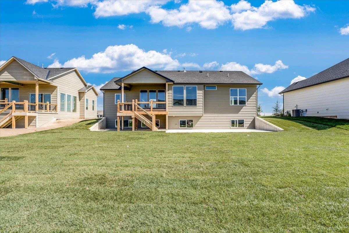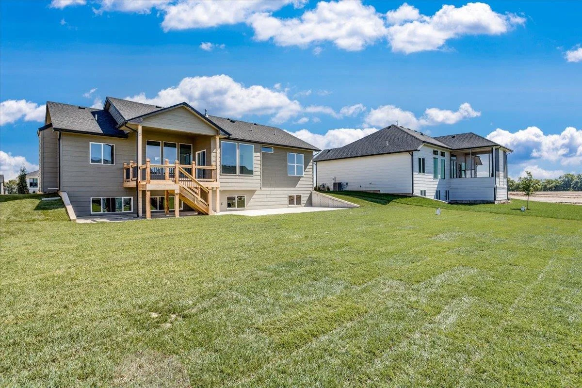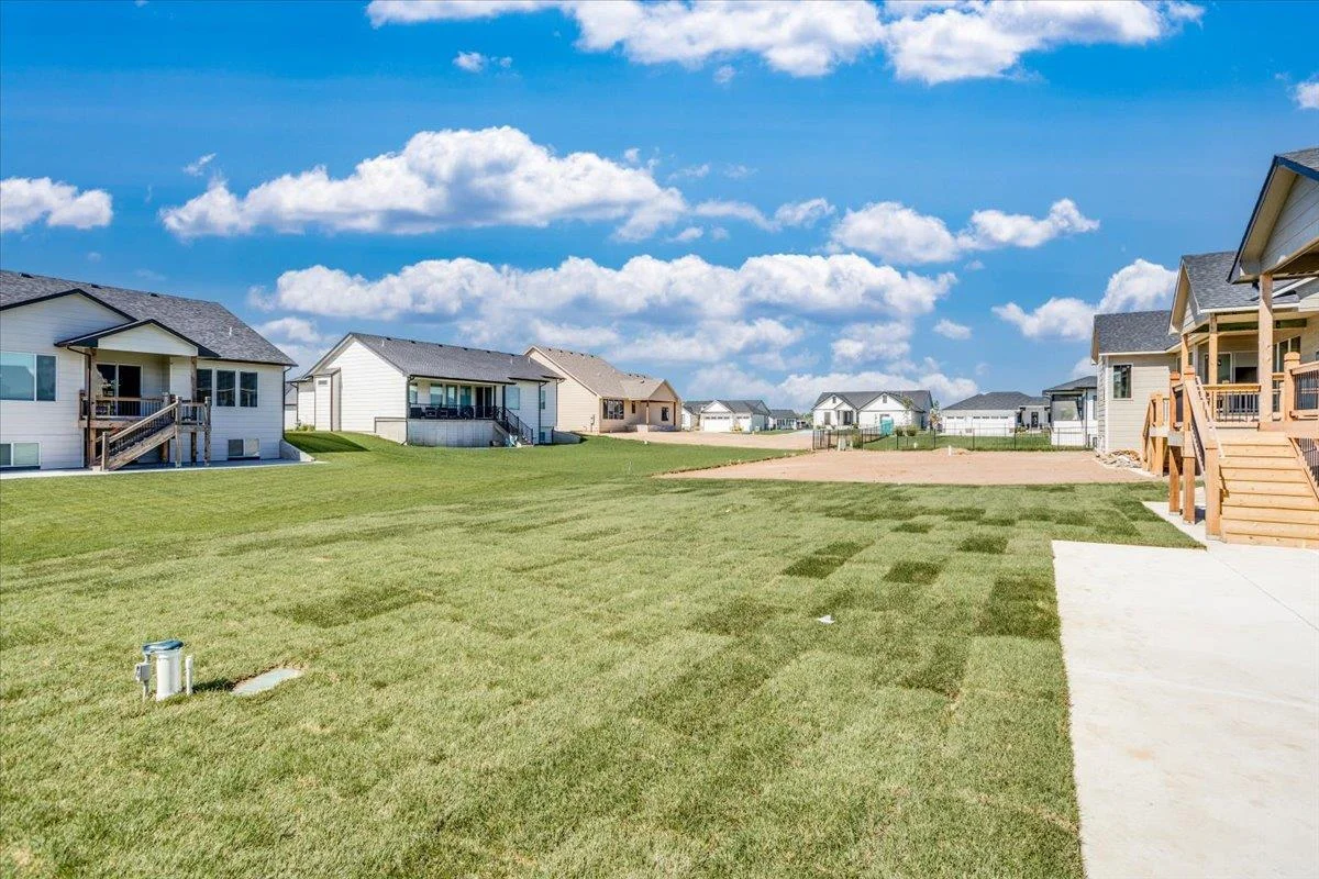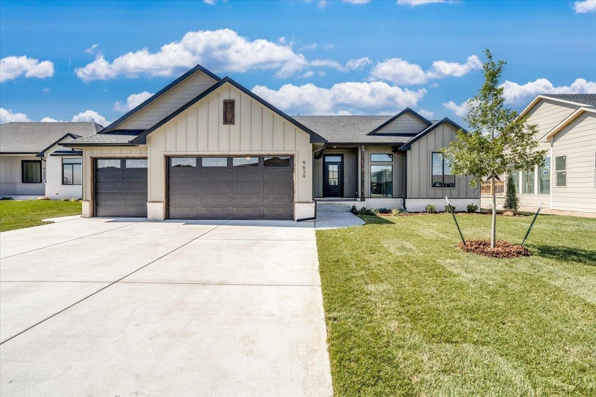 This is a beautiful split 3 bedroom 2 bath home by M&M Construction. “The Renee” is located in a culdesac in Henwick in the much desired Maize Schools. The primary suite is spacious and has tile floors in the bath with both a spa double slipper soaker tub and tile walled shower. You'll love the wine/coffee bar area leading into the primary bedroom! The living room features an electric fireplace and has a raised ceiling showcased by beams. The quartz topped island overlooks the living. Relax your cares away on the covered 10x14 deck. Future owner has options to finish the basement to have an additional 2 bedrooms, bath, and famil/rec room! Taxes estimated and are shown on vacant lot. Specials have not been spread yet on this lot and amounts shown are estimates. Price now includes well, sprinkler, sod, & landscaping! Room sizes estimated. There is a $250 mailbox fee collected at closing. Information deemed reliable but not guaranteed and may change without notice. Home is under construction.