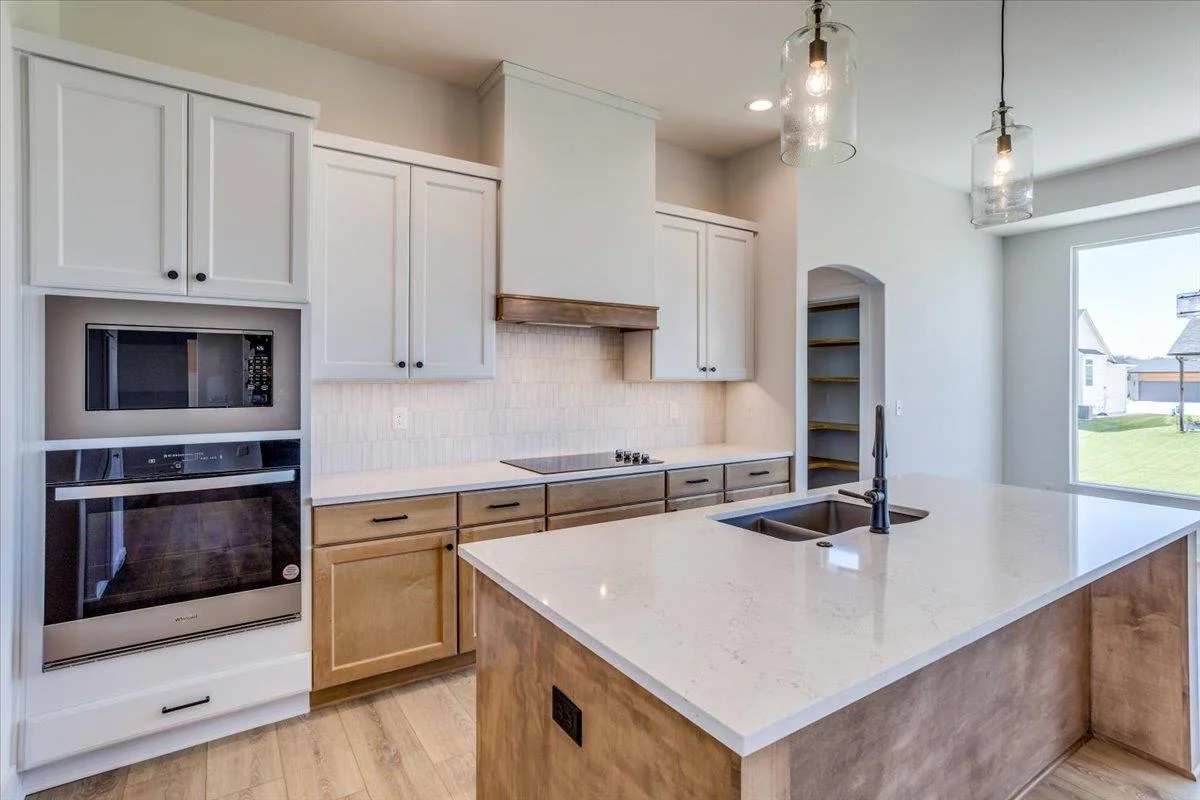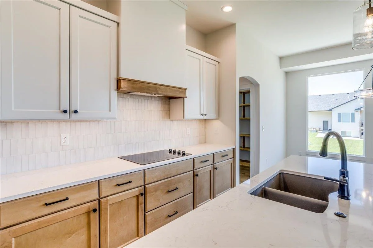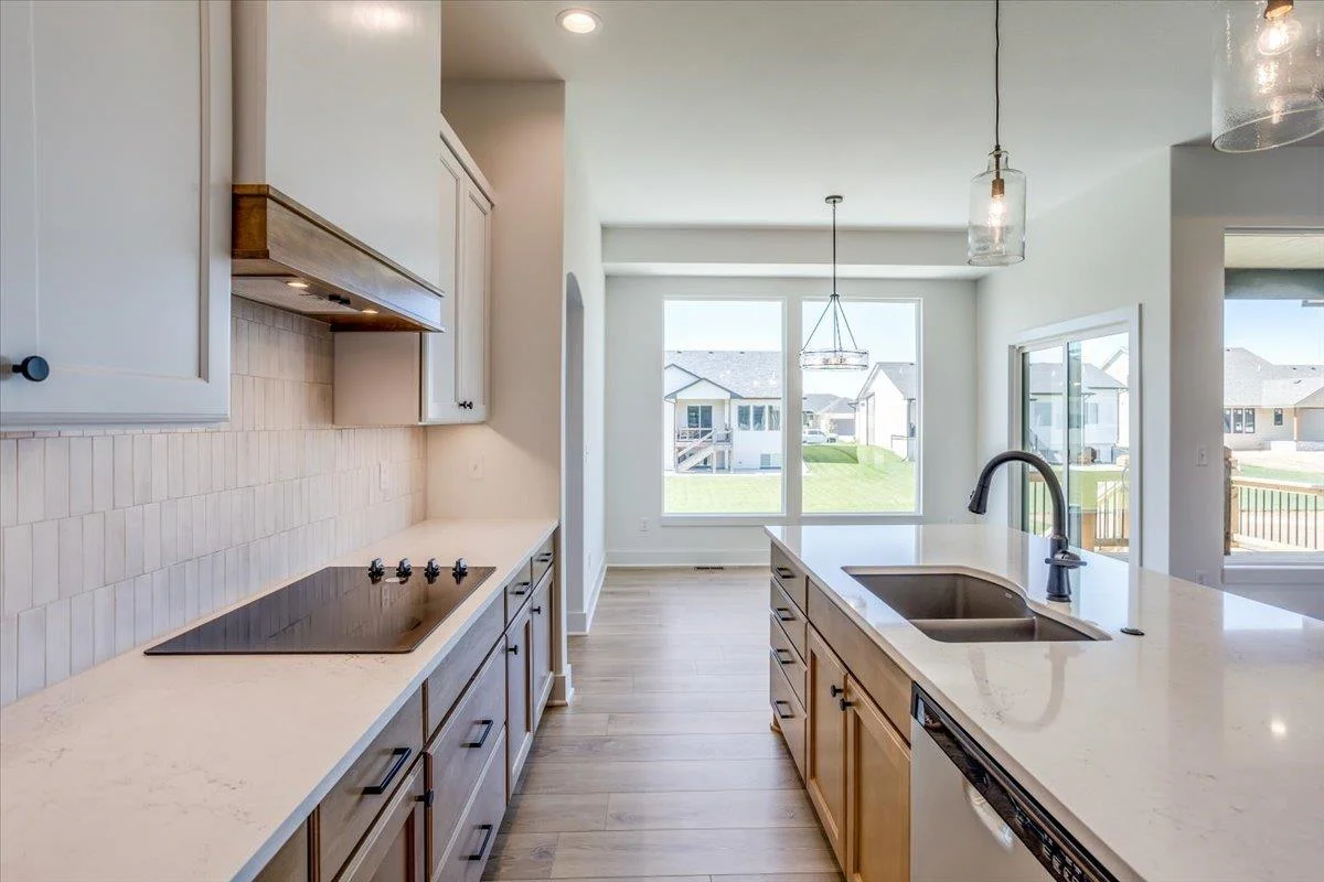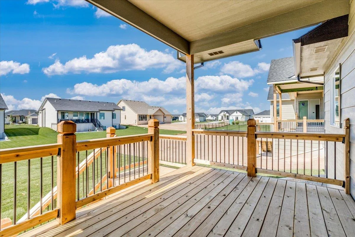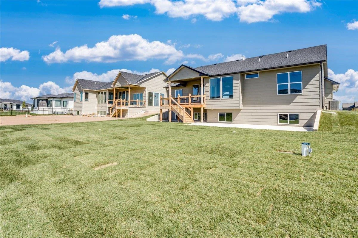 This is a beautiful split 3 bedroom 2 bath home by M&M Construction. “The Renee” is located in a culdesac in Henwick in the much desired Maize Schools. The primary suite is spacious and has tile floors in the bath with both a spa double slipper soaker tub and tile walled shower. You'll love the wine/coffee bar area leading into the primary bedroom! The living room features an electric fireplace and has a raised ceiling showcased by beams. The quartz topped island overlooks the living. Relax your cares away on the covered 10x14 deck. Future owner has options to finish the basement to have an additional 2 bedrooms, bath, and famil/rec room! Taxes estimated and are shown on vacant lot. Specials have not been spread yet on this lot and amounts shown are estimates. Price now includes well, sprinkler, sod, & landscaping! Room sizes estimated. There is a $250 mailbox fee collected at closing. Information deemed reliable but not guaranteed and may change without notice. Home is under construction.