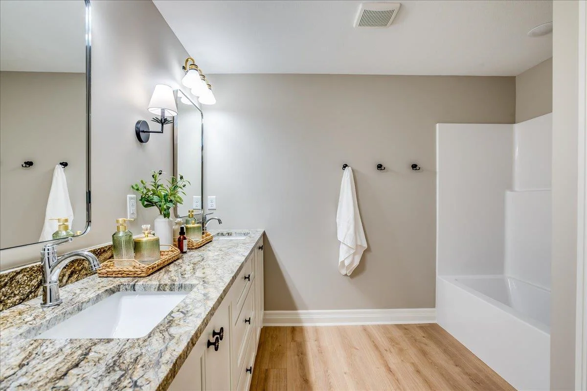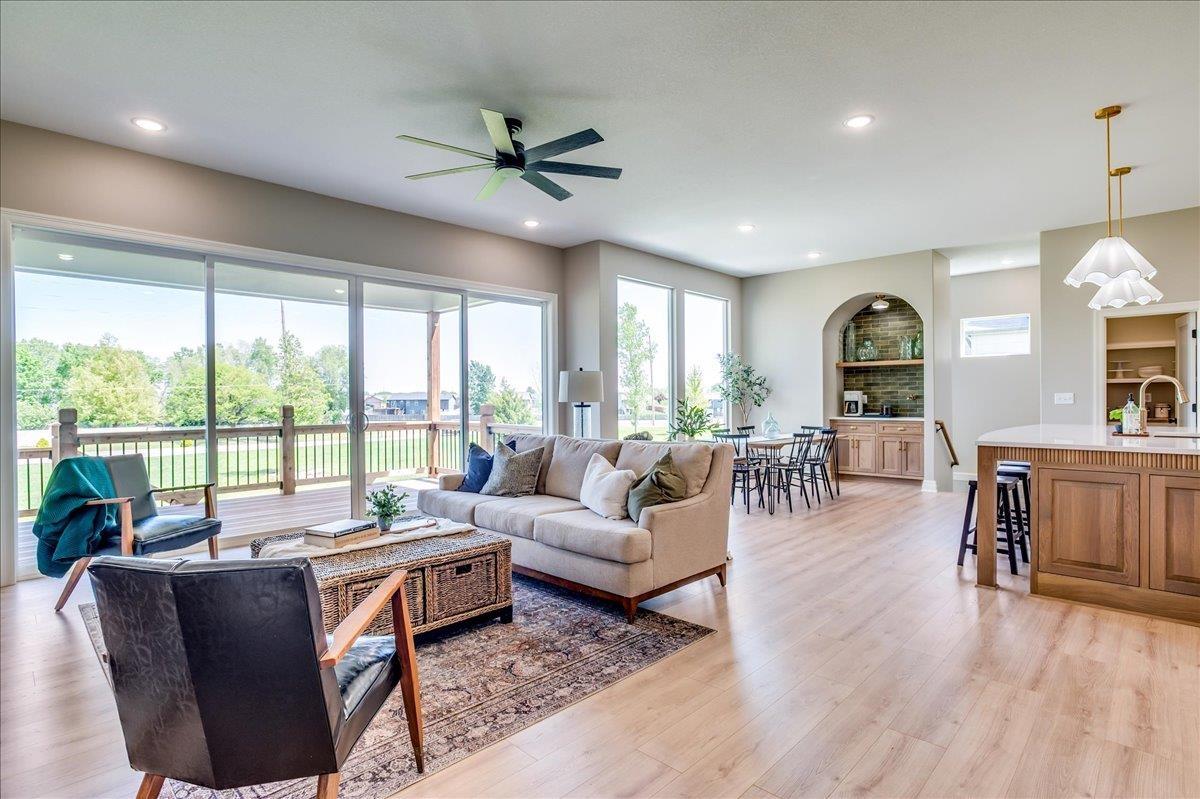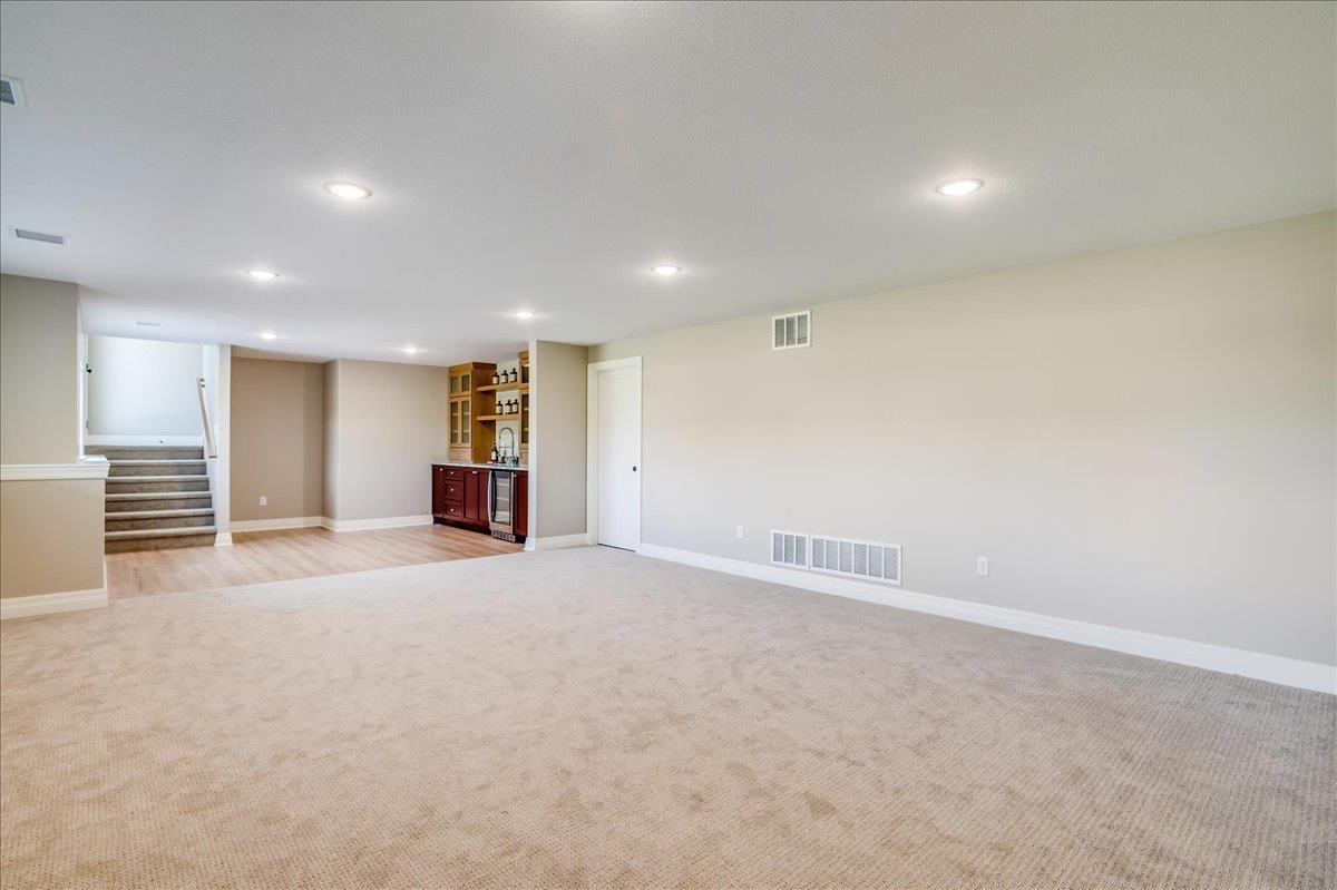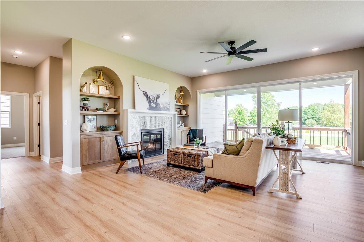 The Olive is an award winning 6 bedroom 3 bath home that also has an office! Arch door entry opens to a great room with a tray ceiling and a 16’ slider that opens up to a 19’ deck. Custom kitchen cabinets are beautiful and a trademark of this builder. You’ll love the coffee bar/beverage bar niche in the dining area, complete with a sink. The kitchen even has room for a beverage fridge. The primary suite is beautiful with a lovely high vaulted ceiling, and the bathroom has a gorgeous rich toned full tile shower with dual shower heads and wand. Laundry connects to primary closet. The dedicated office on the main level has a pocket door, and lots of built in cabinets and book cases for your needs. In addition to the extra large deck, you can access the back yard from a mid level walk out door on the way to the basement. Stunning wet bar with lit cabinets is found in the huge family room. The bedrooms are all larger and give room for everyone to have their own space. There is also a large unfinished area for your storage needs. The garage is oversized and has extra space behind the 3rd car bay for storage, bikes, lawn mowers, or a work shop area. The details in this home are amazing and quality craftmanship show everywhere. Information deemed reliable but not guaranteed and may change without notice. Room sizes may be estimated. Taxes are shown on vacant lot. Specials may not be entirely spread yet and are shown as estimates. There is a $250 mailbox key collected at closing.