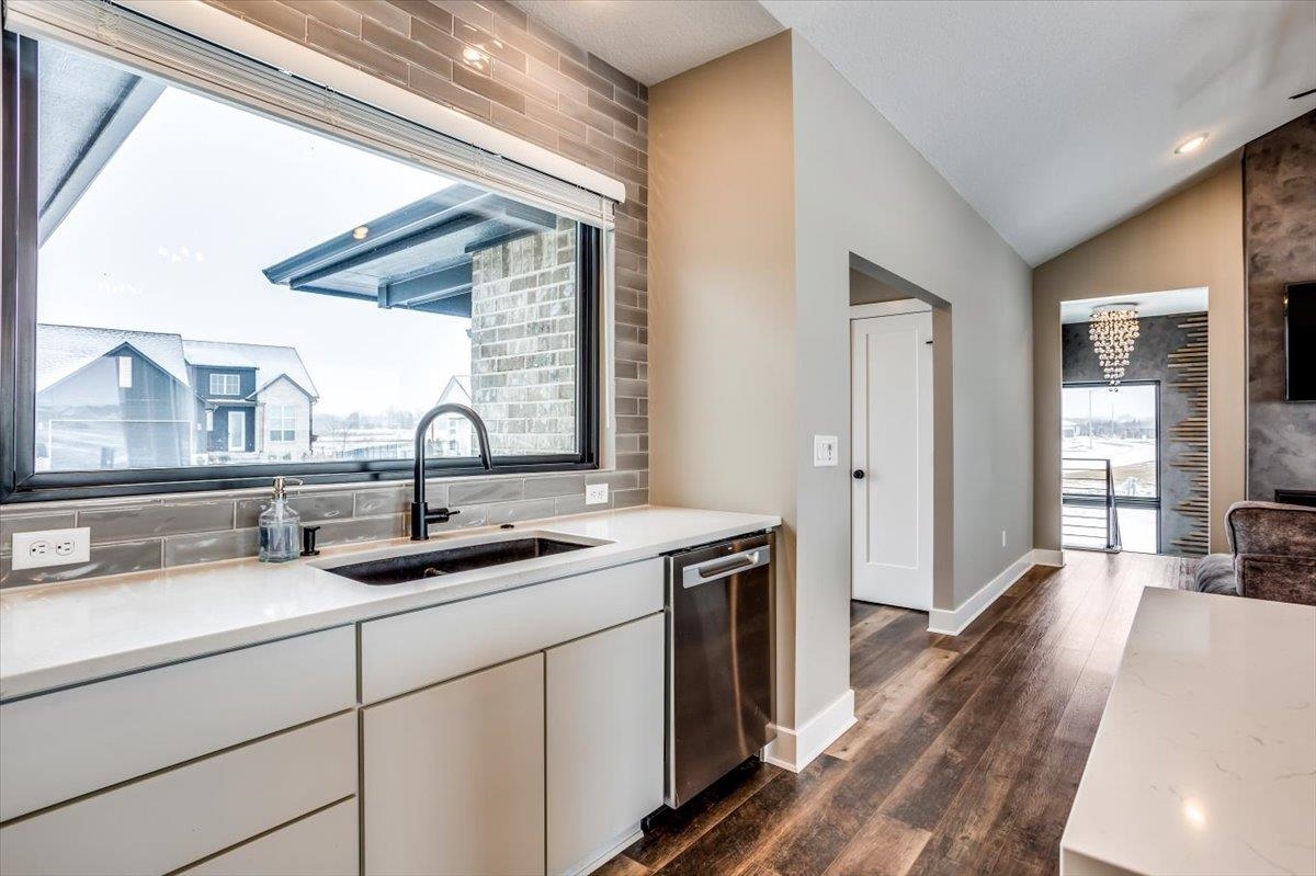 - Description: This is a 1 year old custom built home on a huge lot on the lake in Henwick! This is the showstopper “Kevin” plan with stairs to lower level located on the side corner of home with full glass walls! You’ll love the floor to ceiling windows in the vaulted living room that look out to the lake. Kitchen is open and has the much coveted window over the kitchen sink looking to front of home. Pot filler included in the sleek kitchen that includes the refrigerator. The pantry with double entries runs behind the length of the kitchen, and has 2 pocket doors for double walk thru entry. The laundry room also houses a decorative bench drop zone and connects to the spacious master closet. Stunning soaker tub and glass wall full tile shower is a treat in the primary bedroom suite. Bedrooms 2 and 3 (one with vault ceiling) are on the opposite side of the house with a hall bath between. Downstairs you'll find a large family rec room with wet bar, bath, and 2 more bedrooms! Lots of storage too including a safe room. Large covered deck on back to enjoy those lake views! Home has custom hunter douglas blinds throughout and is totally move in ready! Information deemed reliable but not guaranteed and may change without notice. Specials are not be entirely spread on this lot so estimates shown. HOME IS OCCUPIED!